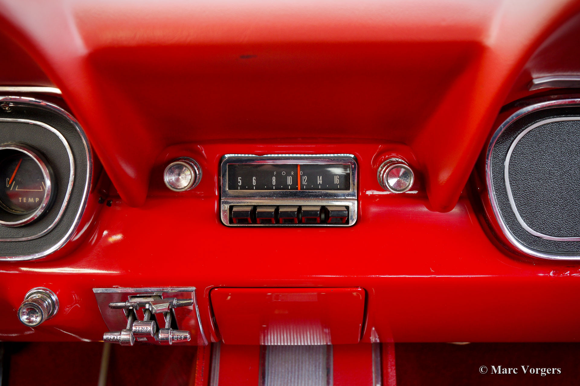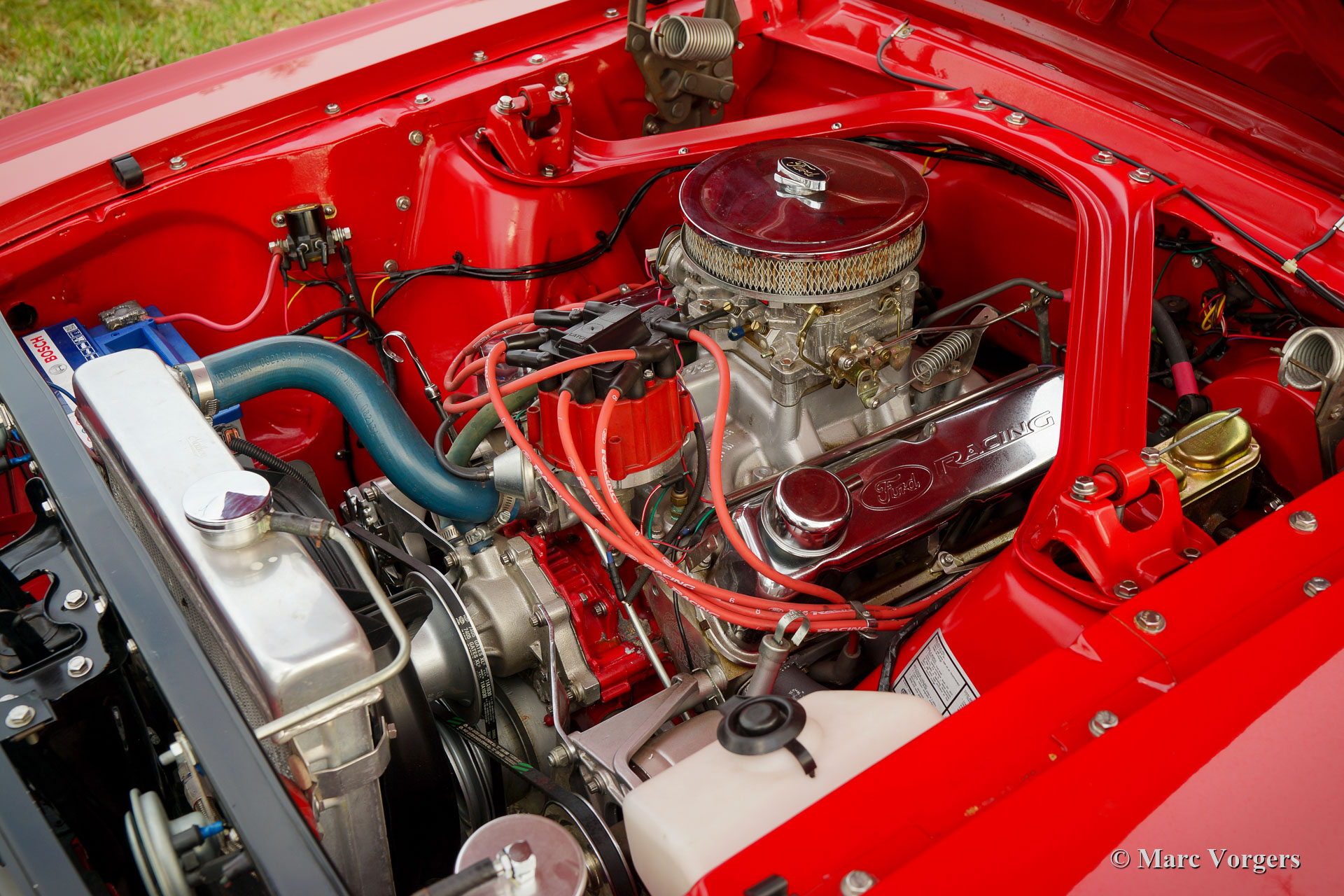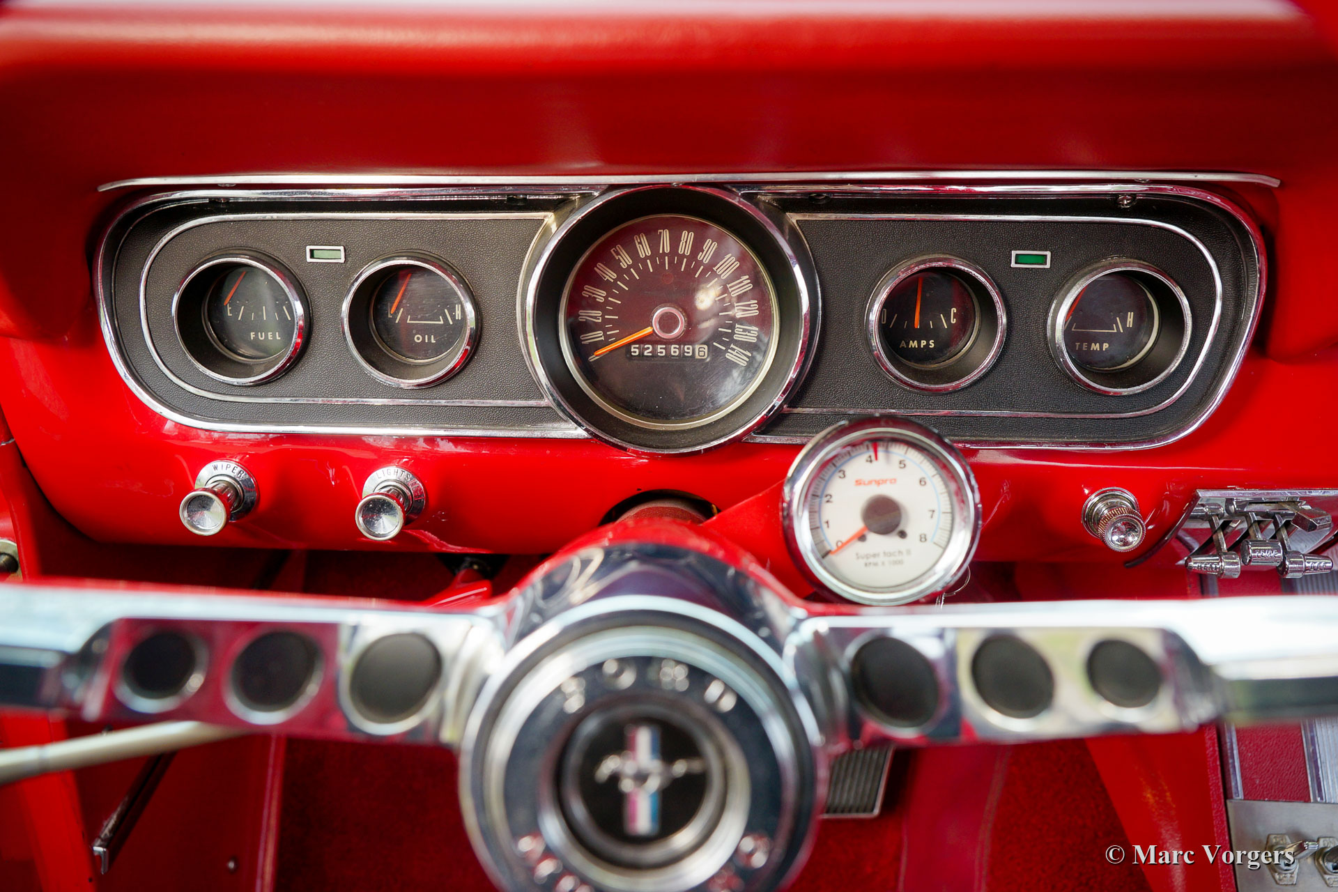 Ford Mustang Coupé, year 1966. Colour red combined with a red ‘Pony’ interior and red carpet. This gorgeous Ford Mustang was sold new in the USA where it was extensively restored in the years 2009 – 2011. The bodywork was restored from the bare metal and everything was restored, renewed and / or overhauled. The engine, gearbox, rear axle, and suspension were completely overhauled. A photo report and invoices of the restoration are present. The car was exported to the Netherlands in 2012. The car is in excellent to superb condition and it shows wonderful original details. The interior is in pristine condition, showing the original steering wheel and radio. You will only find a small tear in the headlining. The engine is a 5-Litre V8 unit which was up rated with cylinder heads and an intake manifold by Edelbrock. The engine is very powerful, and it sounds fantastic! The suspension was upgraded with special springs and shock absorbers giving a firmer ride. Furthermore, the car is fitted with tinted glass, an automatic 3-speed gearbox, and gorgeous original wheels with brand new tires. A lot of money was invested to get this Ford Mustang in this wonderful condition, a highly desirable example ready to enjoy to the fullest!