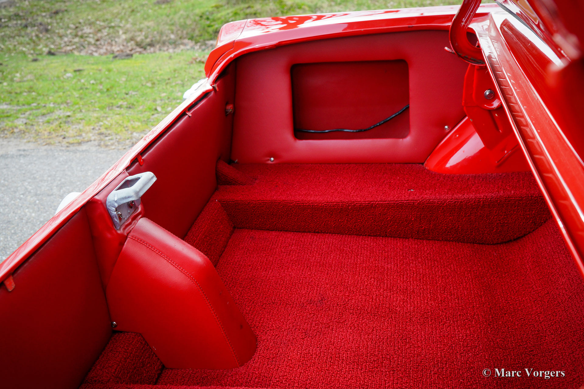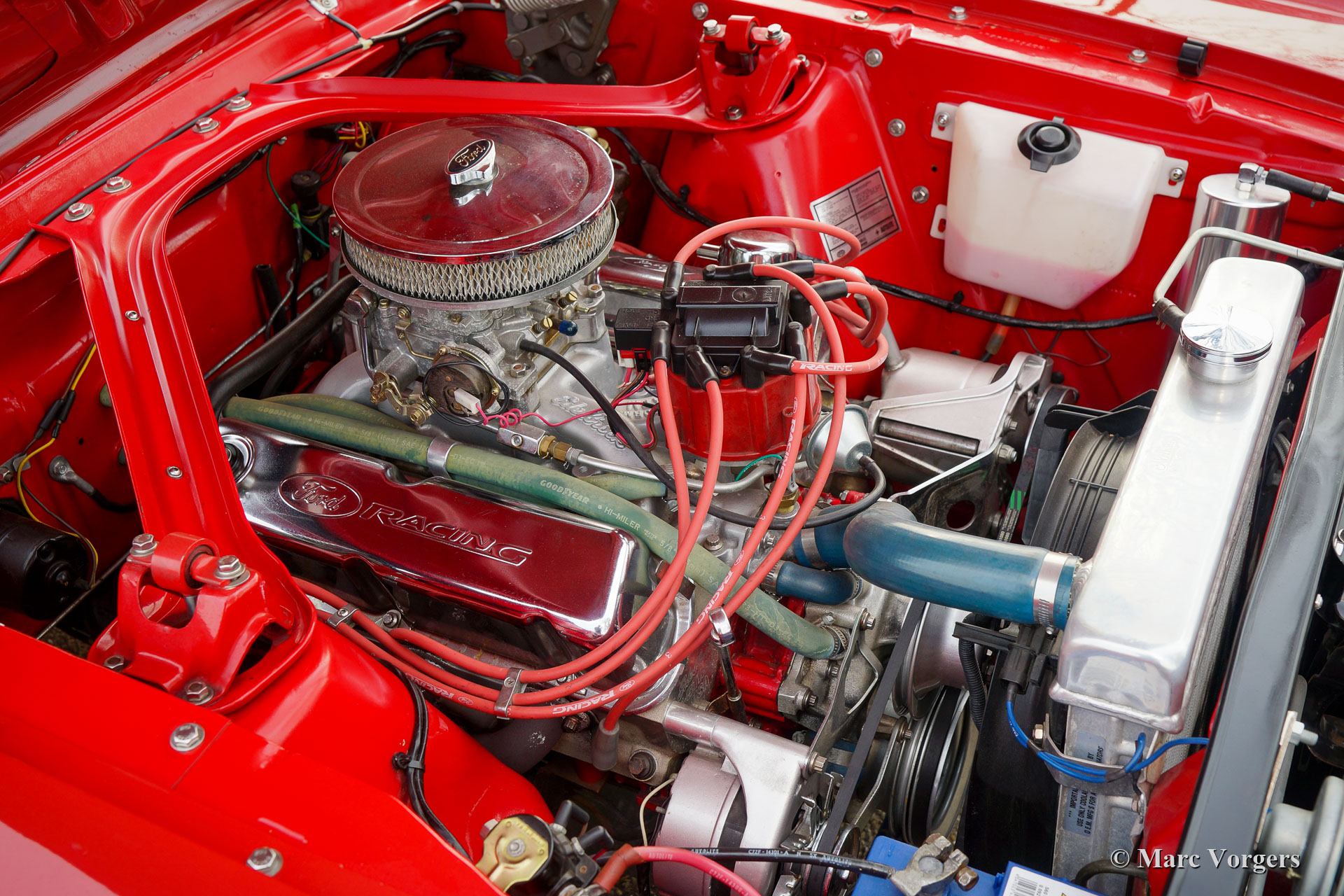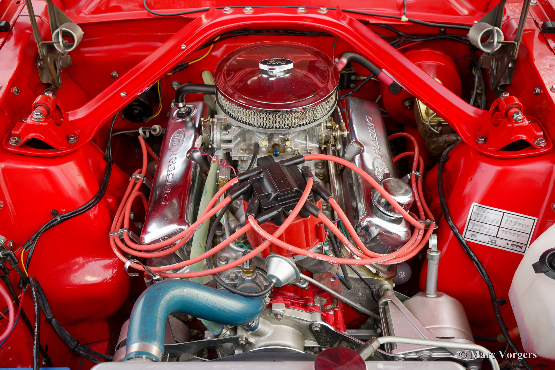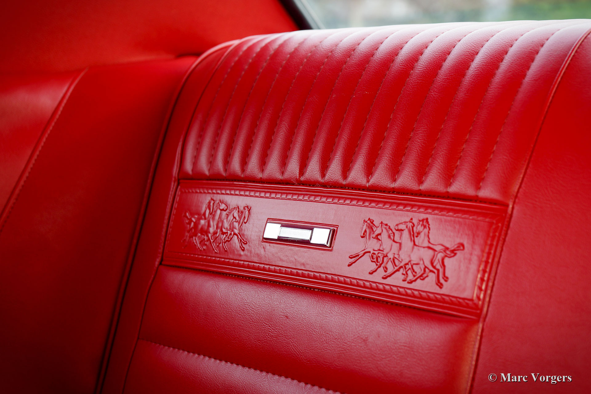 Ford Mustang Coupé, year 1966. Colour red combined with a red ‘Pony’ interior and red carpet. This gorgeous Ford Mustang was sold new in the USA where it was extensively restored in the years 2009 – 2011. The bodywork was restored from the bare metal and everything was restored, renewed and / or overhauled. The engine, gearbox, rear axle, and suspension were completely overhauled. A photo report and invoices of the restoration are present. The car was exported to the Netherlands in 2012. The car is in excellent to superb condition and it shows wonderful original details. The interior is in pristine condition, showing the original steering wheel and radio. You will only find a small tear in the headlining. The engine is a 5-Litre V8 unit which was up rated with cylinder heads and an intake manifold by Edelbrock. The engine is very powerful, and it sounds fantastic! The suspension was upgraded with special springs and shock absorbers giving a firmer ride. Furthermore, the car is fitted with tinted glass, an automatic 3-speed gearbox, and gorgeous original wheels with brand new tires. A lot of money was invested to get this Ford Mustang in this wonderful condition, a highly desirable example ready to enjoy to the fullest!