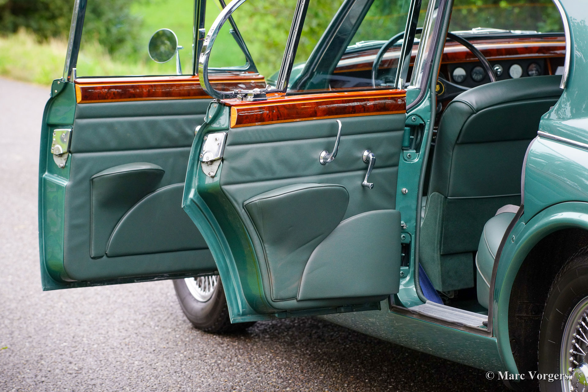Jaguar Mk II 3.8 Litre, year 1967. Colour pale green metallic combined with a suede green leather interior and matching carpet. Matching engine number (factory original). This magnificent Jaguar Mk II was sold new to the United States. The car was factory original fitted with the most powerful 3.8 Litre engine, a seldom seen original POWER sliding sunroof and tinted windows! In the year 2010 the automobile was imported to the Netherlands. In the Netherlands, the car was dismantled and optically restored (the mechanicals were in very good condition – in 2010 cleaned and serviced only). The body was restored from the bare metal and the car was given a perfect 2K paint system. The car was fitted with slimmer ‘coombs spats’ around the rear wheels, the original large ‘spats’ are also present and painted in the correct colour. The interior was professionally upholstered with high quality leather, the roof lining renewed, and the wood panels were restored to perfection. The wiring loom and the electrics were renewed and upgraded. A photo report of the restoration is present as are photos of the car as it was when it came from the USA. In the Netherlands, the car was perfectly serviced and maintained by a Jaguar specialist over the years. In 2018 / 2019, the six-cylinder engine was fully overhauled, and the original automatic (3-speed) gearbox was exchanged for a Getrag 5-speed manual gearbox. Photo’s of the engine overhaul are present as are service and overhaul invoices. This magnificent Jaguar Mk II 3.8 Litre is in excellent to superb condition. The car is fitted with a Stainless-Steel exhaust system and 15-inch chrome wire wheels, shod with Vredestein Sprint classic tyres. Here we have an excellent condition, perfectly driving, Jaguar Mk II in a wonderful colour scheme with the most sought-after specifications and options!