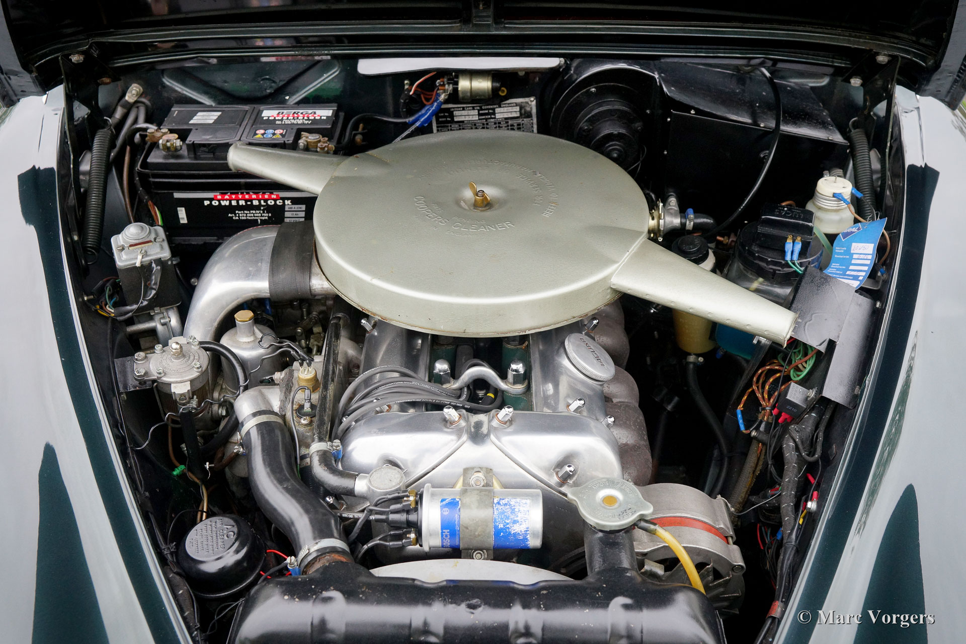 The Mk II derived its power and speed from the famous Jaguar XK engine with which Jaguar had been able to win in Le Mans in 1951 and in 1953 (3.4-litre version). The XK engine in the Mk II was available in three different cylinder capacities, namely 2483 cc/120 horsepower, 3442 cc/210 horsepower and 3781cc/220 horsepower respectively. The 3.8 version had a top speed of no less than 125 mph. The Jaguar Mk II was built until 1967.