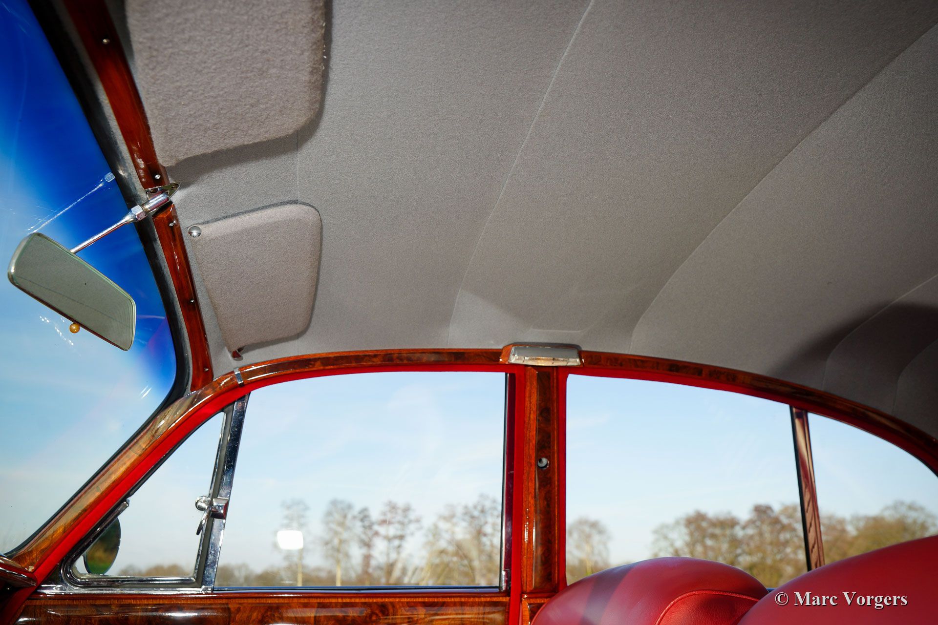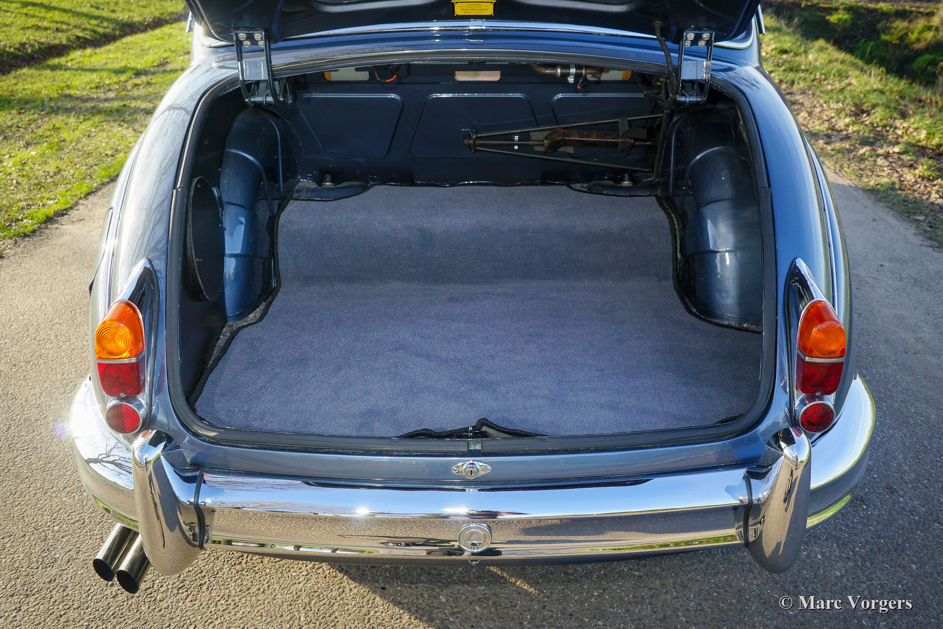The Mk II derived its power and speed from the famous Jaguar XK engine with which Jaguar had been able to win in Le Mans in 1951 and in 1953 (3.4-litre version). The XK engine in the Mk II was available in three different cylinder capacities, namely 2483 cc/120 horsepower, 3442 cc/210 horsepower and 3781cc/220 horsepower respectively. The 3.8 version had a top speed of no less than 120.5 miles per hour (about 200 km/h). The Jaguar Mk II was built until 1967.
