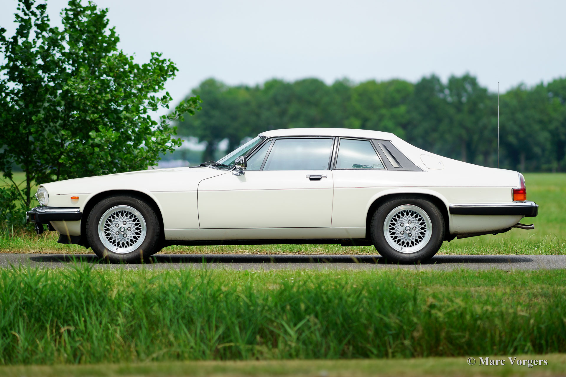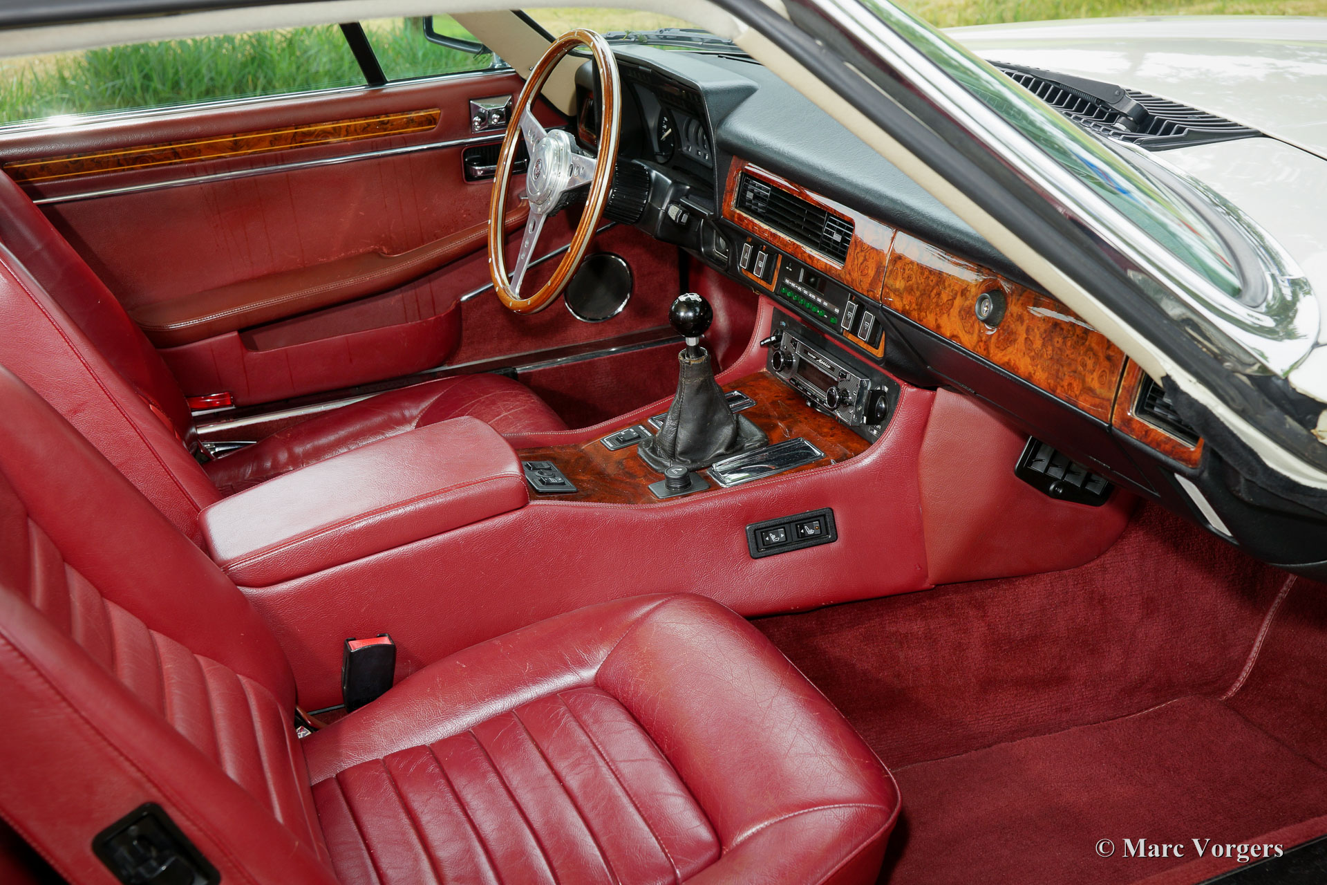 Jaguar XJ-S V12 5.3 Litre coupe, year 1987. Chassis number: SAJ-JNAEW4BA 1407XX. Colour ‘Nimbus White’ with a ‘Mulberry Red’ leather interior and red carpet. This fantastic Jaguar XJ-S V12 coupe was sold new in the Netherlands. From new the automobile has driven 112.000 kilometres. This fine XJ-S is in very good and super original condition showing off its original paint! This XJ-S V12 coupe is a very rare specimen fitted with a manually operated gearbox and featuring a full options list! The exterior and the interior show only very slight signs of use, and that after 30 years! A Heritage certificate is present as is an original folder containing the original manuals and service book. The service book has been punctually filled out and stamped at dealer service intervals. In the boot, you will find the original tool-set and in the interior a Moto-Lita sports steering wheel with wood rim and a sought after modern ‘classic’ Becker radio are present. The car is fitted with 16-inch Jaguar alloy wheels, the original wheels are also present. This is a very impressive Jaguar XJS and a hard to find original example!