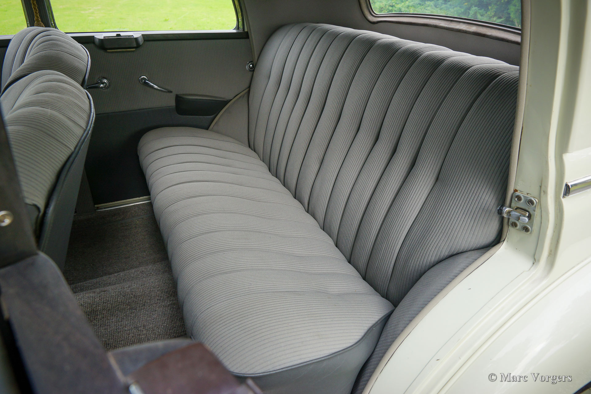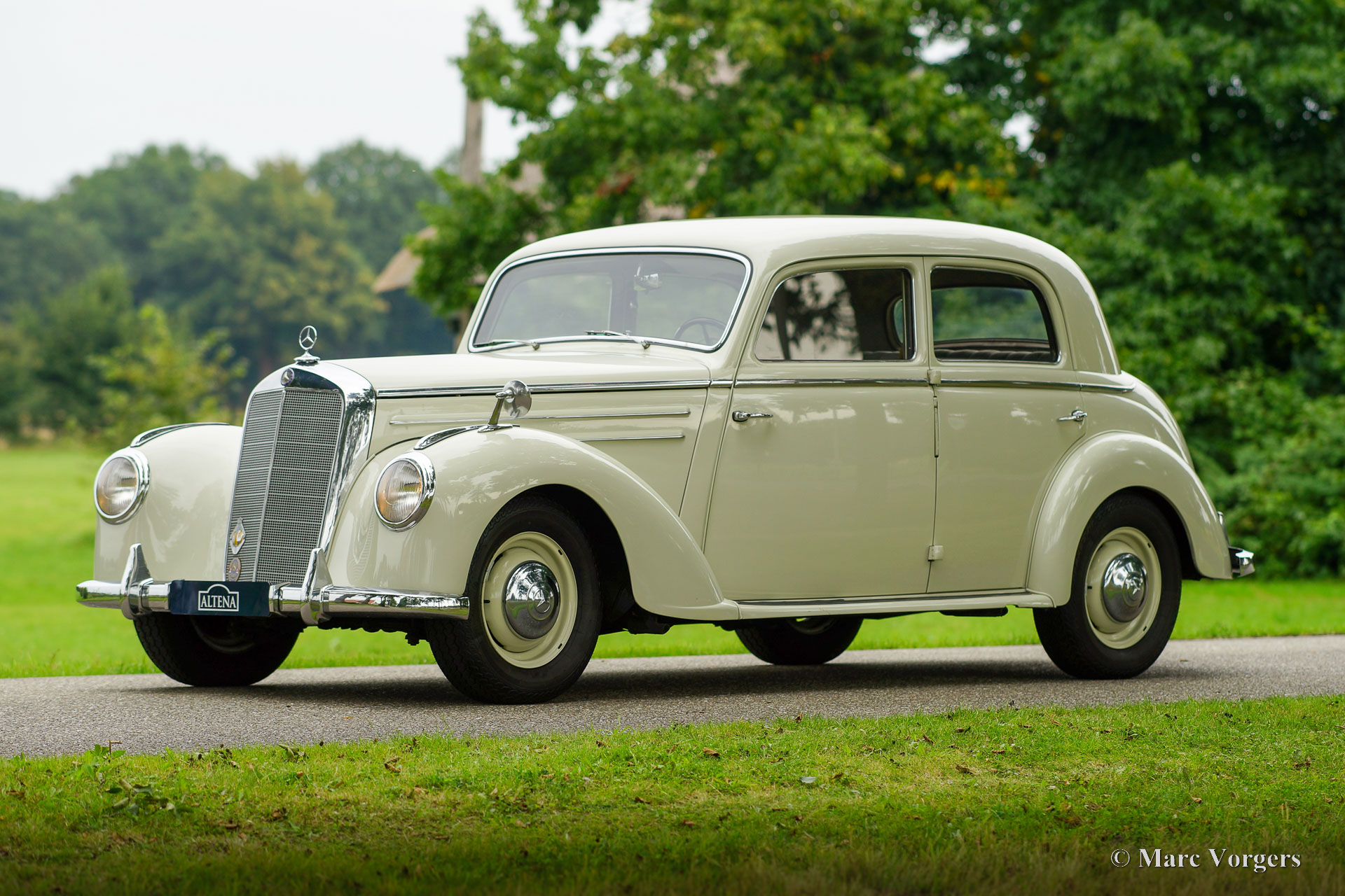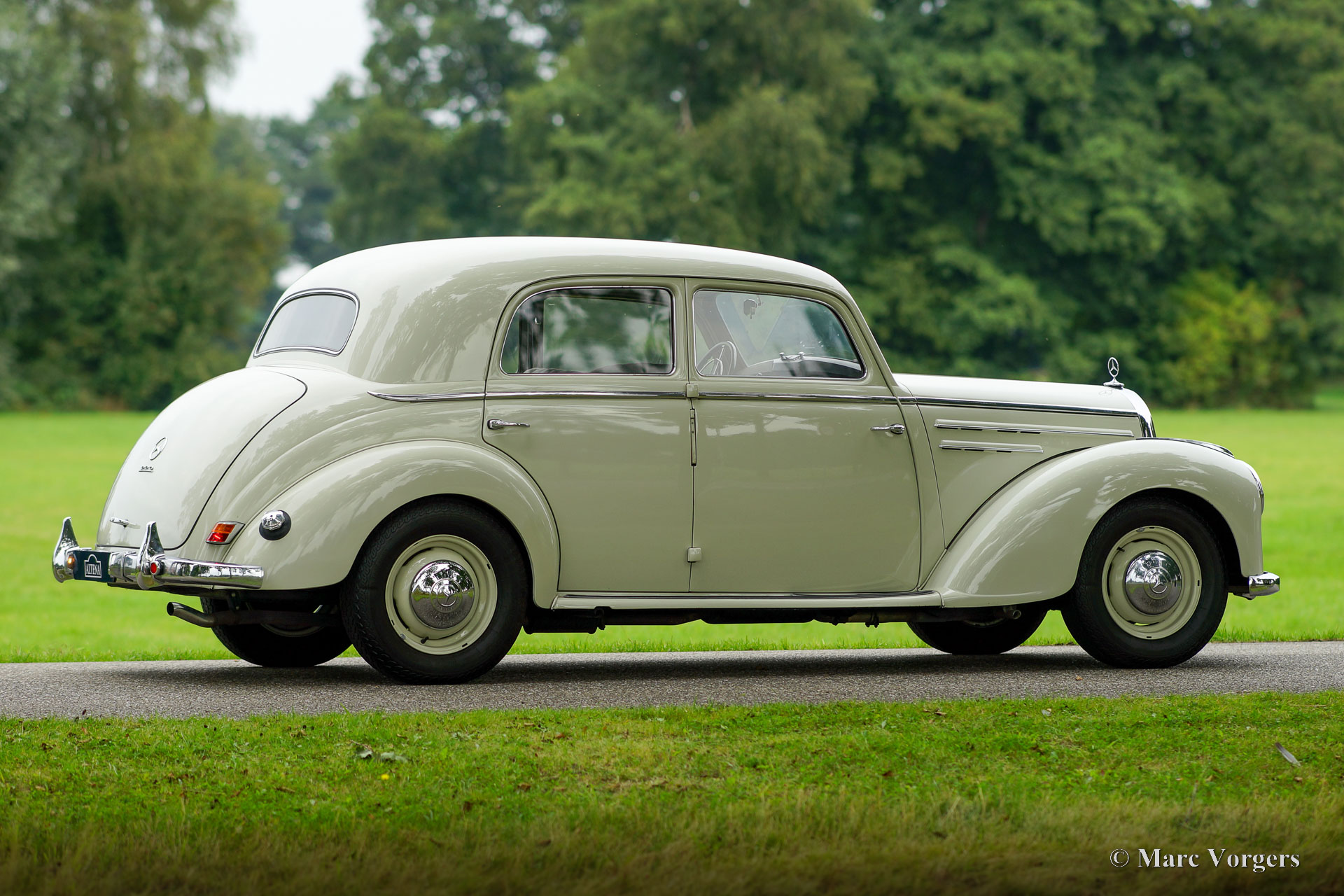 Mercedes-Benz 220 (W187), year 1953. Colour cream white combined with a two-tone grey cloth / leatherette interior and light grey carpet. This beautiful Mercedes-Benz 220 was sold new in the Netherlands, the original registration PX-15-31 is still with the car. This fantastic time capsule is in a very good and very original condition. The automobile was part of a classic car collection, it was meticulously serviced and maintained by a specialist over the years. The bodywork was given new paint in the original colour in the past, the engine was fully overhauled in 2016. In the same year the interior was newly upholstered using the correct seat cloth / leatherette and carpet materials. The six-cylinder engine runs beautifully, and everything works flawlessly. This Mercedes-Benz appears like a fully original classic in extremely well-kept condition! The automobile drives delightfully, this W187 is a true gem for the Mercedes-Benz collector. This super original classic automobile can be imported to any country around the world.