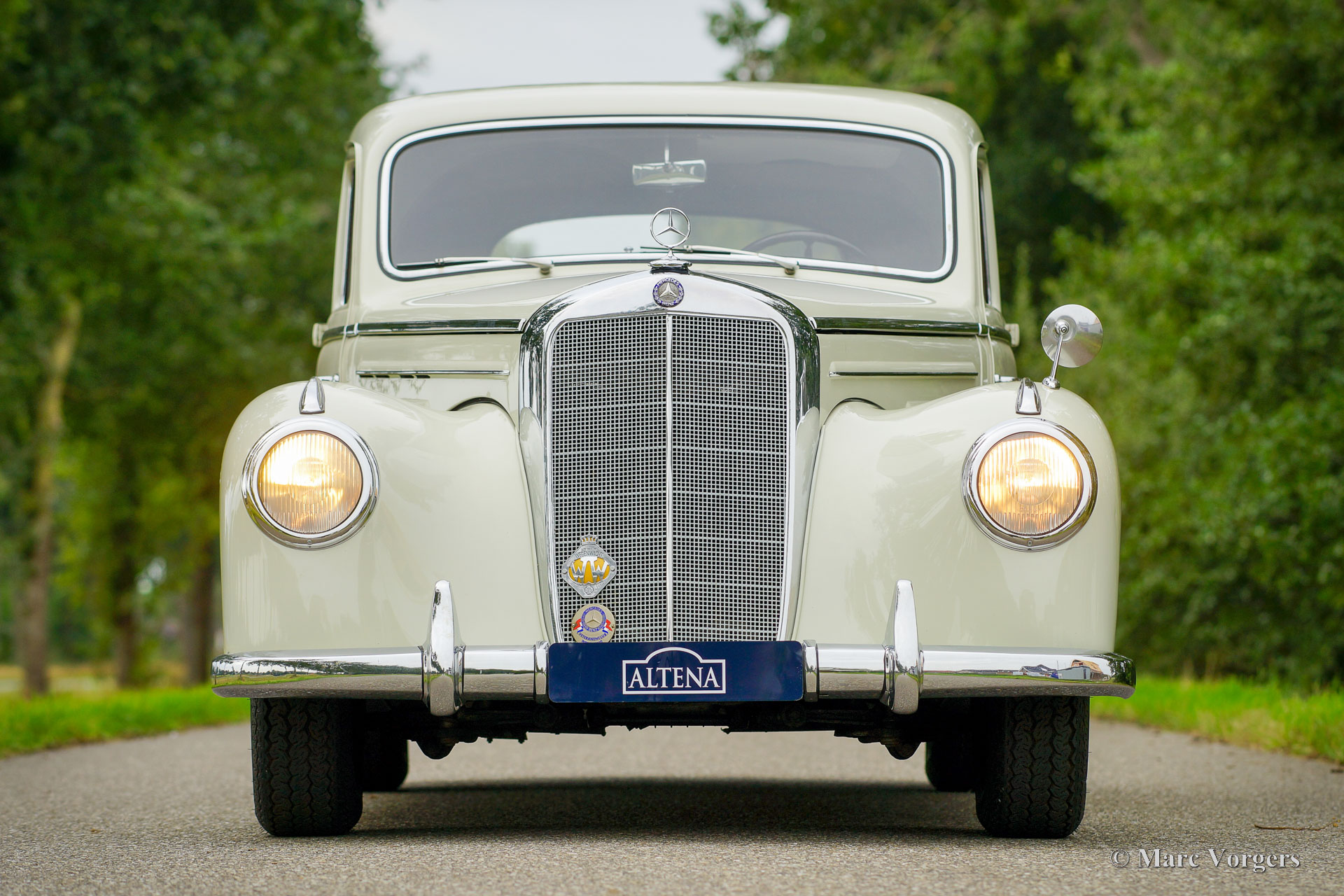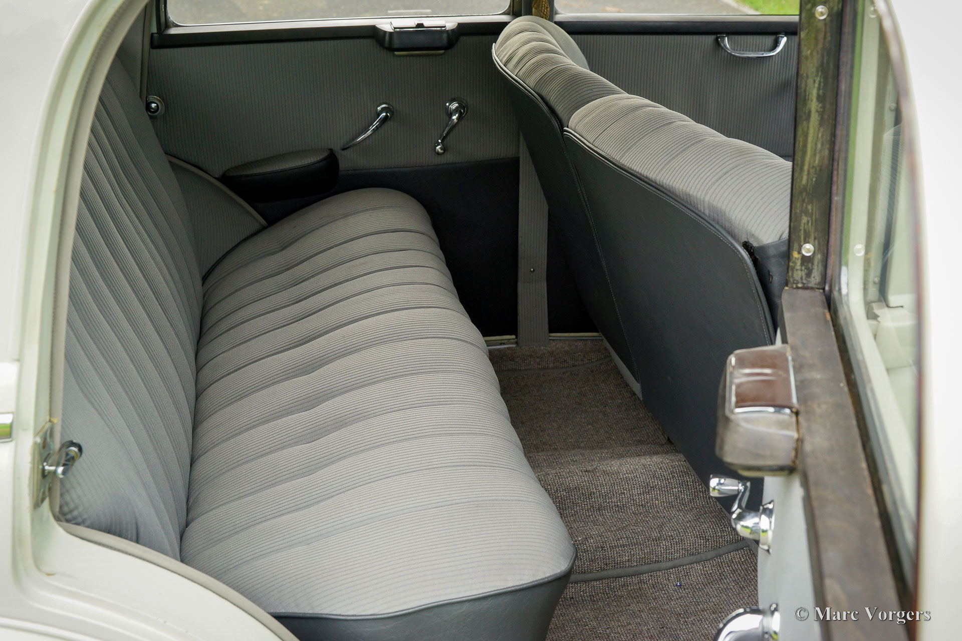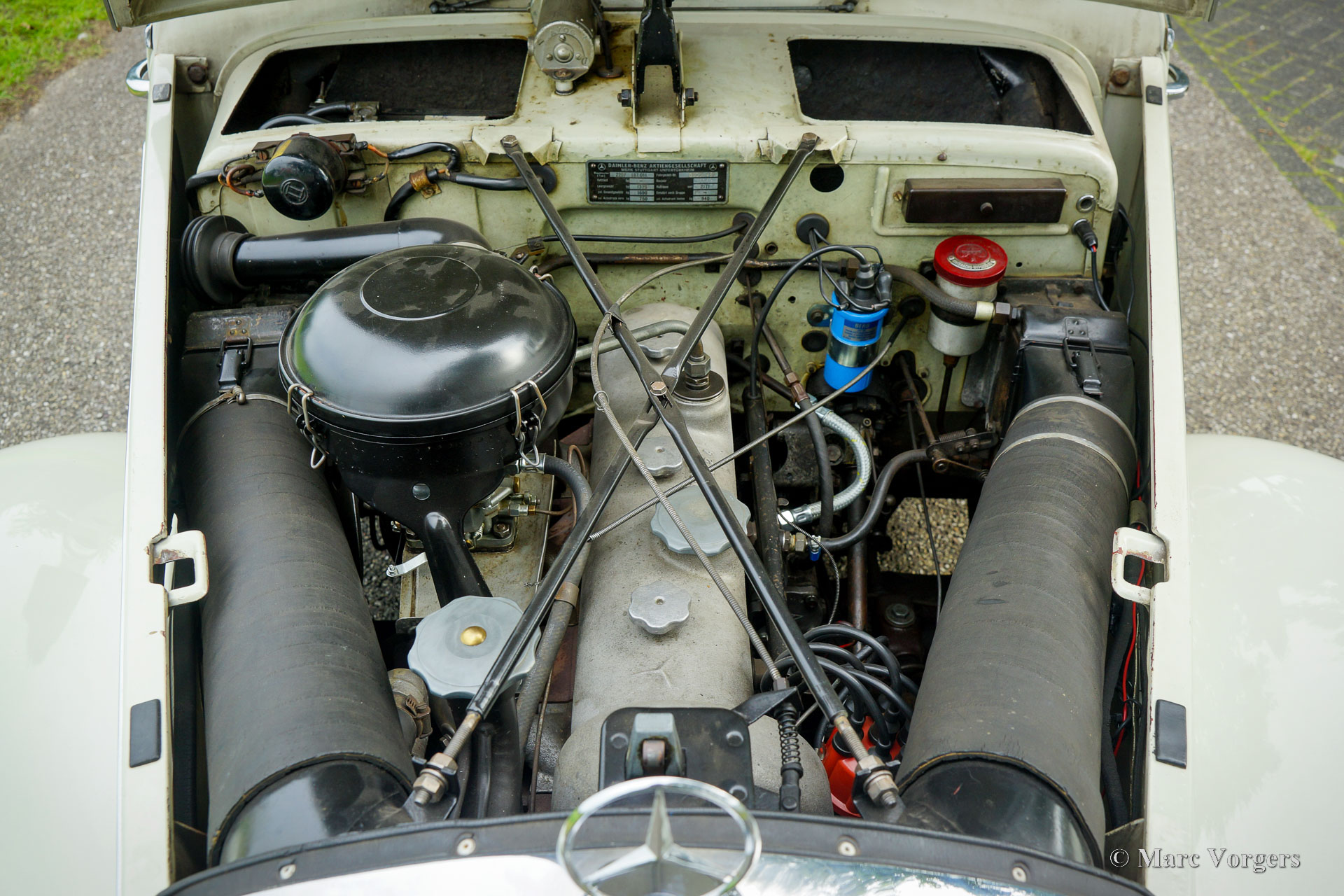 Mercedes-Benz 220 (W187), year 1953. Colour cream white combined with a two-tone grey cloth / leatherette interior and light grey carpet. This beautiful Mercedes-Benz 220 was sold new in the Netherlands, the original registration PX-15-31 is still with the car. This fantastic time capsule is in a very good and very original condition. The automobile was part of a classic car collection, it was meticulously serviced and maintained by a specialist over the years. The bodywork was given new paint in the original colour in the past, the engine was fully overhauled in 2016. In the same year the interior was newly upholstered using the correct seat cloth / leatherette and carpet materials. The six-cylinder engine runs beautifully, and everything works flawlessly. This Mercedes-Benz appears like a fully original classic in extremely well-kept condition! The automobile drives delightfully, this W187 is a true gem for the Mercedes-Benz collector. This super original classic automobile can be imported to any country around the world.