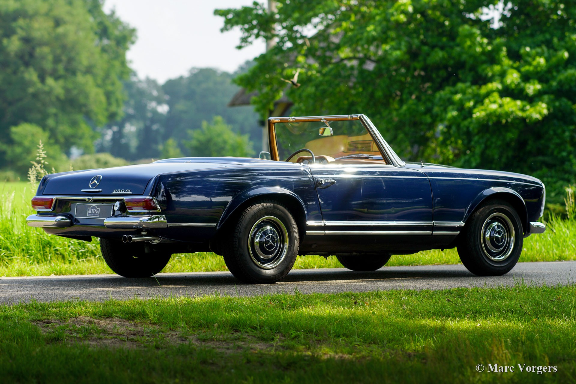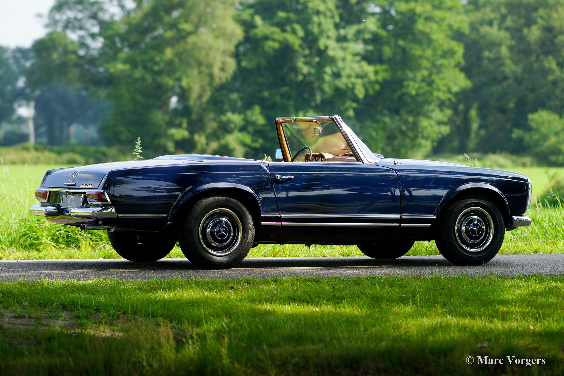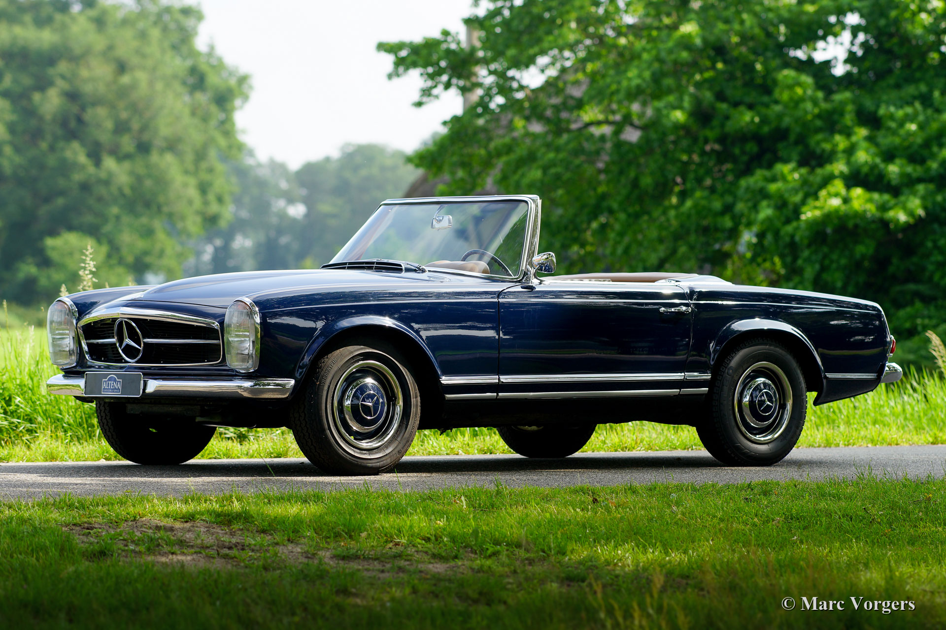 Mercedes-Benz 230 SL ‘Pagode’, year 1967. Colour dark blue with a tan (dark beige/ light brown) leather interior and beige carpet. This gorgeous Mercedes-Benz 230 SL was imported from the USA by Altena Classic Service in the 1990’s (photos present). Then the car was fully stripped and restored. The bodywork was given new paint and the mechanicals were overhauled. A photo reportage and all the invoices of the works are present! In the year 1996 the car was sold to the current owner who has cherished the ‘Pagode’ for 22 years! The car is in very good condition with slight signs of use and age and the car drives perfectly! The straight-six engine is a sheer delight and the automatic gearbox shifts superbly. The car comes complete with all the original books in the original plastic folder. Owner’s manual, Kundendienstheft, catalogue and the Blaupunkt book which belongs to the originally installed radio!