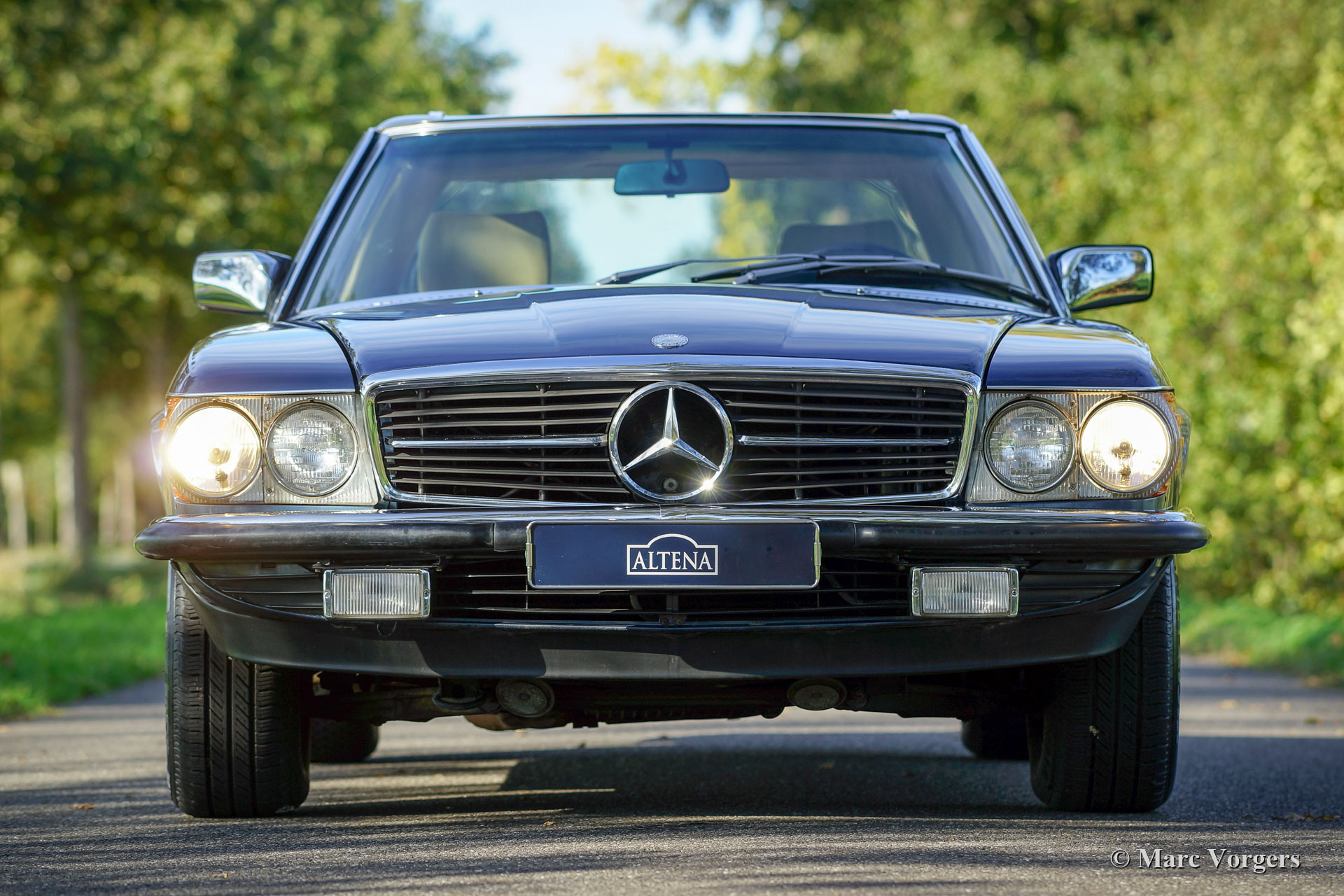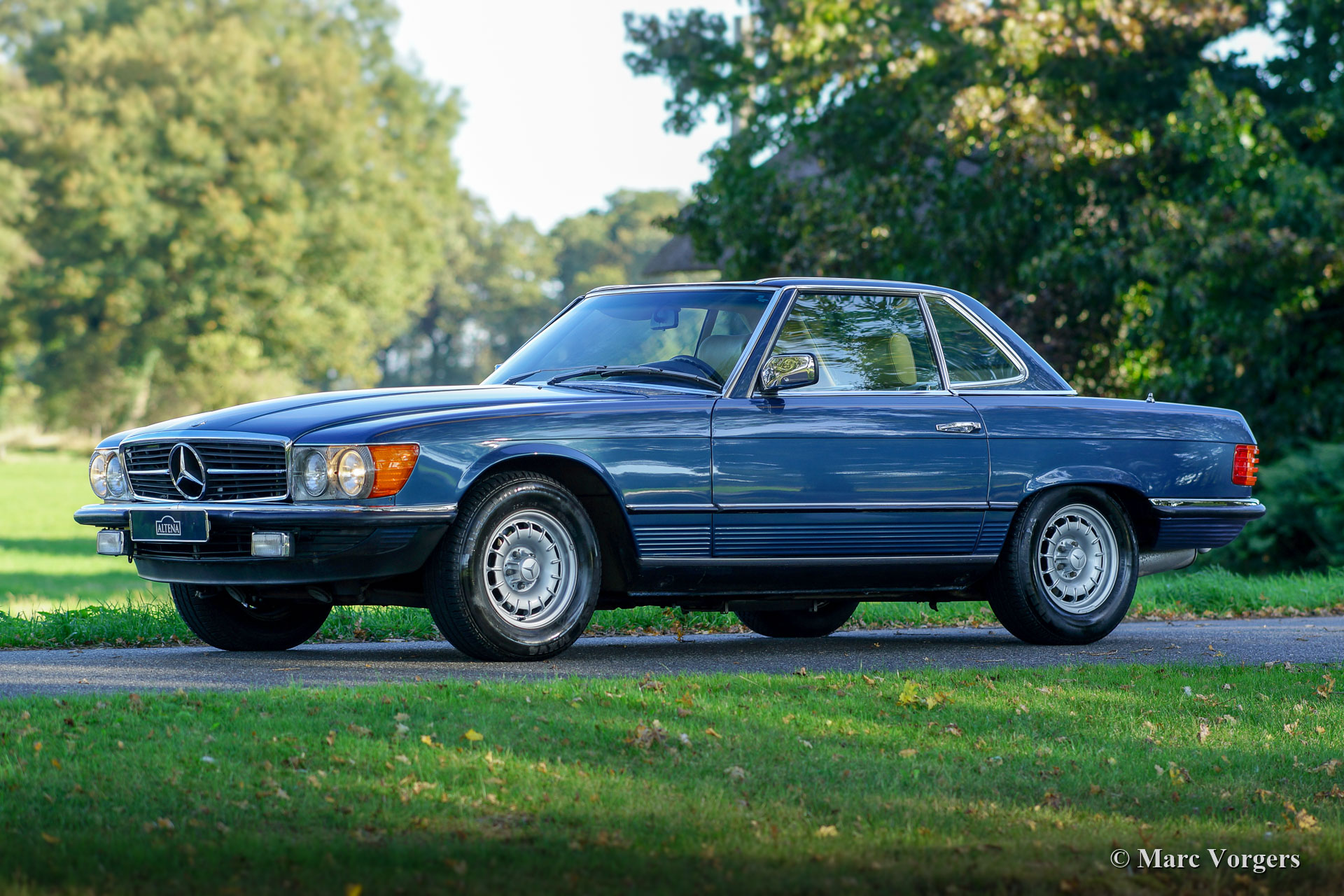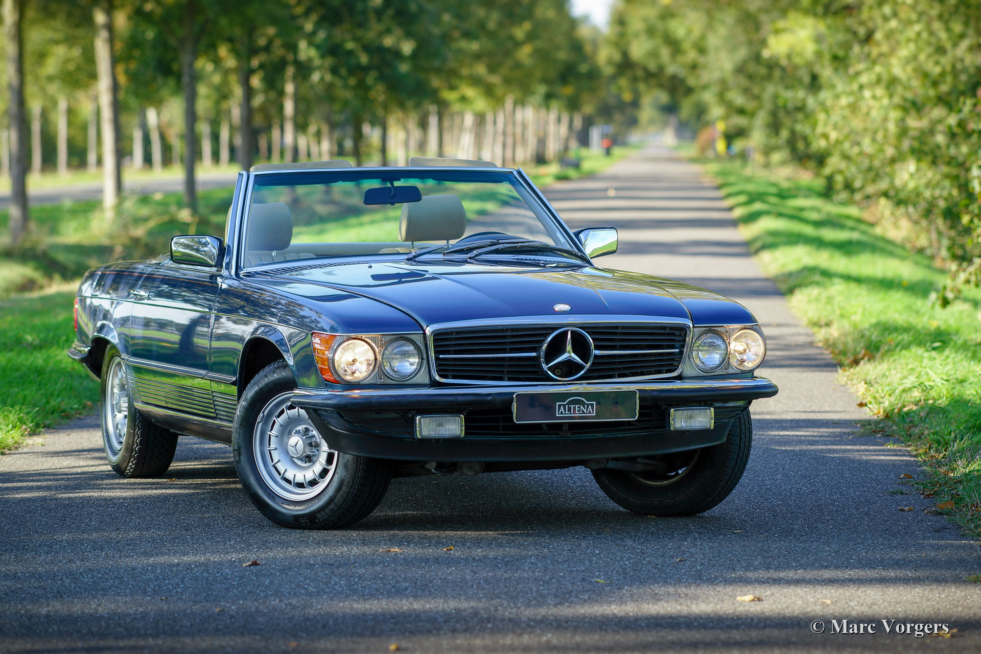 Mercedes-Benz 380 SL (R107), year 1982. Colour blue metallic combined with a beige interior. Hard-top in body colour and a dark blue mohair soft-top. This wonderful Mercedes-Benz was sold new in the USA and the car was recently imported to the Netherlands. The car has driven only 81.000 miles from new and the car has known only two owners! The first owner purchased the car new and sold it to the second owner in 1983. The second owner cherished this fine 380 SL until the year 2018! The full service-history is known and documented, and all the original books are present. The service book is complete. This beautiful Mercedes-Benz is in excellent original condition! The car shows all the original details, only the US bumpers were exchanged for slim European models. The car features original MB alloy wheels and it comes with the original tool-set and a Mercedes-Benz ‘Daten Karte’. A fantastic 380 SL powered by a magnificent V8 engine! The automobile comes with Dutch (EU) documents, the car can be exported / imported globally.