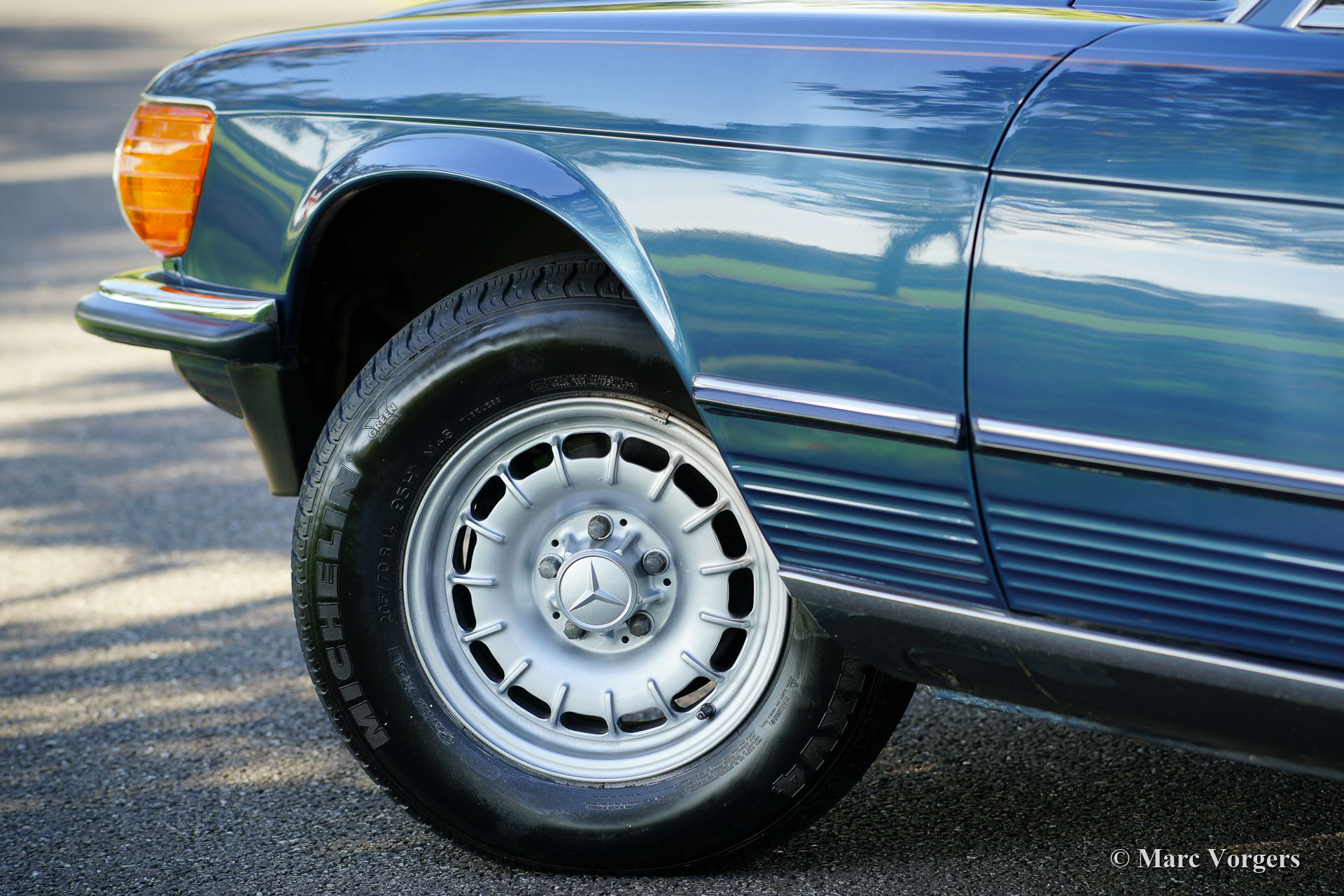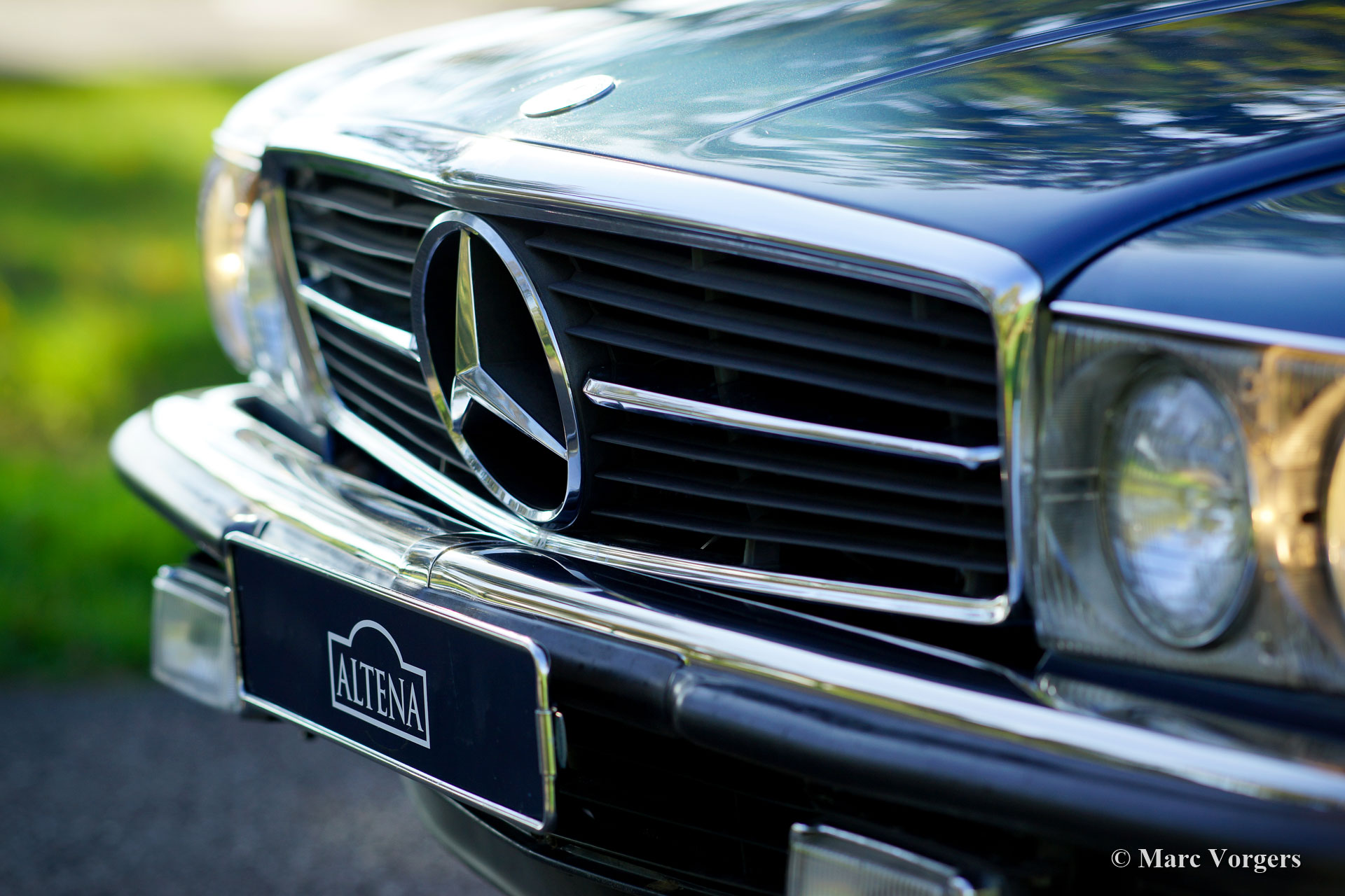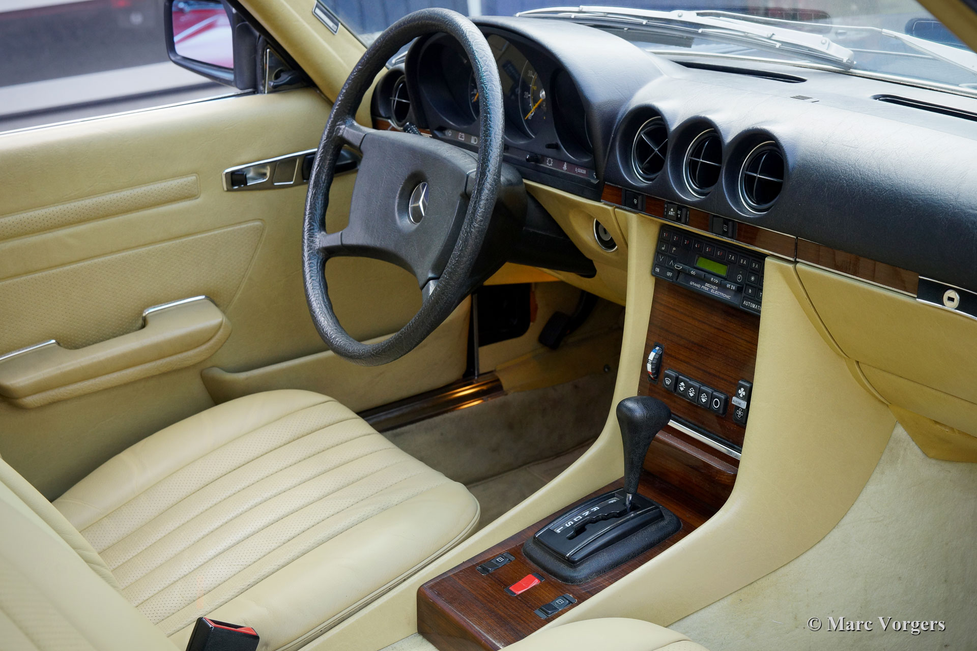 The Mercedes 280 SL, 350 SL and 450 SL are the successors of the 230 SL, 250 SL and 280 SL as we know under the nickname "Pagoda". The "Pagoda was built from the year 1963 until the year 1971, the year the new SL generation was presented to the market. Again Mercedes-Benz achieved to create a timeless design with slick, proper lines. In this shape the SL was sold for over twenty years. The "new" generation Mercedes SL is bigger, wider and heavier than its predecessor but again it was a perfect car considering construction, road holding and driving-comfort. The Mercedes-Benz SL was built with several engines. the buyer had to choose between a V8 with 3.5 or 4.5 liter cylinder capacity or a six cylinder engine with a cylinder capacity of 2.8 liter. The SL was standard equipped with a soft-top which could neatly be stowed away under a lid fully integrated in the car. Optionally the SL could be fitted with a hard-top. The hardtop can easily be fitted to the car, in a couple of minutes, with the soft-top down in place.