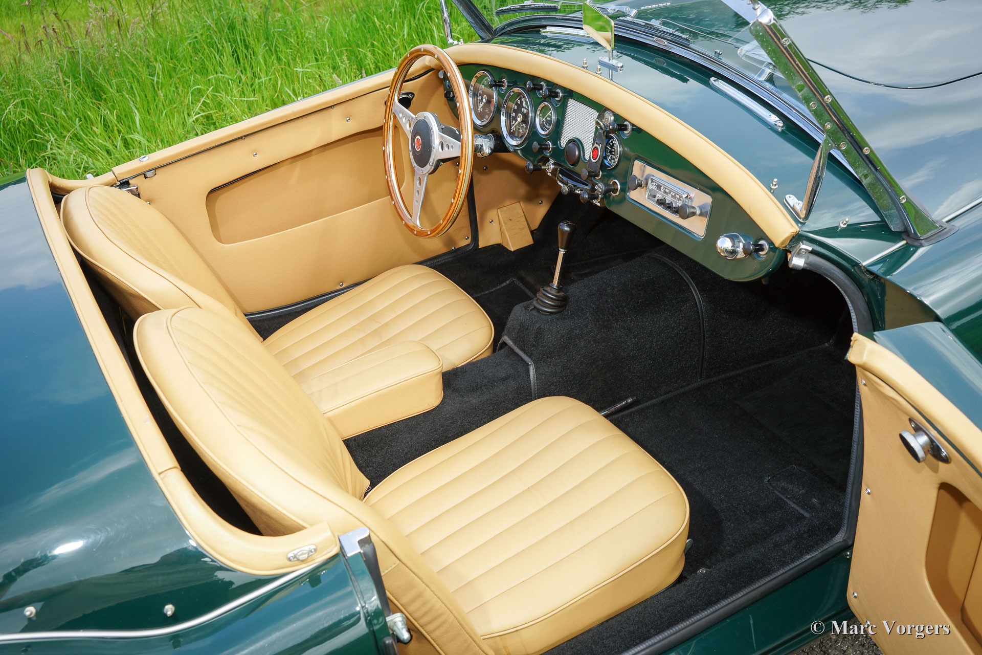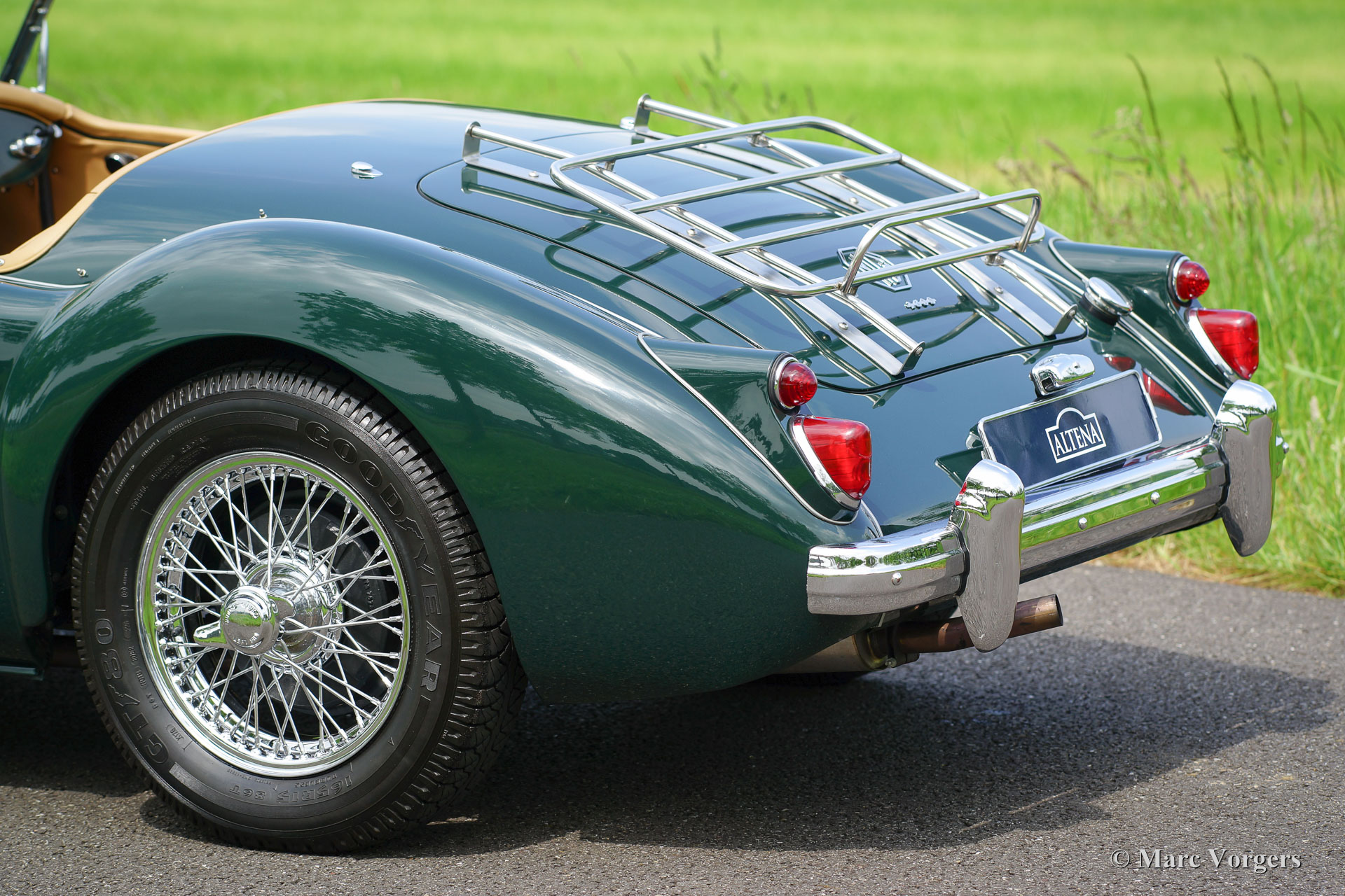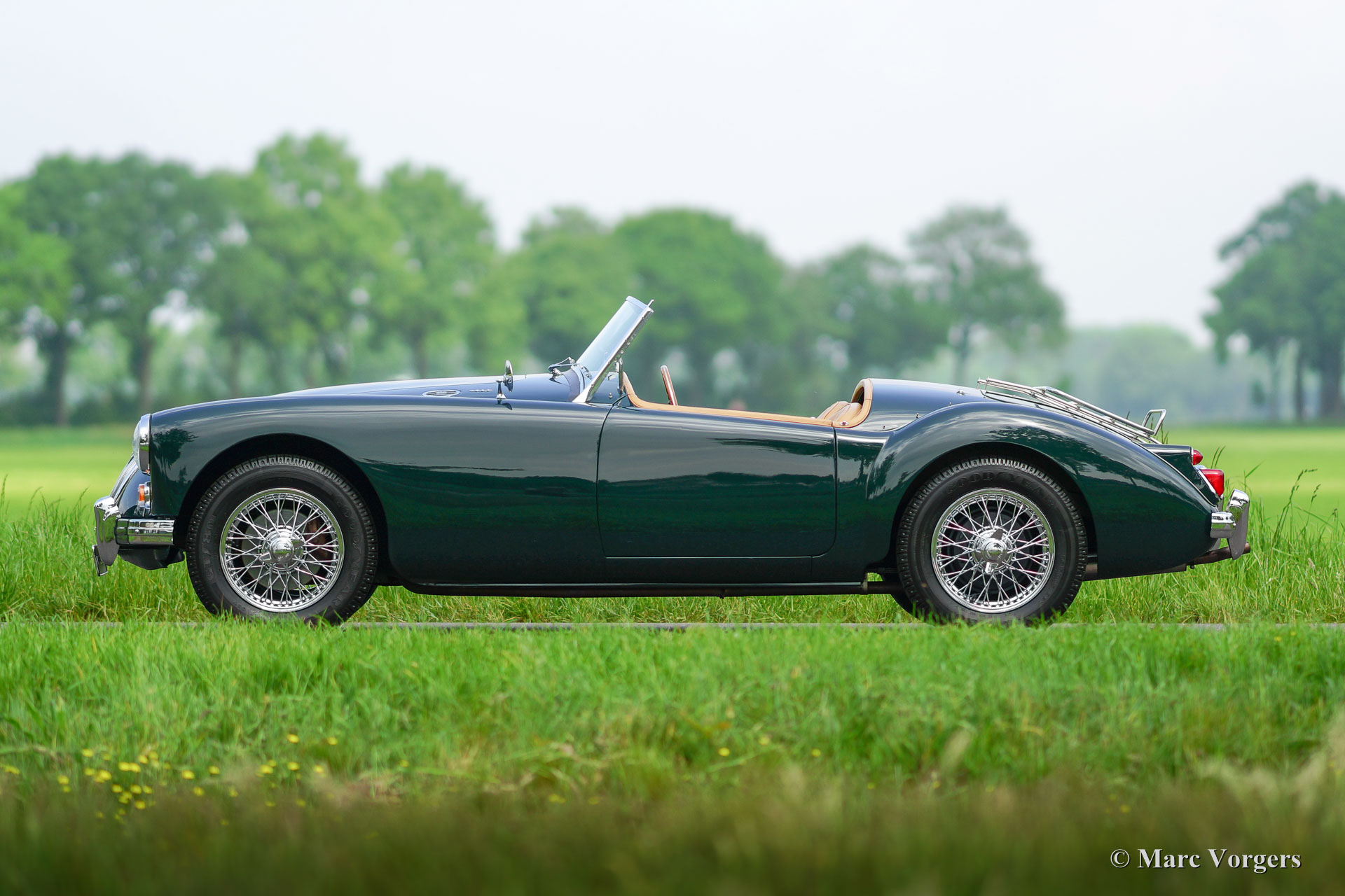 MG MGA 1600 roadster, year 1960. Chassis number 874XX. Colour British Racing Green with a beige leather interior, black carpet and a black soft-top. This gorgeous MGA 1600 was restored in the past and the car is in excellent to superb condition! The MGA roadster is one of the most beautifully styled British roadsters. This car drives superbly and the open top driving experience is a sheer delight! The car features chrome wire wheels and a beautiful MotoLita sports steering wheel with wood rim. A magnificent specimen!