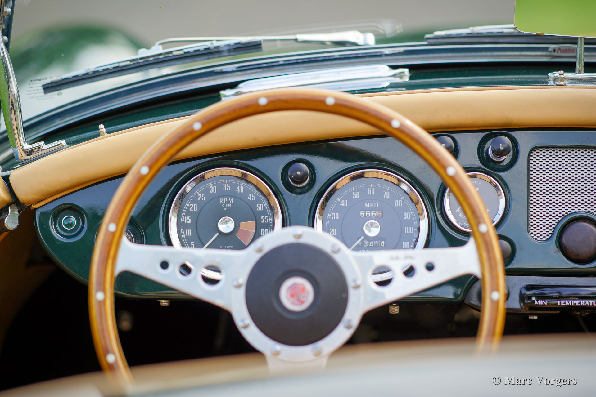The year 1955 saw the introduction of the MGA. With this design the MG broke new grounds. After its predecessors MG TD and MG TF, which were largely based on the pre-war MG TB, it was a roadster with a very modern sporty design. Like its predecessors, the MGA was a great success and, like before, the greater part was sold in America. Until 1959, the MGA was equipped with a 1459 cc four-cylinder engine. From that year, the car was fitted with a 1588 cc four-cylinder. A 1622 cc four-cylinder engine replaced the 1588 cc. engine in 1961. The early MGA versions had very good drum brakes until 1959, but after that year, the MG A was equipped with disc brakes on the front wheels. The year 1962 saw the production of the MGA, the A 1600 Mk II. The MGB replaced this very popular British sports car, and was to develop the success of the MG A even further.