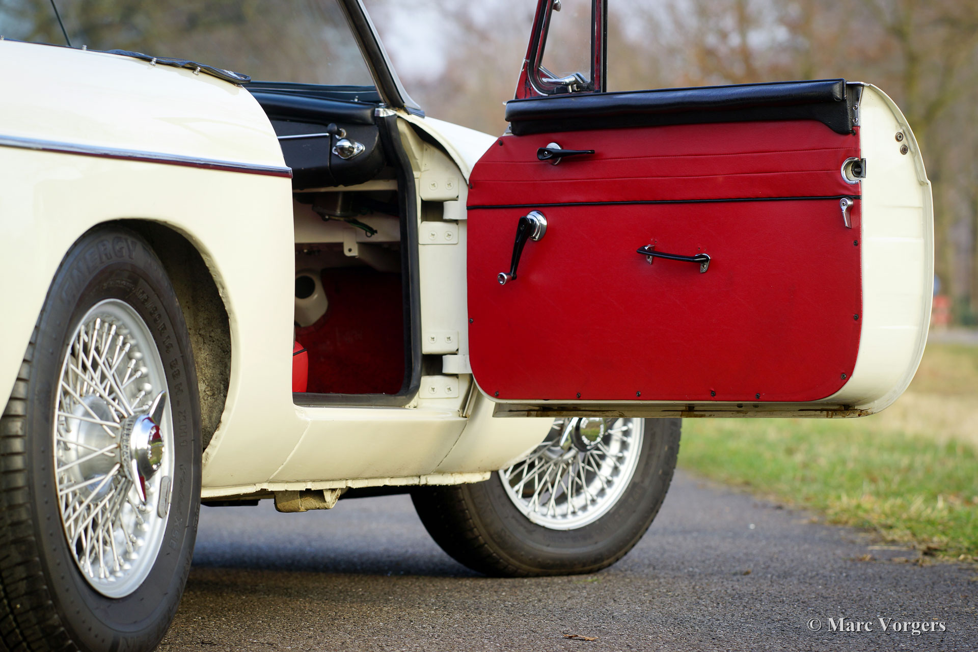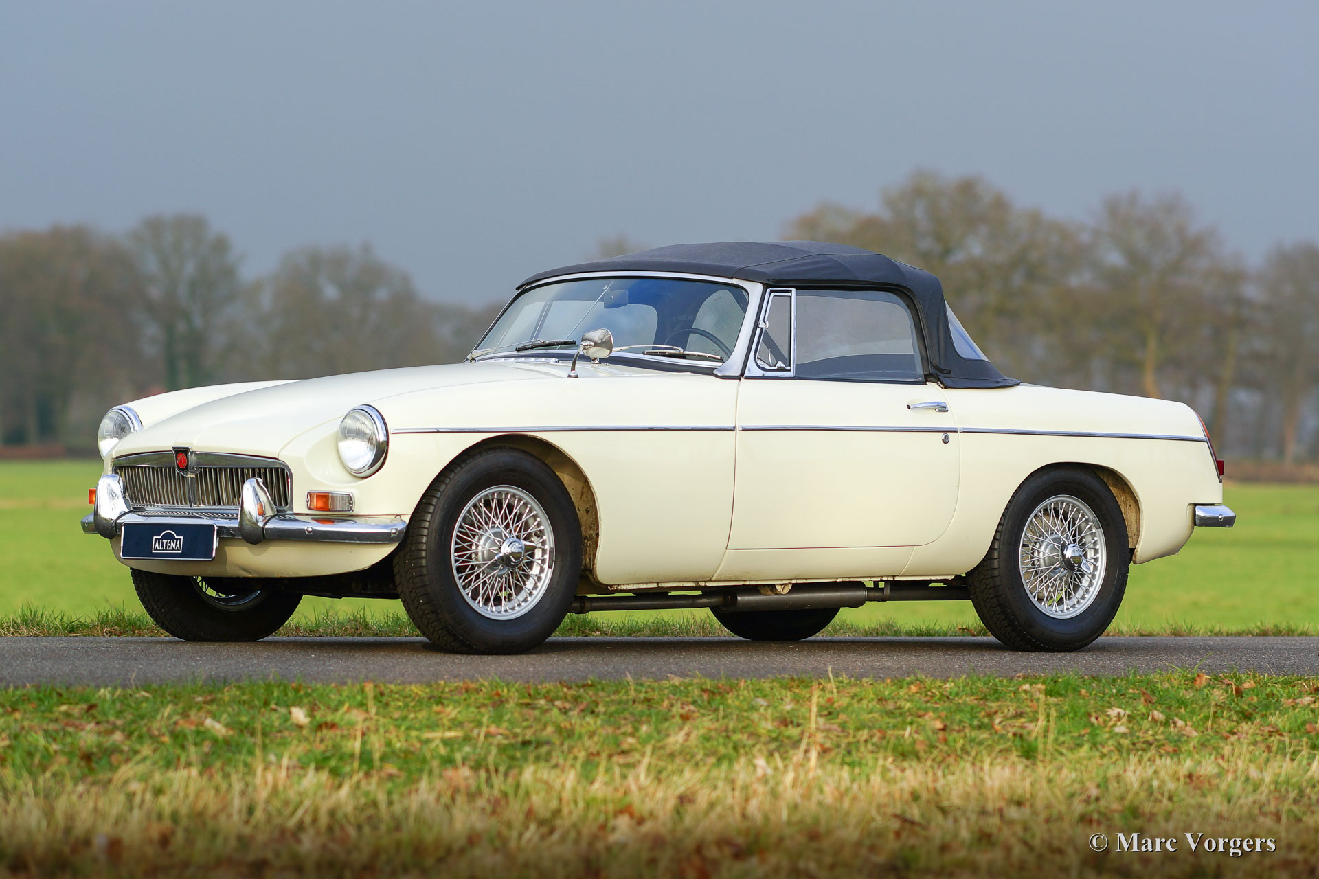MG MGB roadster, year 1965. Chassis number: 4080X. Colour crème white (Old English White) with a red leather interior trimmed with black piping. Red carpet and black rubber protective mats. Black soft-top and hood-cover. This is an early MGB roadster in good and original condition. The car was sold new in the Netherlands. The MGB comes from the second owner who has cherished the car for decades! In the years 1990-1991 the car was stripped and given a new paint job in the original colour. In the year 2002 the engine and the gearbox were overhauled. Documentation on the improvements are present in the history file. The car sports painted wire wheels, 123 electronic ignition, oil-cooler and OVERDRIVE! This is a driver car in good condition.