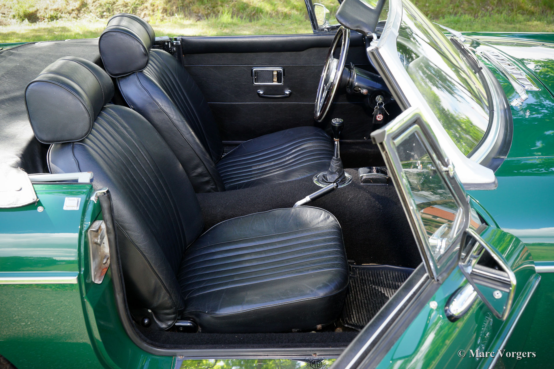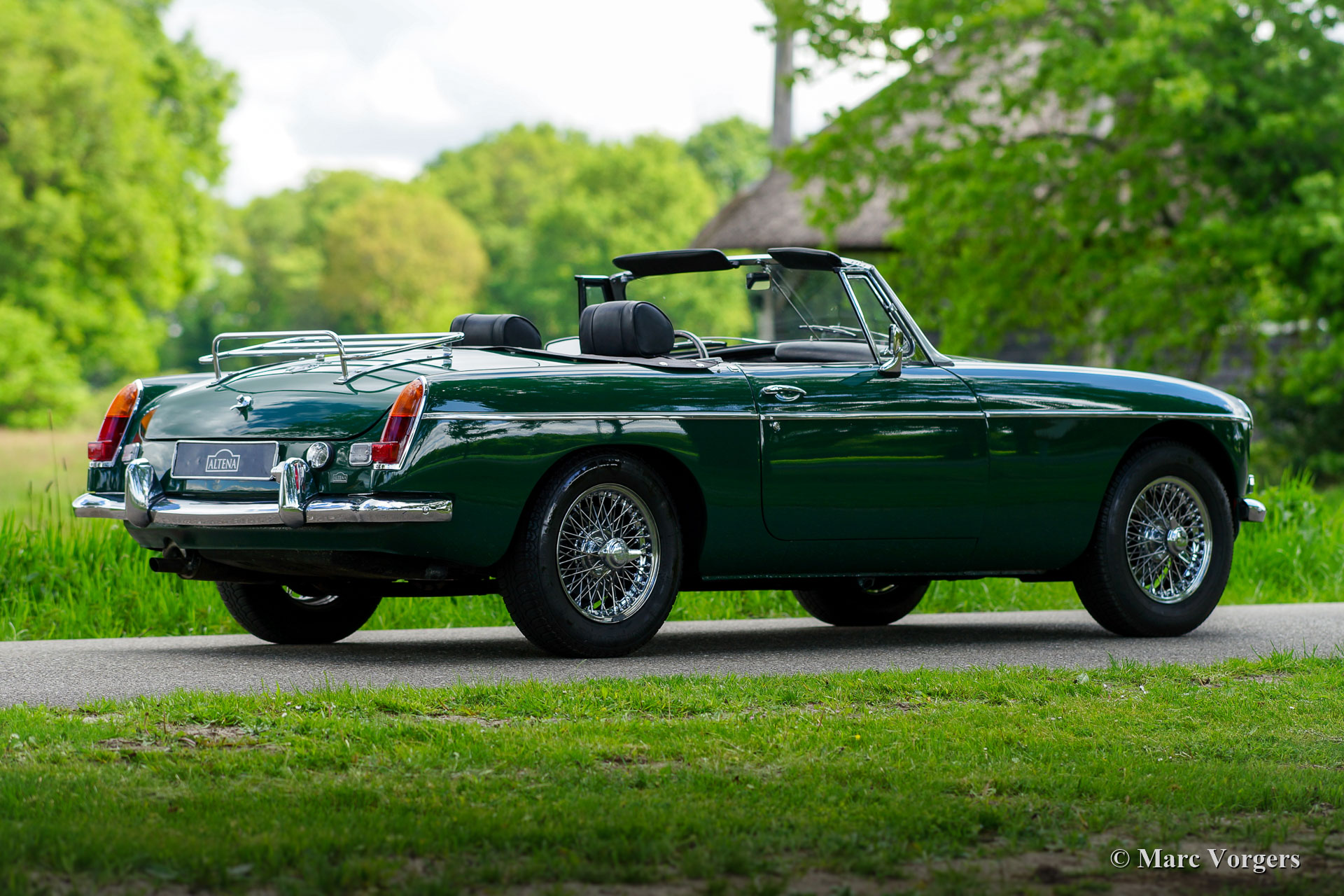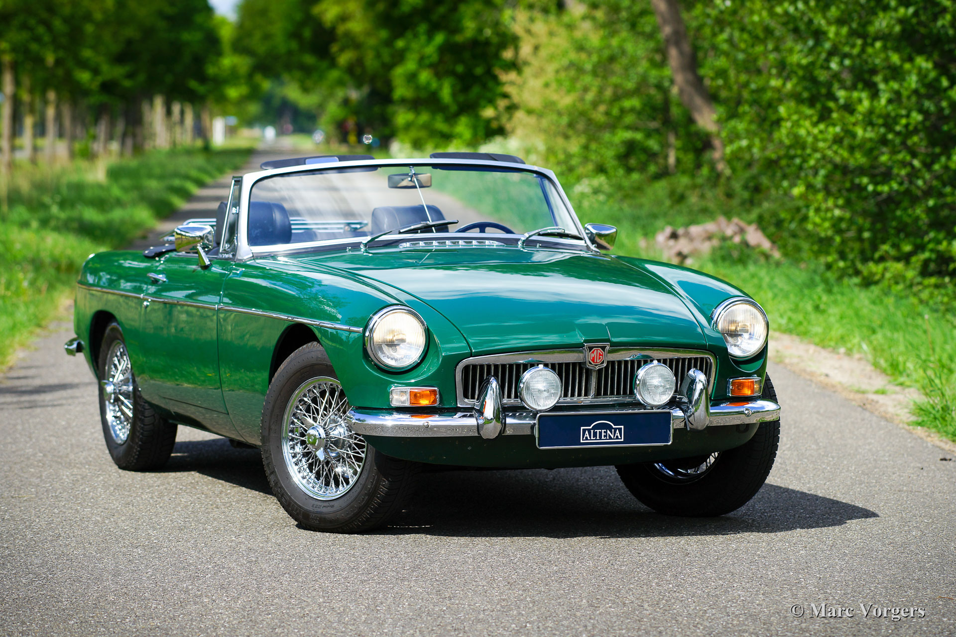 MG MGB roadster, year 1968. Colour British Racing Green combined with a black leather interior and black carpet. Black soft-top, hood cover and tonneau cover. This nice MGB roadster was imported from the USA to the Netherlands in the year 1991. In the Netherlands, the car was repainted and refurbished extensively. The first Dutch owner has cherished the car from 1995 until 2018. We have sold the car to the second Dutch owner in 2018. The car was regularly serviced in the Altena Classic Service workshops since 1995, all the invoices are present. The MG is in very good condition and the car drives perfectly. The car has participated in a host of classic (touring) rallies over the years. The car has even won the famous Tulip Rally! This MGB is fitted with overdrive, chrome wire wheels with ‘knock off’ wheel nuts, Michelin tyres, 2 chrome door mounted rear view mirrors and a pair of period correct Marchal wide-beam fog lamps at the front. This car is ready to be enjoyed by a new owner!