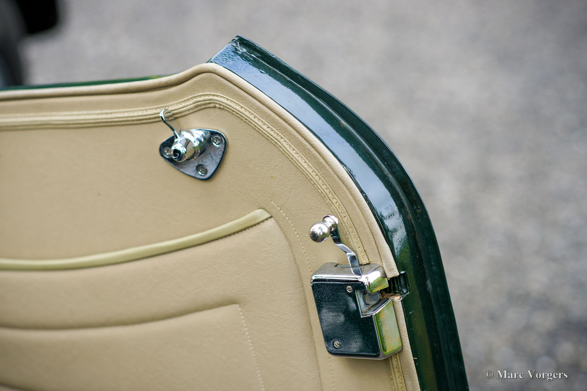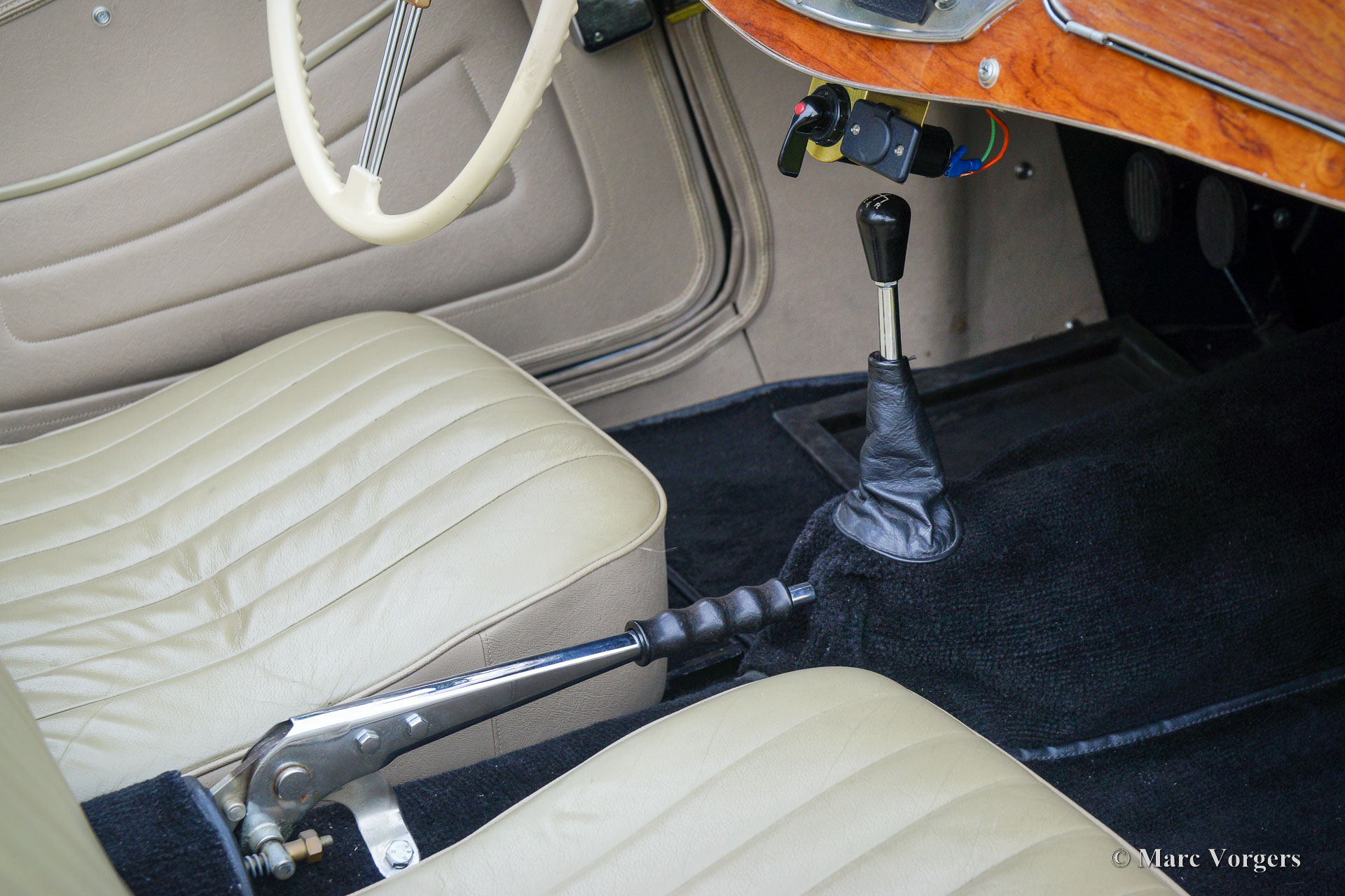 MG TD, year 1952. Colour British Racing Green combined with magnolia (pale beige) leather seats and black carpet. Beige vinyl hood and beige mohair tonneau cover. This wonderful MG TD was sold new in the USA, the car was imported to the Netherlands in the year 2000. After arrival in the Netherlands the car was extensively restored (including the wiring loom) to perfection, and the car has driven only 4852 miles since. The last 22 years the MG was cherished by MG enthusiasts who have kept the car in excellent condition! The MG ‘EPAG’ engine runs flawlessly, and all the controls work like they should. This MG TD shows all the original details like the original steering wheel, and the steel disc wheels with chrome hub caps. This wonderful and super original MG TD can be imported to any country. This fine MG TD is a true ‘gem’ for the enthusiast.