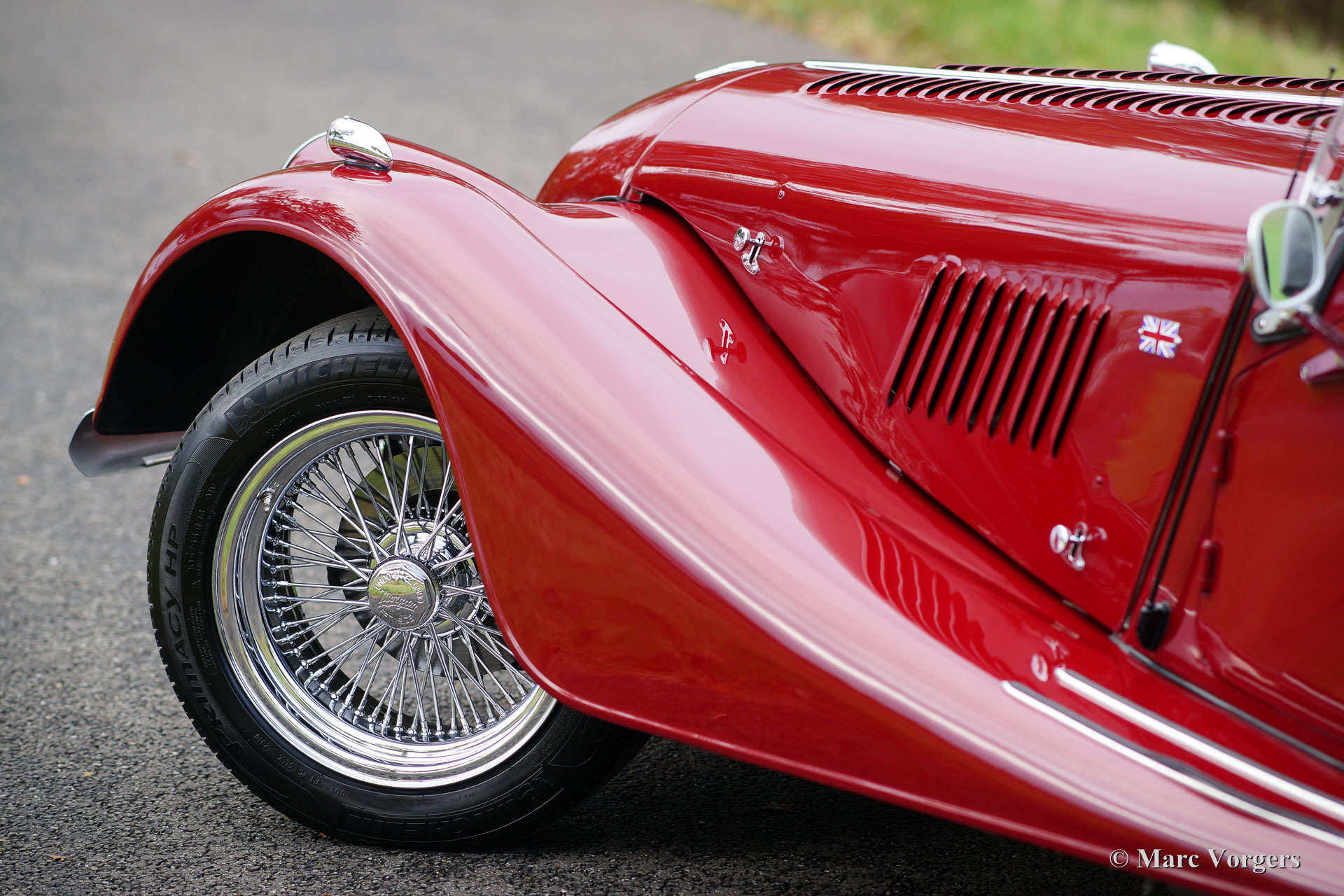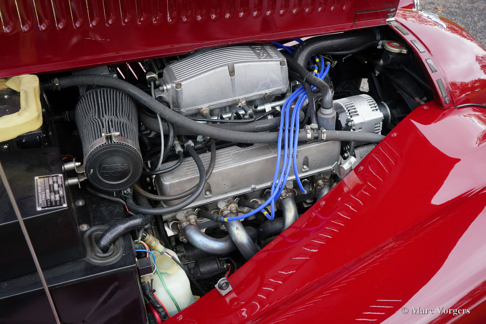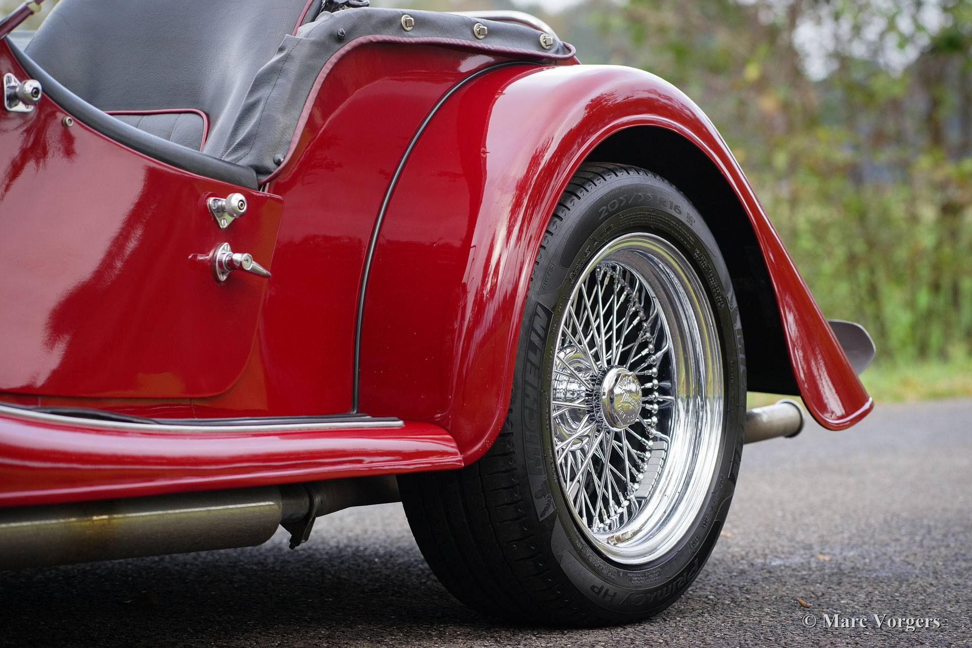 Morgan +8 ‘wide body’, year 1995. Chassis number R1132X. Colour dark red with a black leather interior. This very impressive Morgan +8 ‘wide body’ is in excellent condition and the car drives perfectly! The low weight (about 1000 kg) combined with the powerful Rover V8 engine (about 200 bhp) is a magnificent recipe for a lot of driving fun! This Morgan +8 ‘wide body’ features the original wide chrome wire wheels, a Stainless Steel ‘free flow’ exhaust manifold, additional driving lamps at the front, a chrome luggage rack and a special umbrella storage tube above the rear bumper. The Morgan +8 ‘wide body’ is a rare car, just over 350 examples have been built. A Morgan is not just a classic car or a modern classic; Morgan is a way of life.