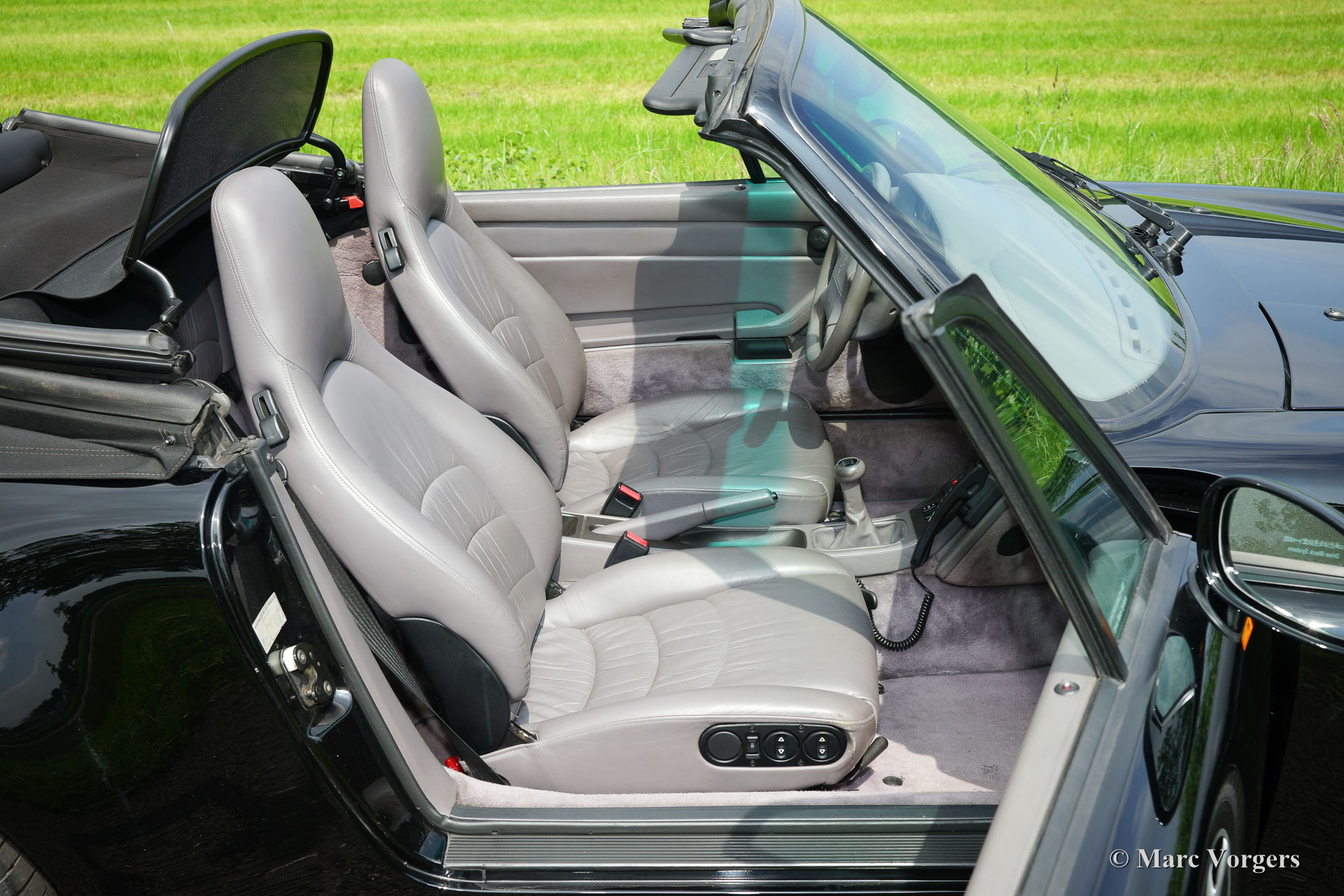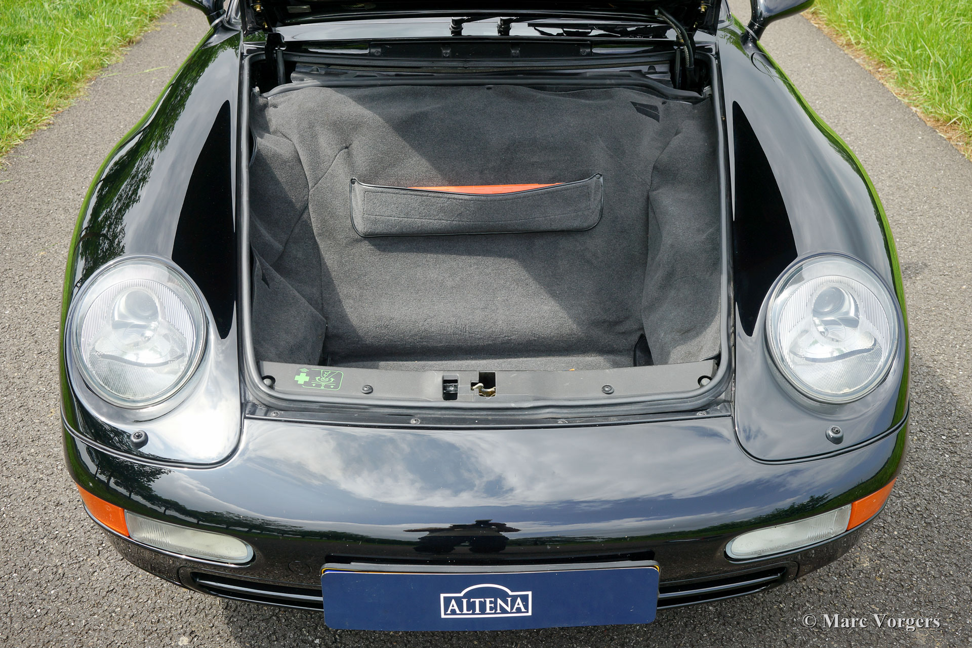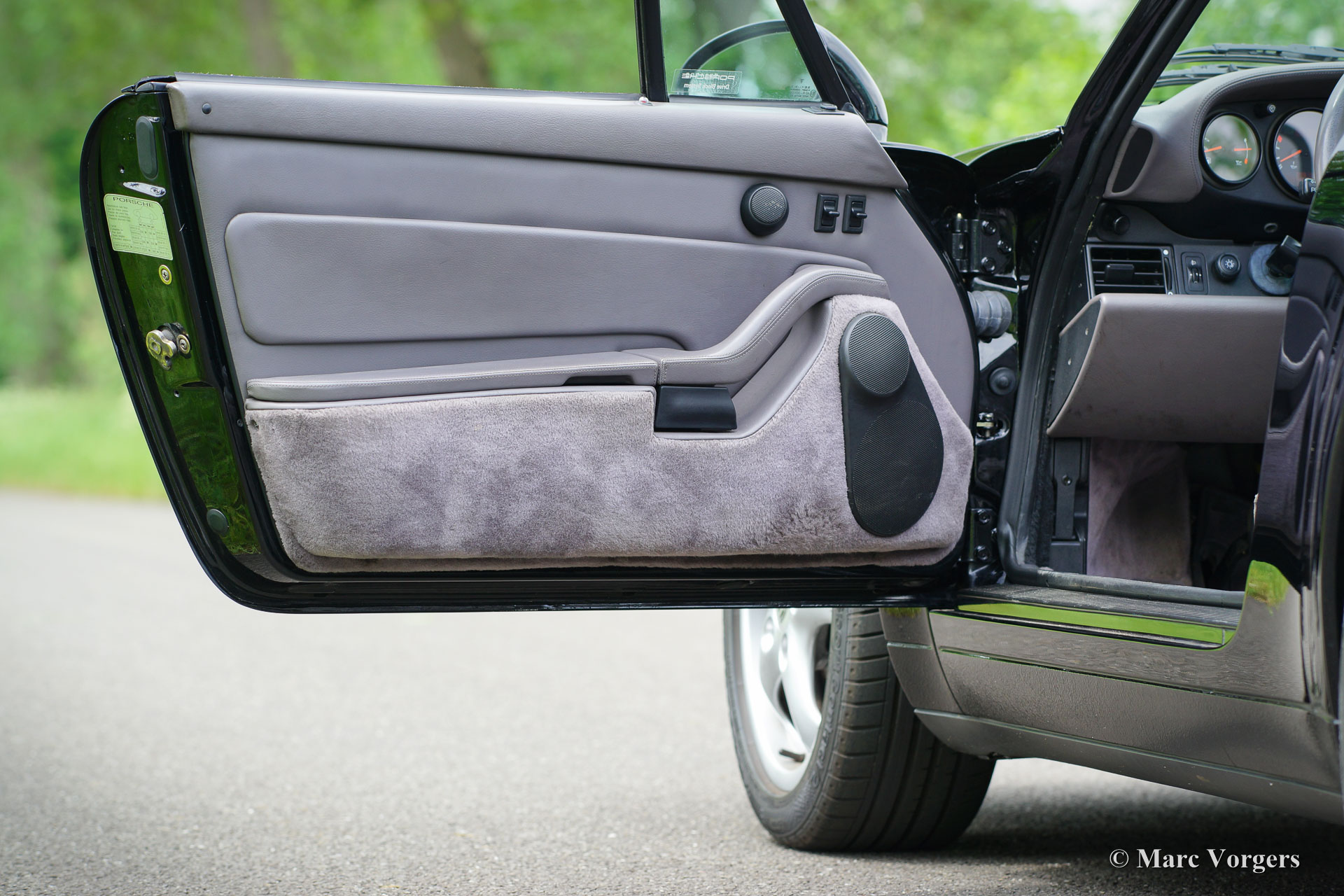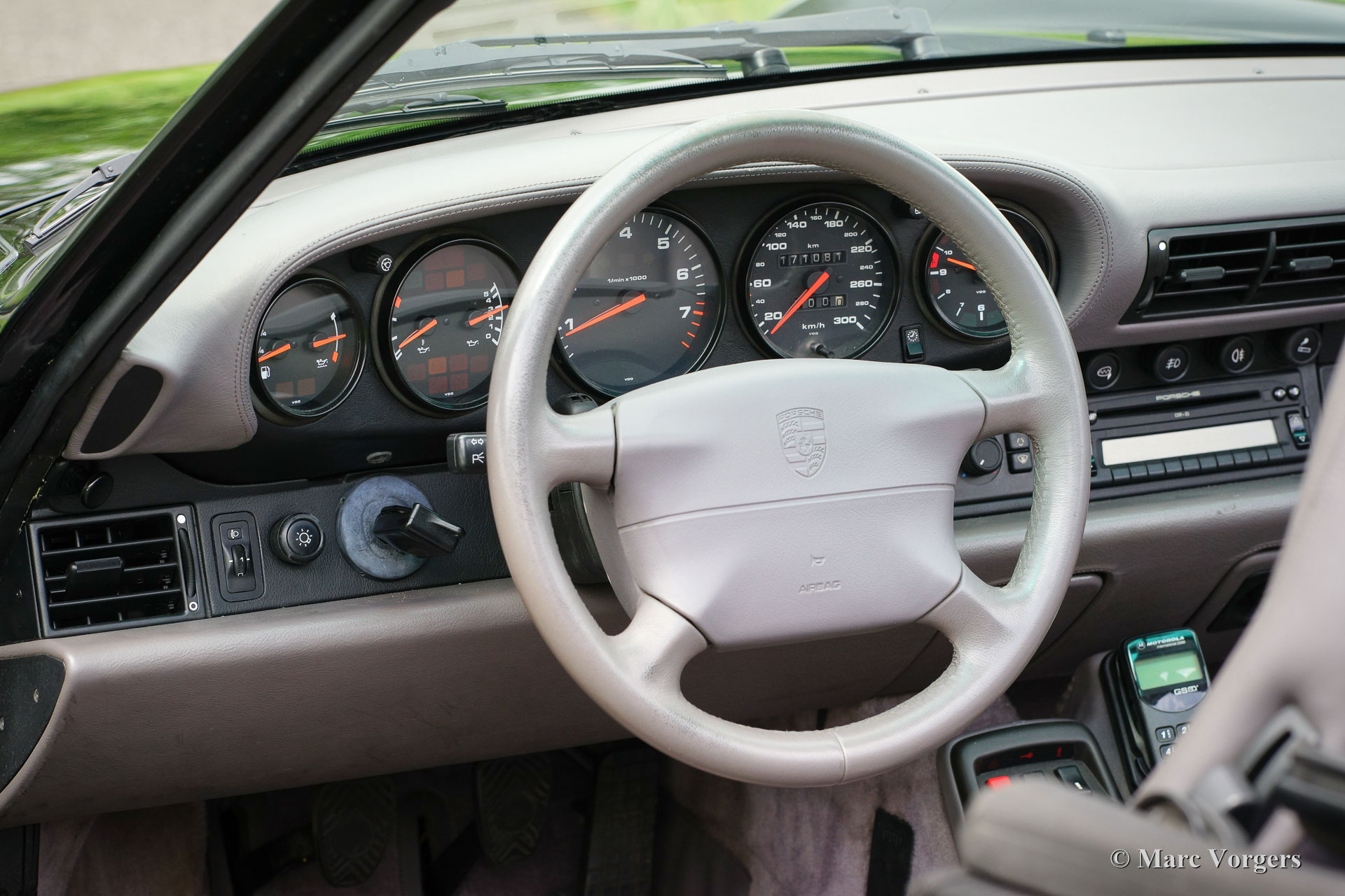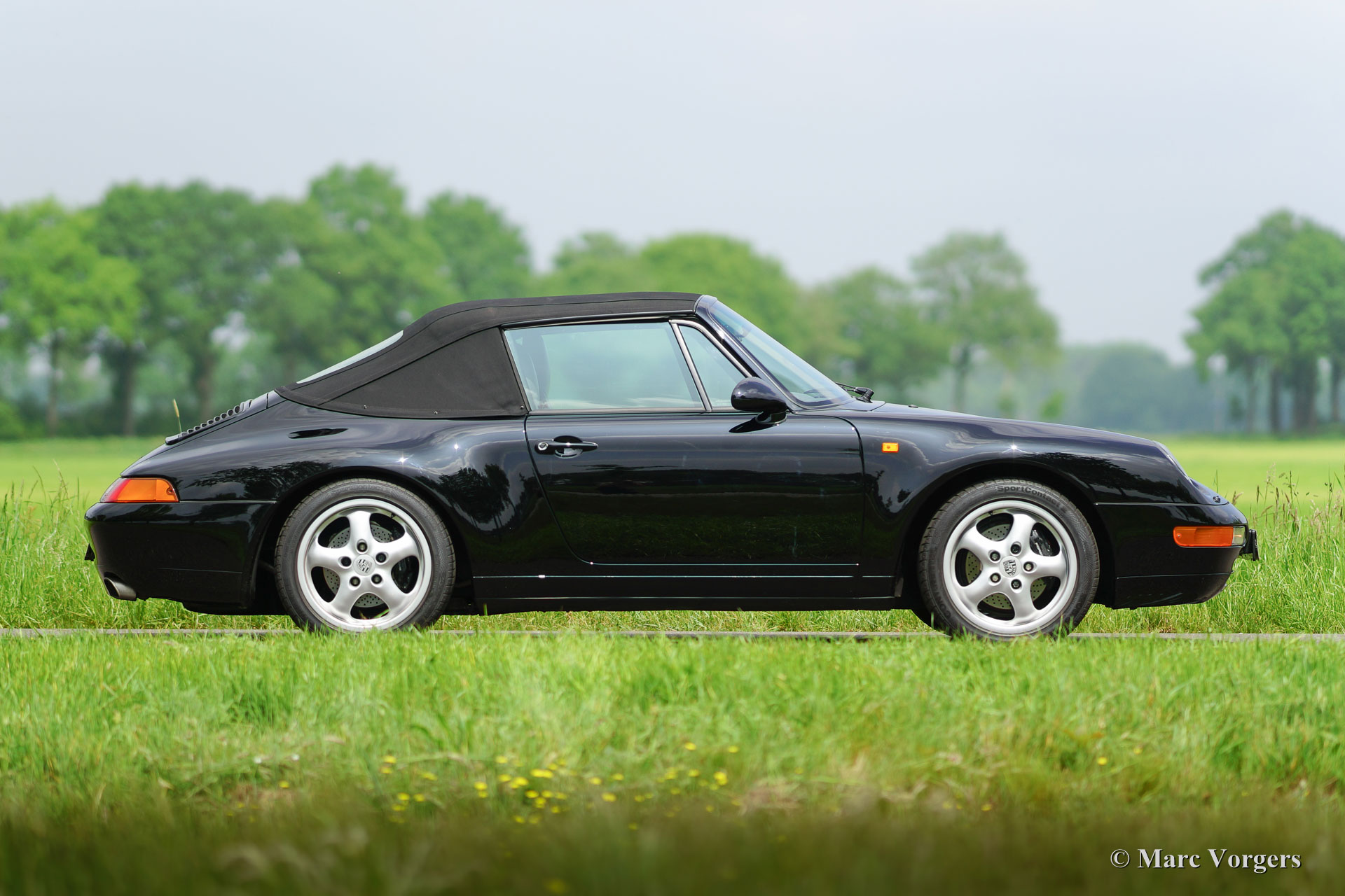 Porsche 911 (993) Carrera cabriolet, year 1995. Chassis number: WPOZZZ99ZTS331XXX. Colour black with a grey leather interior and grey carpet. Black hood. This tremendous Porsche 911 Carrera cabriolet was sold new in Germany. In the year 2000 the car found a new owner in France. In the year 2013 the 911 was imported to the Netherlands. The history is fully known and documented. Also the service history is complete; the service book was stamped in Germany, Austria, France and the Netherlands and the service invoices are also at hand. This fine Porsche 911 Carrera cabriolet has driven 171.100 kilometres from new, the car is in excellent condition and the car drives perfectly! This Porsche 911 features a six speed manually operated gearbox, light alloy Cup wheels, a Porsche radio and a wind-stop.