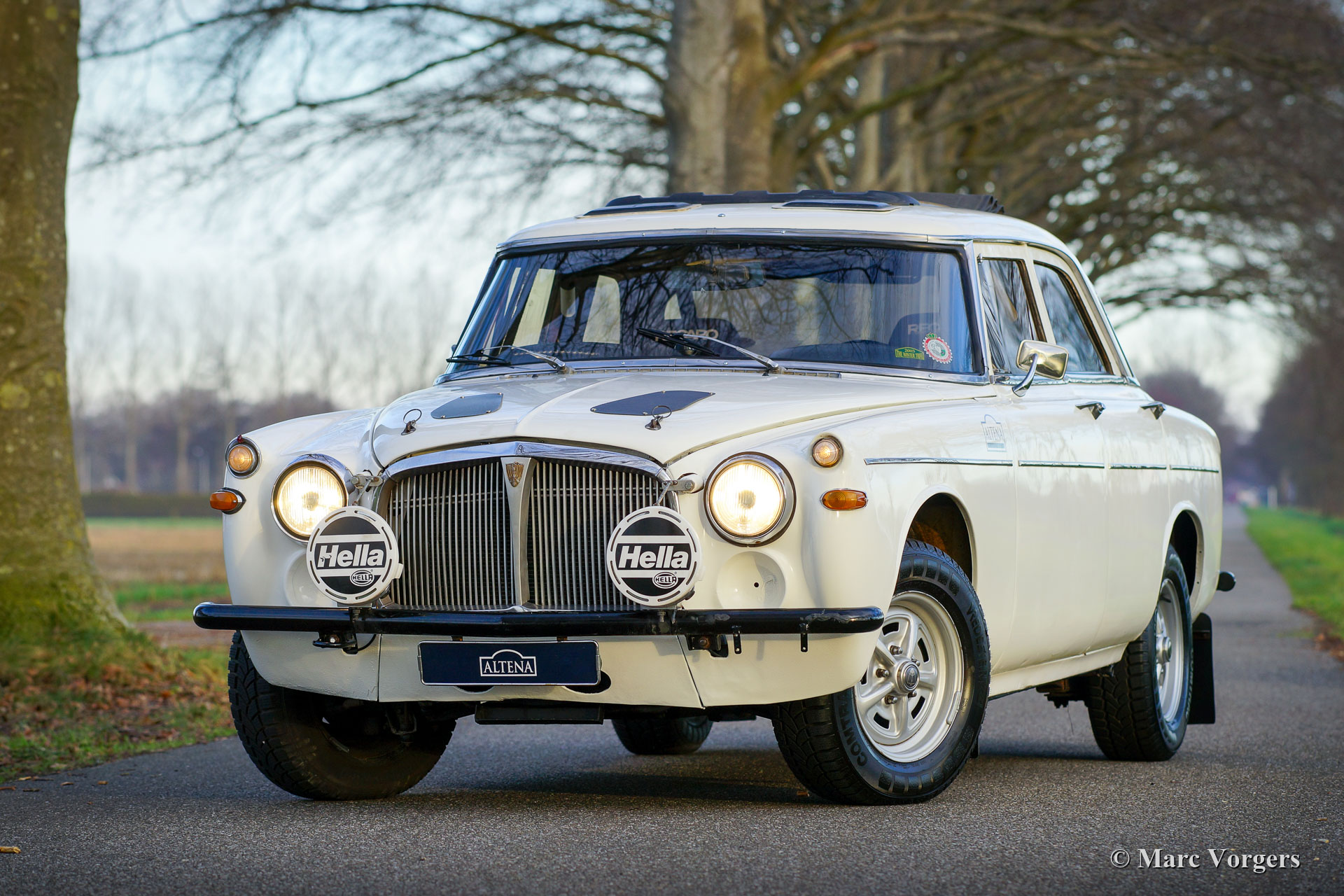 Rover P5 B 3500 V8 rally car, year 1968. Colour white with a black rally interior. This car was especially build for the ultra-demanding 1993 London to Sydney endurance rally. The car is a 1968 Rover P5B Mark 3, fitted with the Rover 3.5 litre V8 engine and a rugged 5-speed manual gearbox. The automobile is fitted with a full CRMO roll cage and protected engine compartment, 120 Litre fuel tank, Koni shock dampers, heavy duty spring leaves, large AP295 brakes, A Quaife limited-slip differential, and a special wiring loom. In the purposeful rally interior you will find comfortable Recaro seats, 4-point safety harnesses, additional roof ventilation flaps for the driver and co-driver, a vinyl sliding sunroof, a Rally Tripmaster, Compass, a hydraulic handbrake and many more rally accessories. All the fuel lines, wiring and brake lines are mounted through the interior. For extra safety the chassis was reinforced. Altena Classic Service sold the car to the current owner in 2010, ever since the car was serviced and brought up to date (before and after every rally event) by Altena Classic (Rally) Service. The car is in good condition with obvious signs of use. Mechanically it has proven to be an exceptionally reliable and powerful companion! Over the decades the car has participated in the following historic rally and endurance events: 1993 London - Sydney Trail, 1996 The London - Cape Town, 1998 The Inca Trail (South America), 2003 The Winter Trail (Europe / Balkans), 2010 Copa Cabana Trial (South America), 2014 Winter Trial, and many day / weekend rallies in the Netherlands / Germany and Belgium. This Rover P5B is a fully prepared endurance rally car, ready for every adventure!