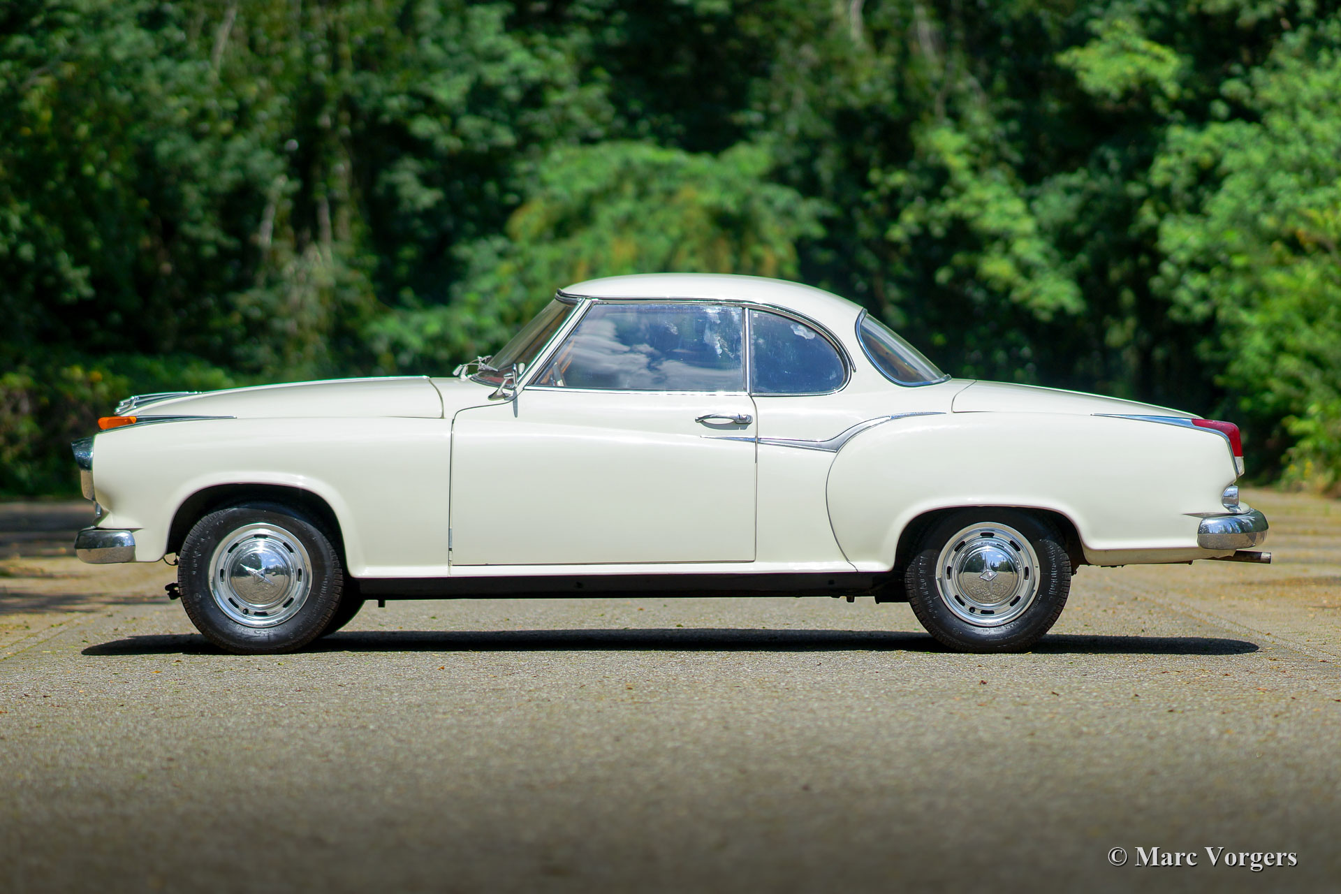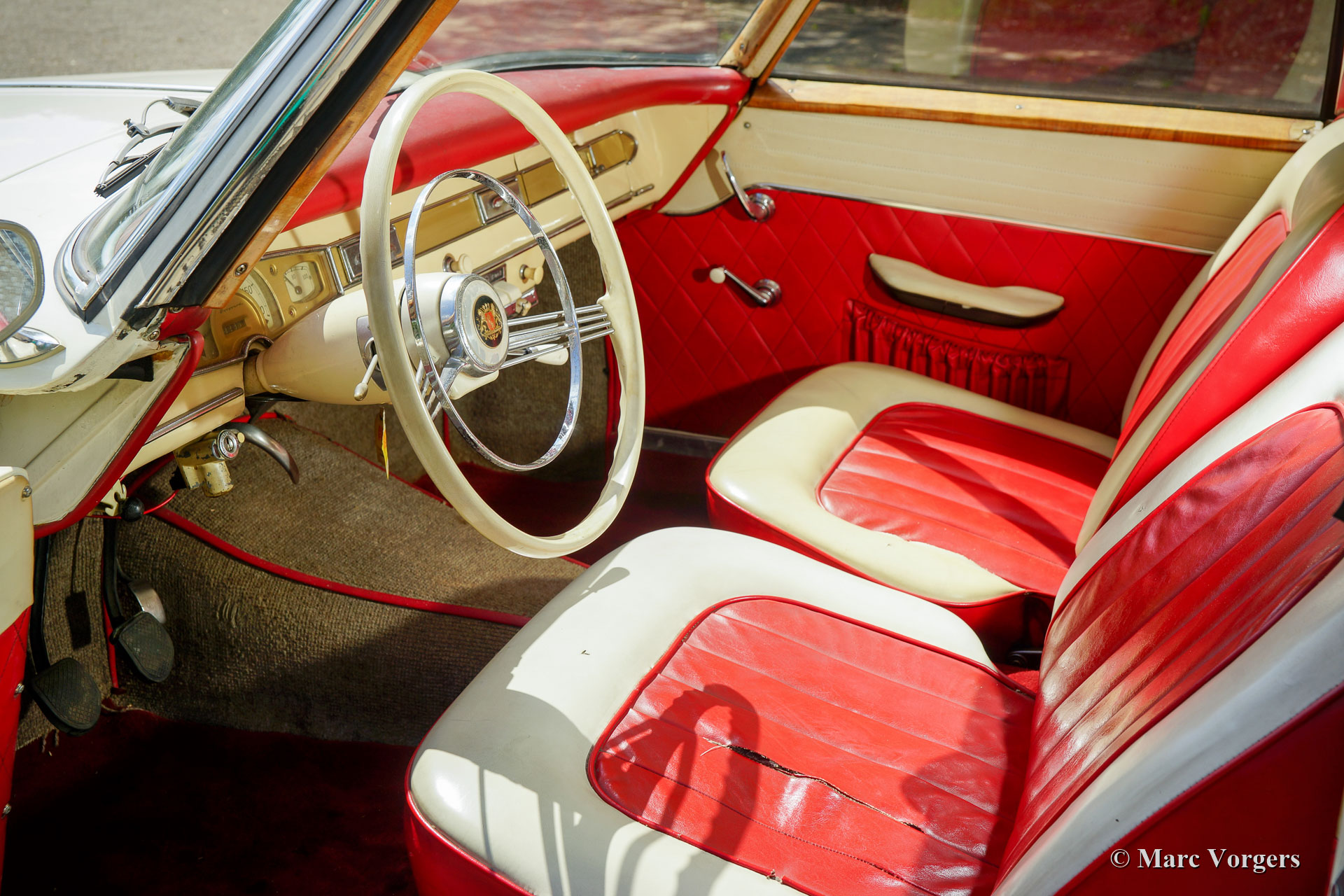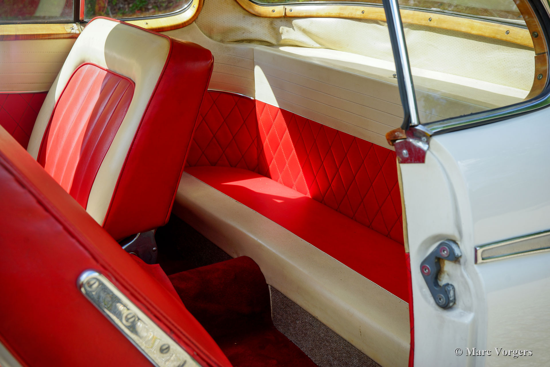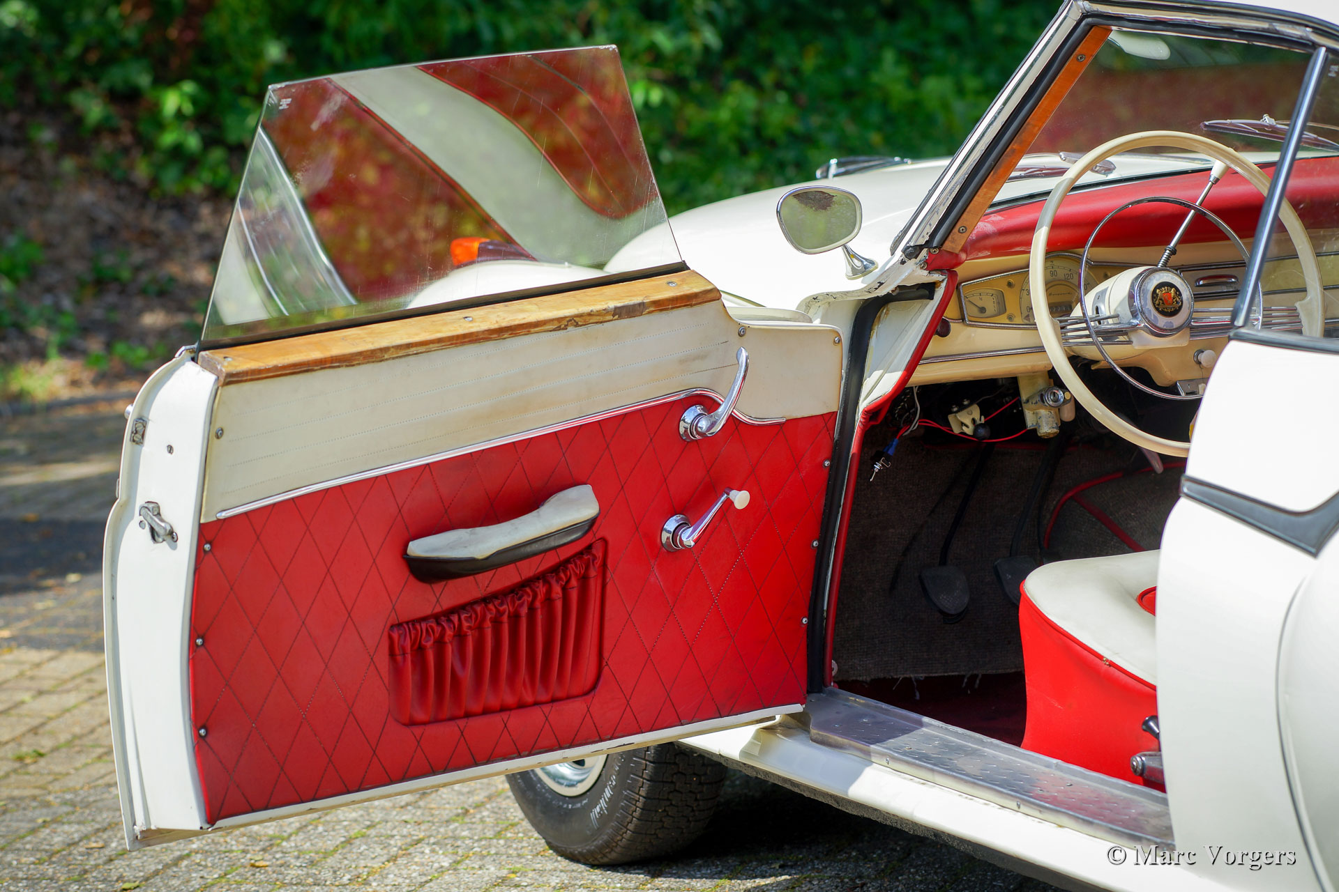 Borgward Isabella Coupe, year 1958. Colour cream white combined with a cream white / red interior and grey carpet. This wonderful Borgward Isabella Coupe was sold new in Germany where the car is still registered. This gorgeous Coupe is in a super original condition! The car only received a very good repaint in the past, everything else is fully original. The car shows all the original details and of course in some places, traces of use and age. The interior and boot carpet have seen better days and the driver’s seat needs some new stitches. A new owner can make this car his own with minimal improvements. The bodywork is completely sound, and the mechanicals are in good condition and function like they should. The car is a delight to drive! This super original Borgward Isabella comes with German papers so it can be imported to any country globally.