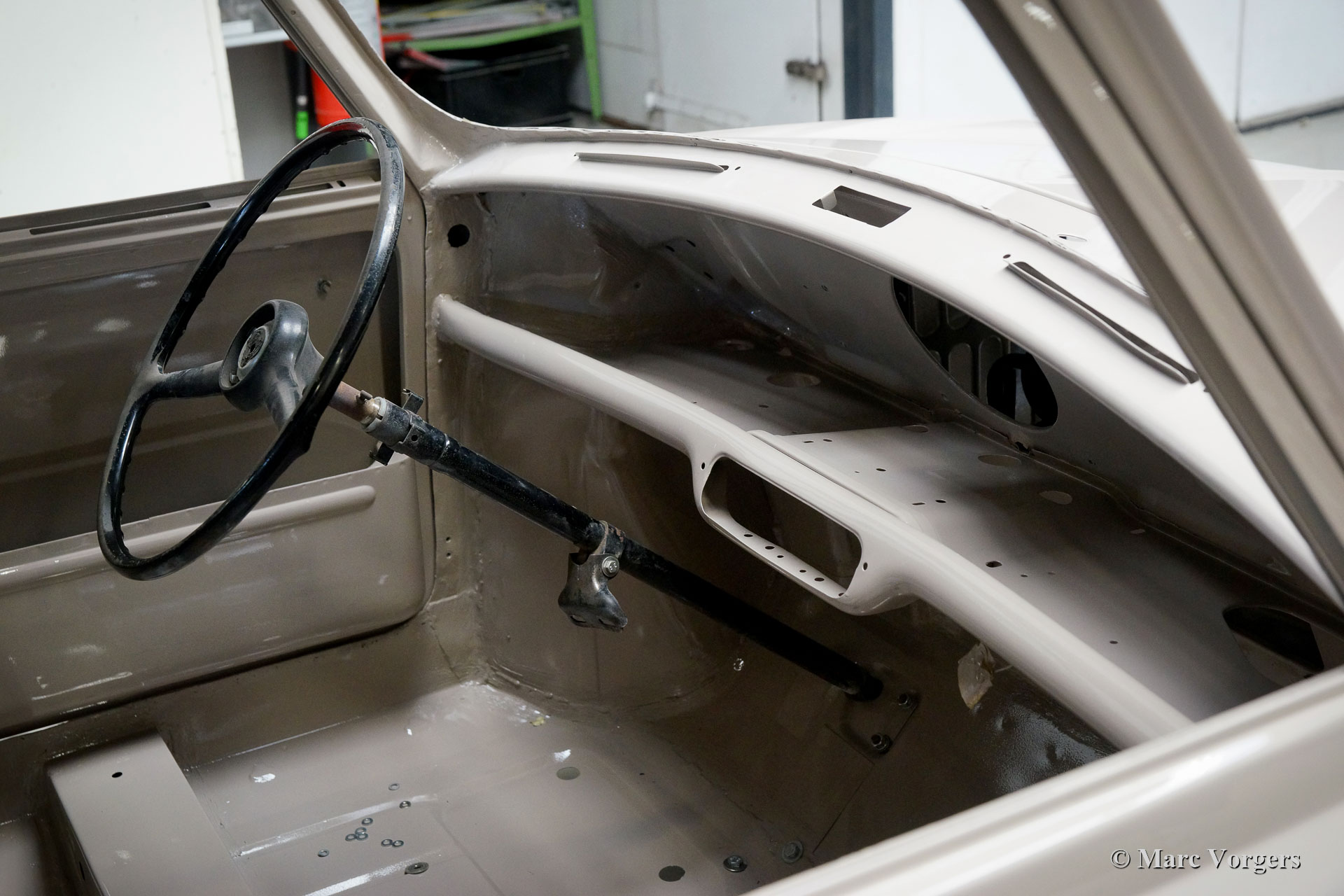 This fantastic Austin Mini Countryman is being extensively restored to top condition by Classic Job. The car was full stripped, and the sheet metal work was carried out. At the same time all the mechanical parts were restored and overhauled to brand new condition. The bodywork was restored from the bare metal up and painted in a wonderful original shade of light grey inside and out. The suspension and the engine were fitted and now the car is being completed. On this moment new wood trim is being made for the rear sides of the bodywork.