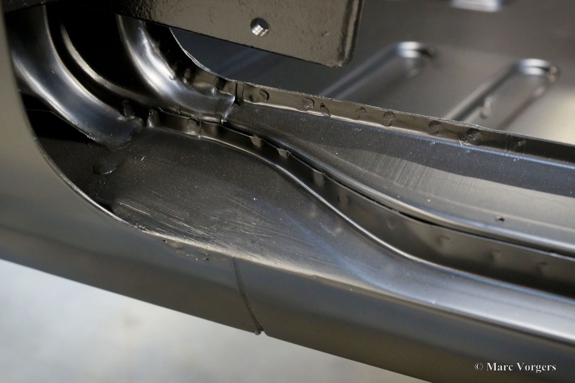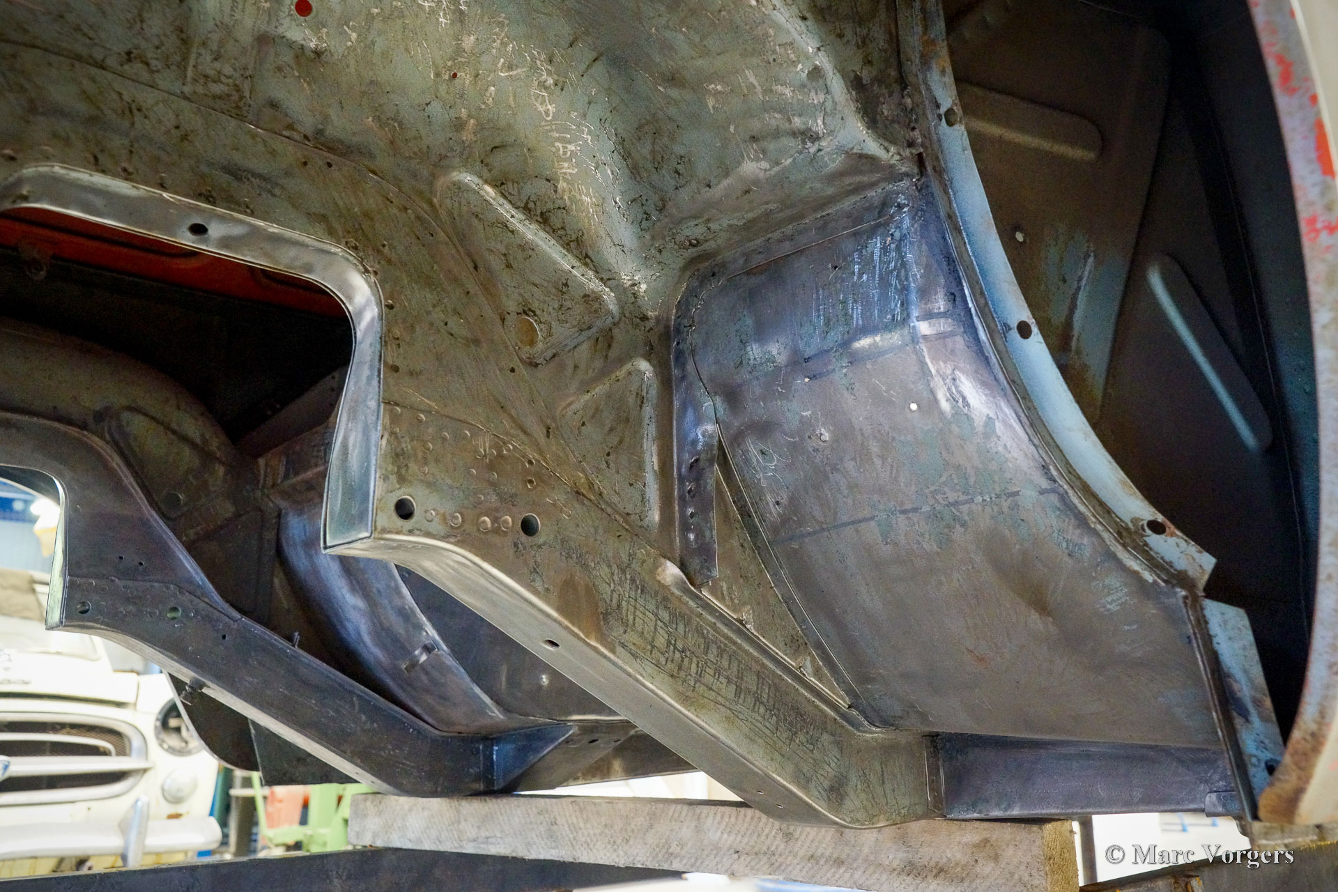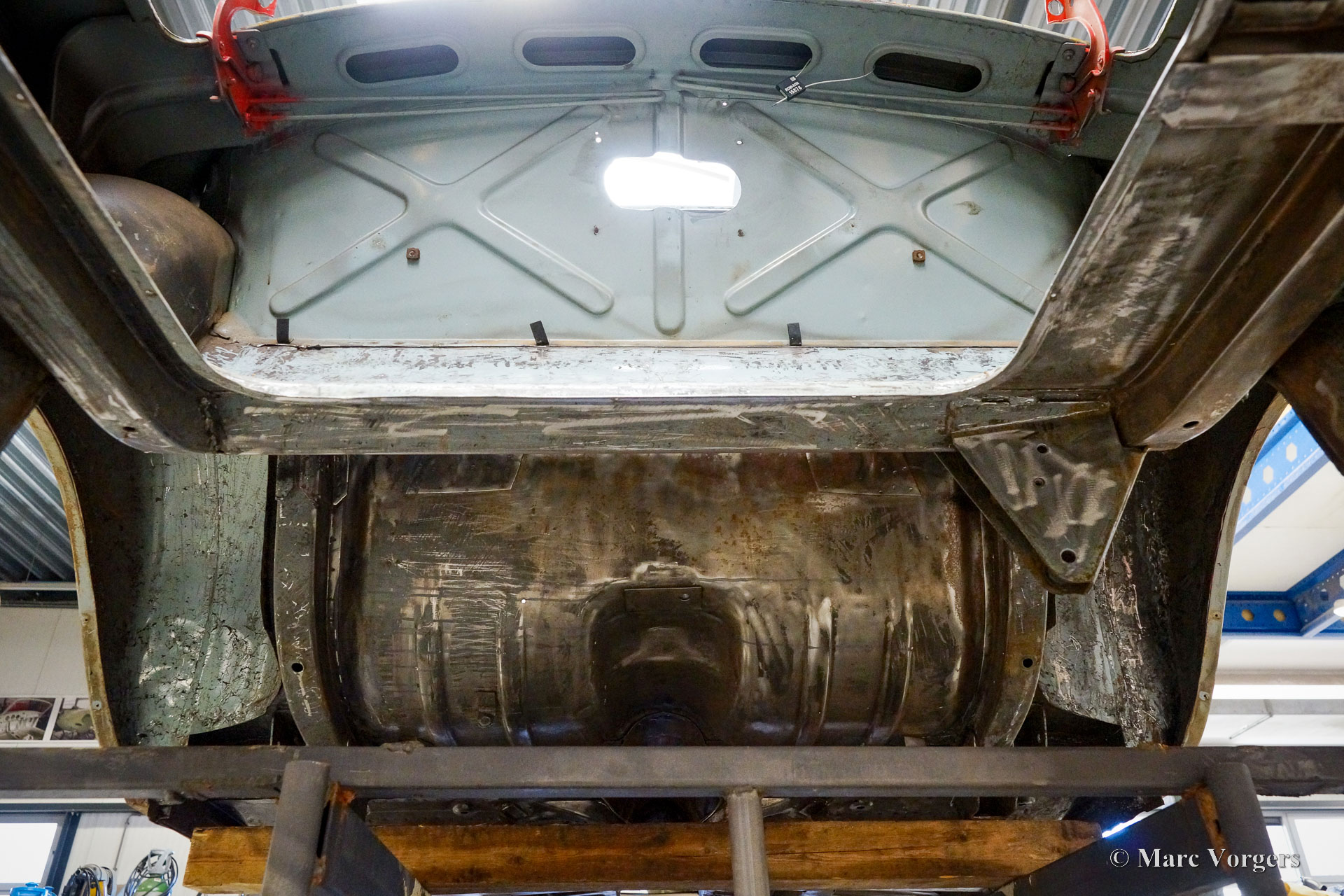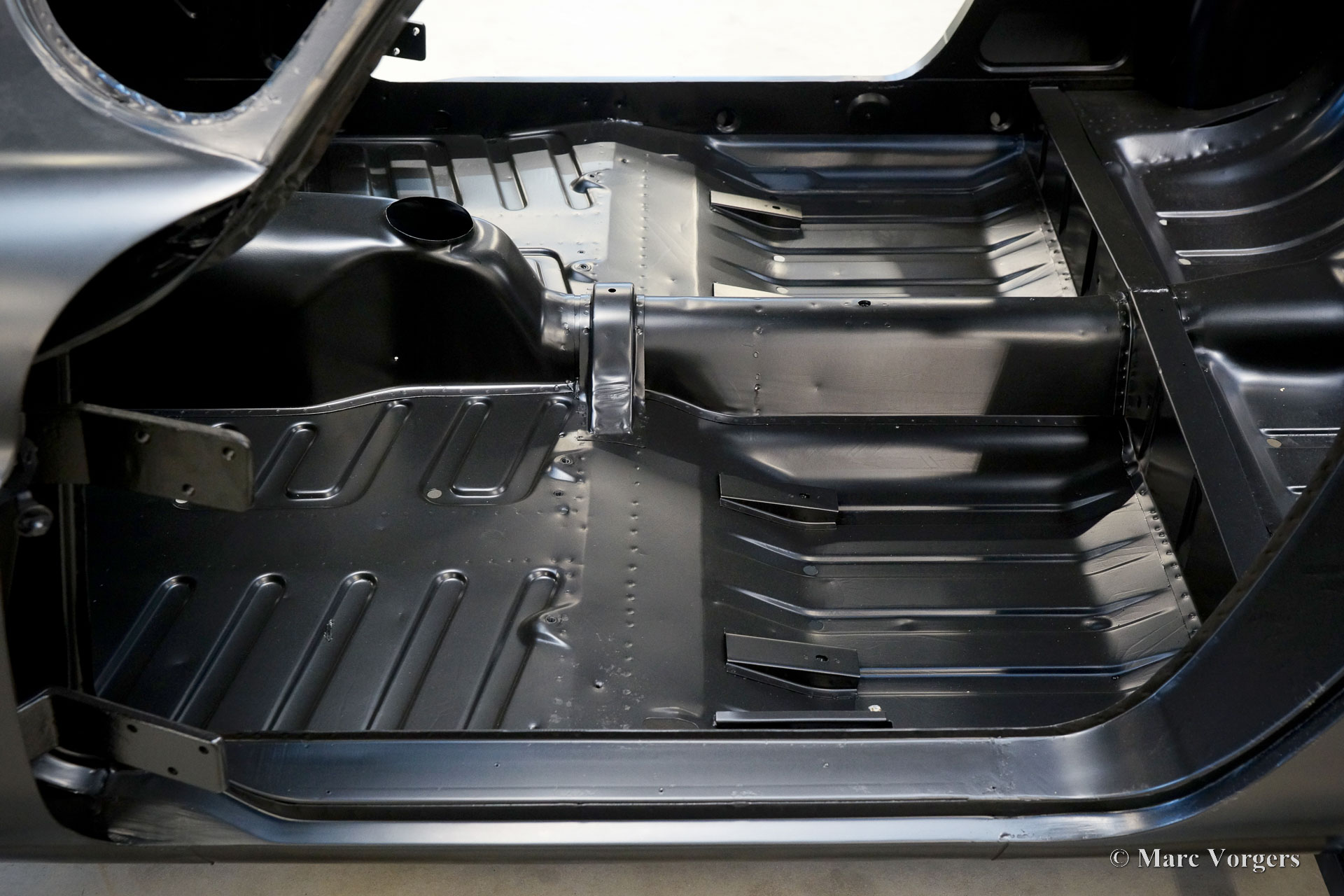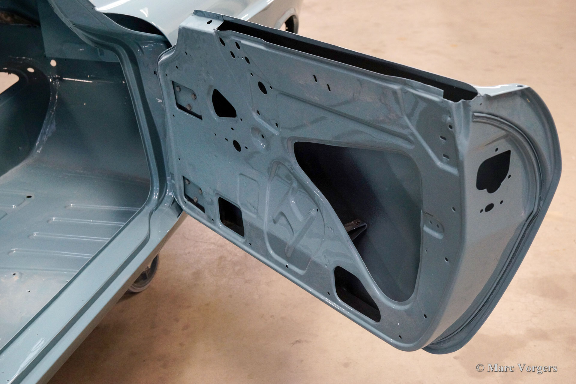 The body of this Volvo P1800 S was restored to brand new condition by Classic Job. The car was delivered stripped, and all glue residues and underbody protection have been removed. The bodywork was then completely stripped of paint in a paint stripping bath. The body proved to be in a beautiful and rust-free condition. Some sheet metal work was carried out. Both rear fenders showed poorly repaired minor collision damage which needed to be repaired. The rear panel between the rear lamps was replaced because of an earlier bad repair. After the sheet metal work was completed the bodywork was given a KTL coating in which the body was completely immersed in a special bath leaving a black coating on every metal surface inside and out and in every seam. After that the bodywork was smoothened, primed, and given a perfect new paint system. The Volvo P1800 S is being completed by the owner.