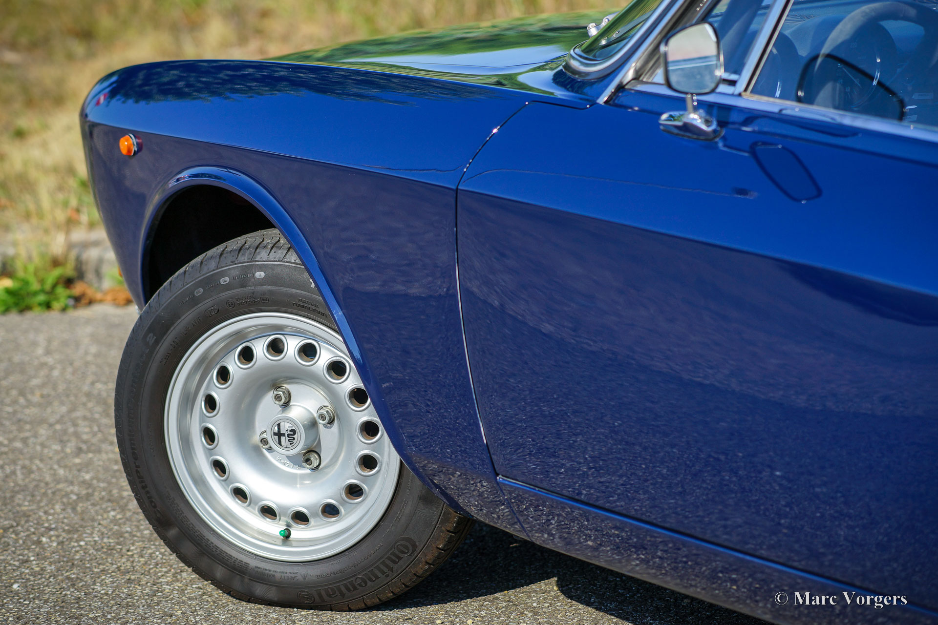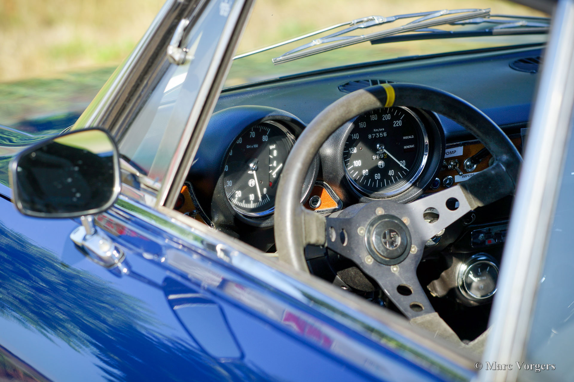 Alfa Romeo GT Junior rally car, year 1971. Colour Blue Hollandaise combined with a black interior. Black Recaro bucket seats and black carpet. This wonderful Alfa Romeo GT Junior left the factory with a 1300 cc engine, the engine was replaced by a more powerful uprated 1750 engine. The Alfa Romeo ‘Nord’ four-cylinder engines were very advanced sports engines in the 1960s, the engines where fully made of aluminium, and they featured twin overhead camshafts. Fitted with double twin choke Weber or Dell Orto carburettors and mated to a five-speed gearbox the alfa Romeo GT models were sporty driver cars! This GT Junior is in a good condition and the car is prepared for historic rally events like the Tulip Rallye. Preparing a classic car properly for historic rally driving is an expensive affair. This car is ready for any adventure. The bodywork shows some corrosion on the left rear end of the sill, this will be repaired before delivery to the new owner. The car comes with a comprehensive service history file. In case you have additional wishes, like the fitment of additional driving lamps at the front, Classic open can take care of this.
