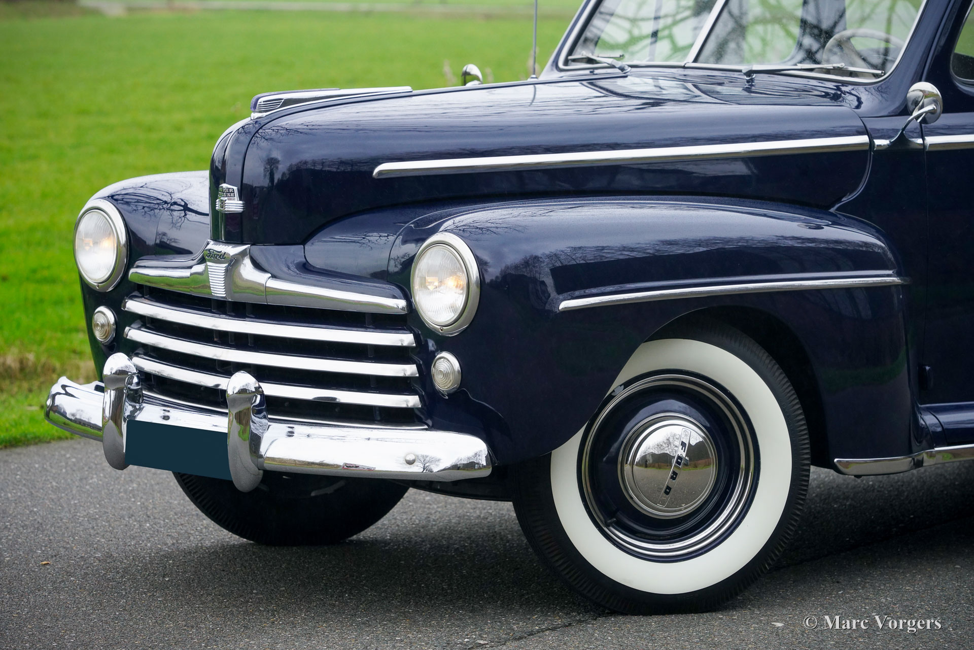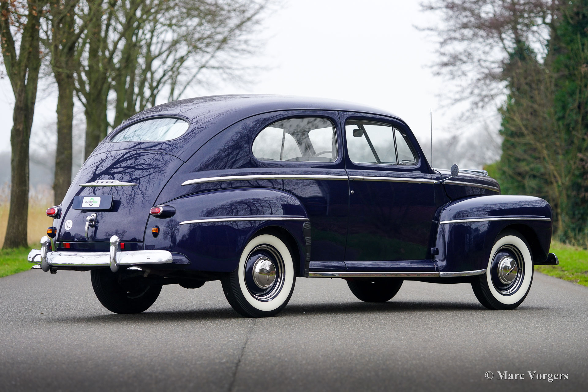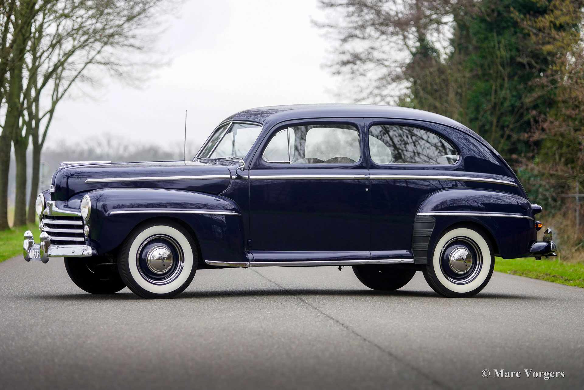 Ford Tudor V8, year 1947. Colour dark blue combined with a grey cloth interior. This magnificent 1940s Ford V8 was sold new in the USA. Fifteen years ago, the automobile was imported from California to the Netherlands. The car was beautifully restored in the USA, this Ford is in a very good and wonderful condition! The car drives perfectly, the 3.6 Litre Ford ‘flathead’ V8 runs beautifully, and the 3-speed manually operated gearbox with steering column shifter works superbly. The Ford has known only one Dutch owner. This ford Tudor V8 shows all the original details. The exterior design is wonderful, and the dashboard is pure art! The automobile shows slight signs of previous use, a patina which complements the almost 80 years of age. Under the bonnet everything looks crisp and clean… almost like new! This is your chance to buy a very special American classic, a car seldomly seen in Europe.