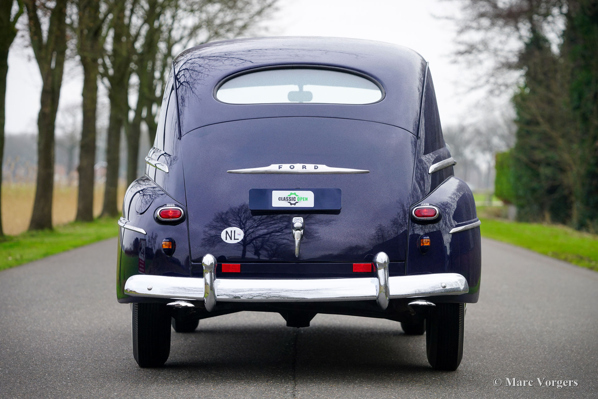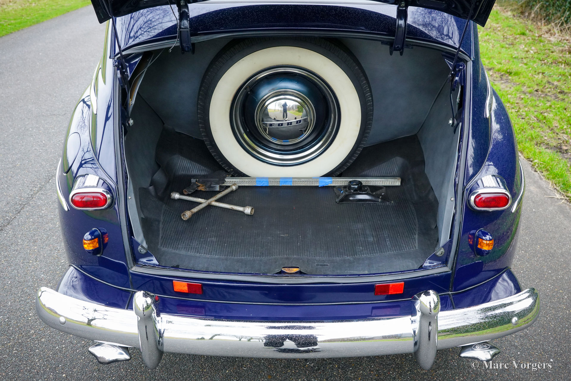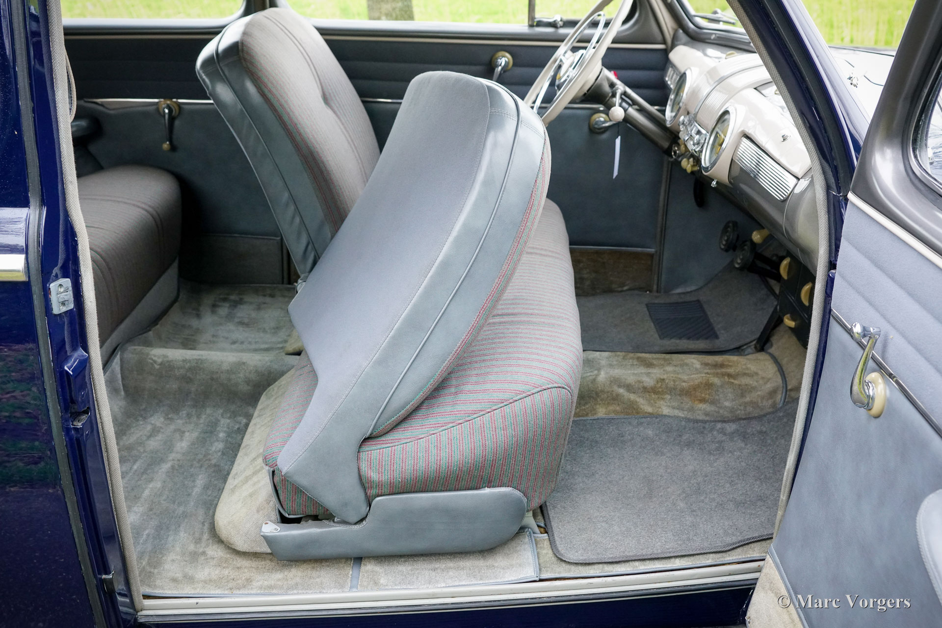 Ford Tudor V8, year 1947. Colour dark blue combined with a grey cloth interior. This magnificent 1940s Ford V8 was sold new in the USA. Fifteen years ago, the automobile was imported from California to the Netherlands. The car was beautifully restored in the USA, this Ford is in a very good and wonderful condition! The car drives perfectly, the 3.6 Litre Ford ‘flathead’ V8 runs beautifully, and the 3-speed manually operated gearbox with steering column shifter works superbly. The Ford has known only one Dutch owner. This ford Tudor V8 shows all the original details. The exterior design is wonderful, and the dashboard is pure art! The automobile shows slight signs of previous use, a patina which complements the almost 80 years of age. Under the bonnet everything looks crisp and clean… almost like new! This is your chance to buy a very special American classic, a car seldomly seen in Europe.