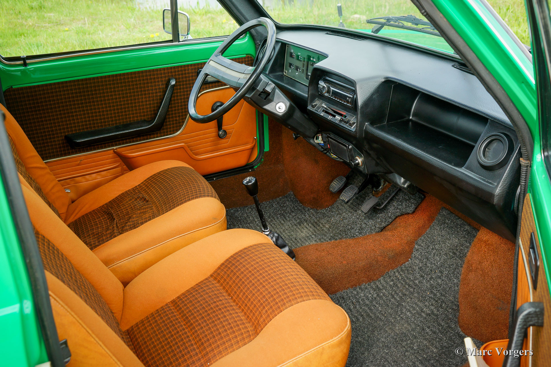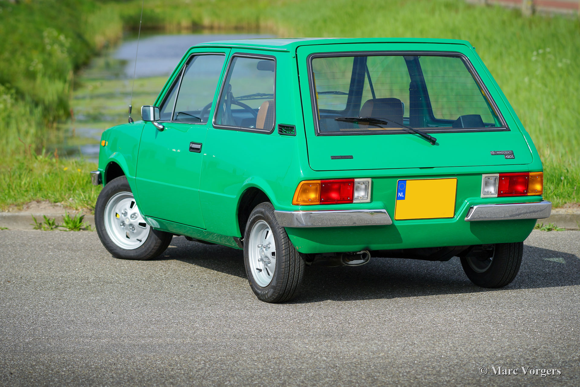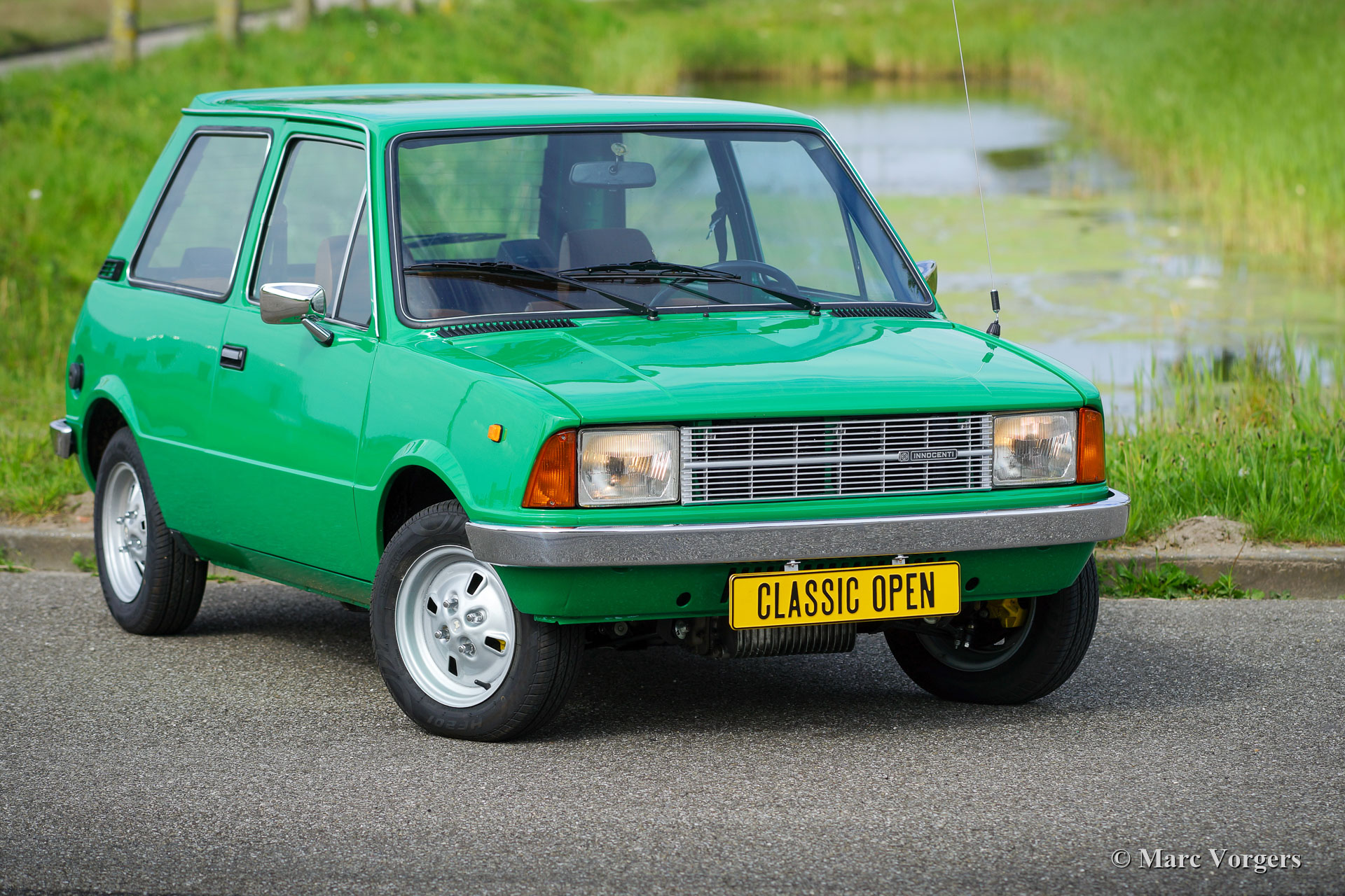 Innocenti 120 L, year 1979. Colour vivid green combined with a brown / cognac cloth interior with grey protective floor mats. This fabulous Innocenti 120 L was sold new in the Netherlands. In recent years the car was extensively restored to its former glory for an Innocenti enthusiast. The work was done with eye for factory originality. The excellent original interior has been preserved, only the driver’s seat shows some wrinkles from 43 years of age. Wherever you look, this Innocenti is in an excellent condition! The bodywork shows a perfect panel fit, superb paintwork, and all the original details! Under the bonnet everything looks like new, one can imagine that the restoration must have cost a small fortune… These cars are rare, especially in excellent rust free, restored, and overhauled condition. The Innocenti 120 was designed by the legendary car stylist Bertone on the floor section of the also legendary British ‘BMC’ Mini. One can say that this car combines the best of both worlds and can be seen as the ultimate Mini. Regretfully the cars were (like the British Mini) prone to rust severely. About 220.000 cars of this type were built and only few survive. This wonderful example survived and was brought back to its former glory because of a huge investment in time and money by a true enthusiast. The asking price may seem high but does not cover the costs of the restoration and rebuilt. This Innocenti 120 L drives like a classic British Mini with 1275 cc engine combined with a stylish Italian interior and exterior. A gorgeous time capsule which honours the design genius of the classic Mini and of master designer Bertone.
