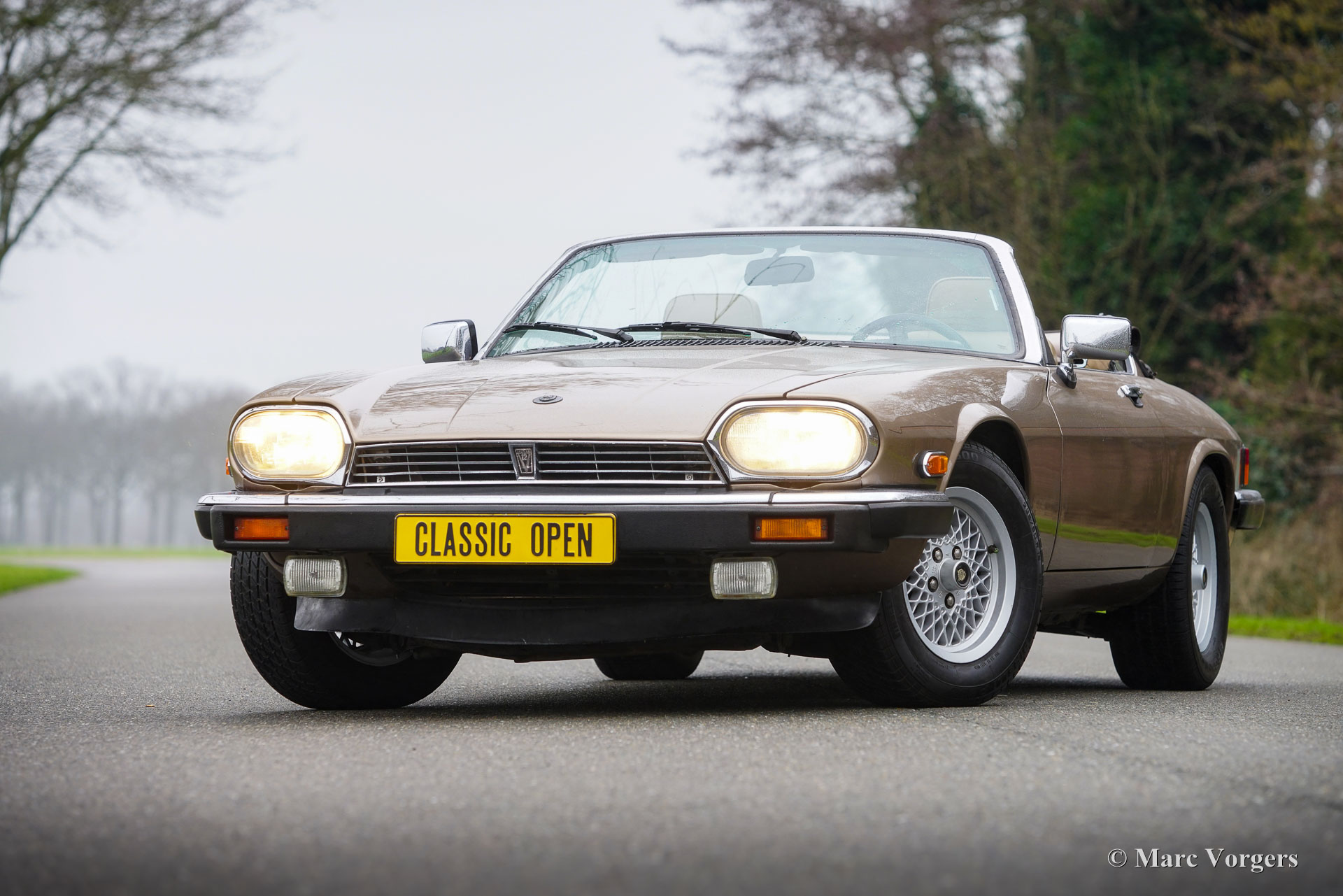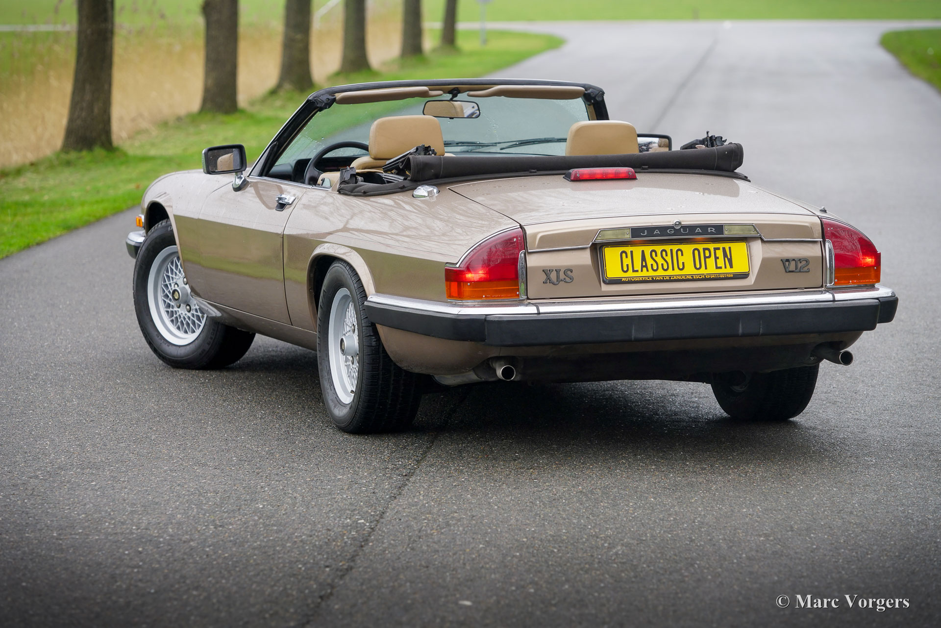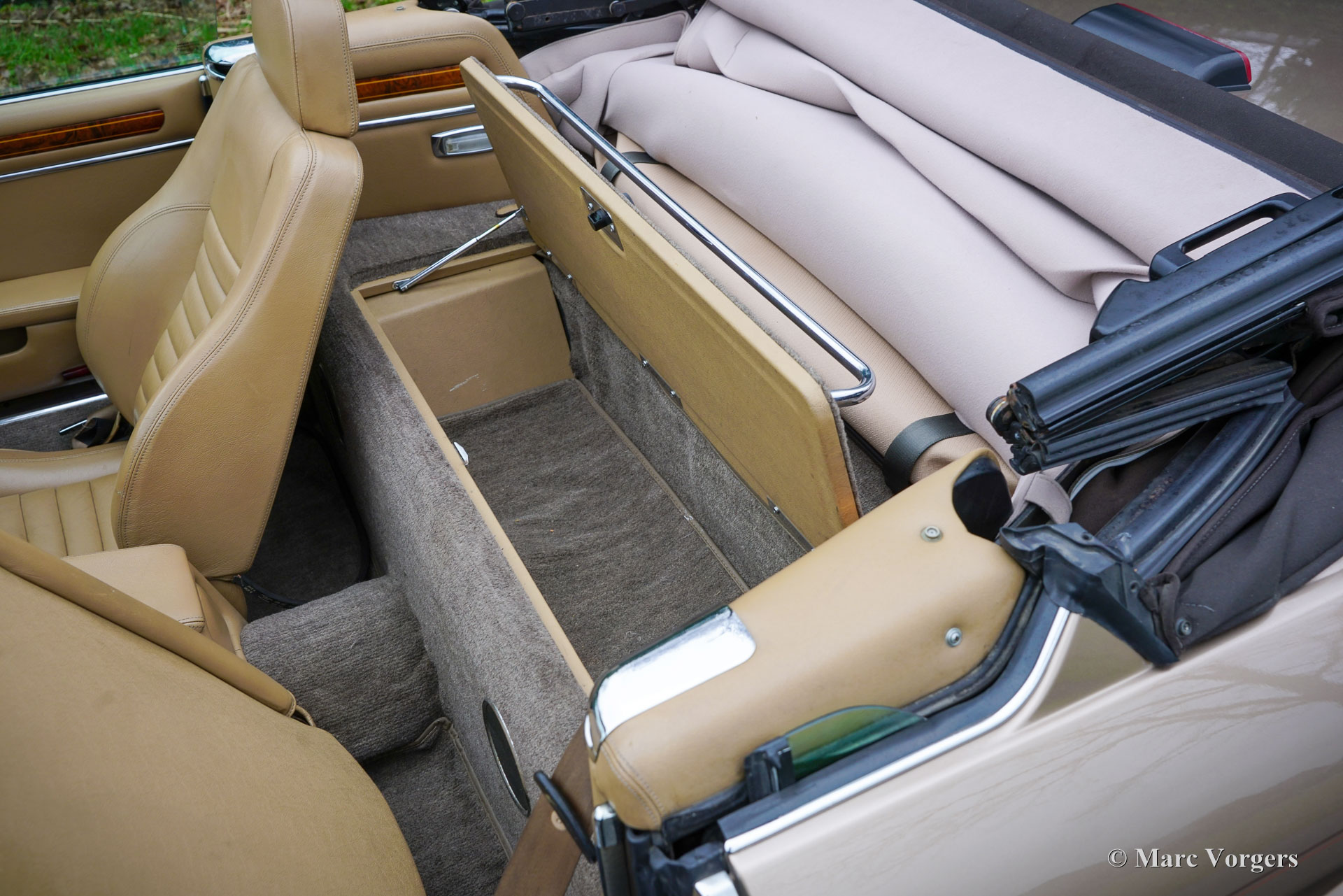 Jaguar XJS V12 Convertible, year 1990. Colour light brown metallic combined with a beige (tan) leather interior, brown carpet, and beige protective mats. Dark brown hood. This majestic Jaguar XJS Convertible was sold new in the USA. A few years ago, the car was imported to the Netherlands. From new the automobile has driven only 96.000 miles. This fine Jaguar is in a very good condition and completely rust free! The car drives perfectly, the V12 engine runs smooth and powerful, the gearbox shifts very well, and the power steering is a sheer delight. Recently, the XJS has received extensive service, amongst others the steering gear and the brakes were overhauled, and the valve clearance was adjusted. This Jaguar XJS convertible is a very original car, the car shows slight signs of previous use, and the original interior is very nice and clean for its age! The electric-hydraulic operated hood works flawlessly. This Jaguar XJS Convertible is a very desirable classic open top Gran Turismo!