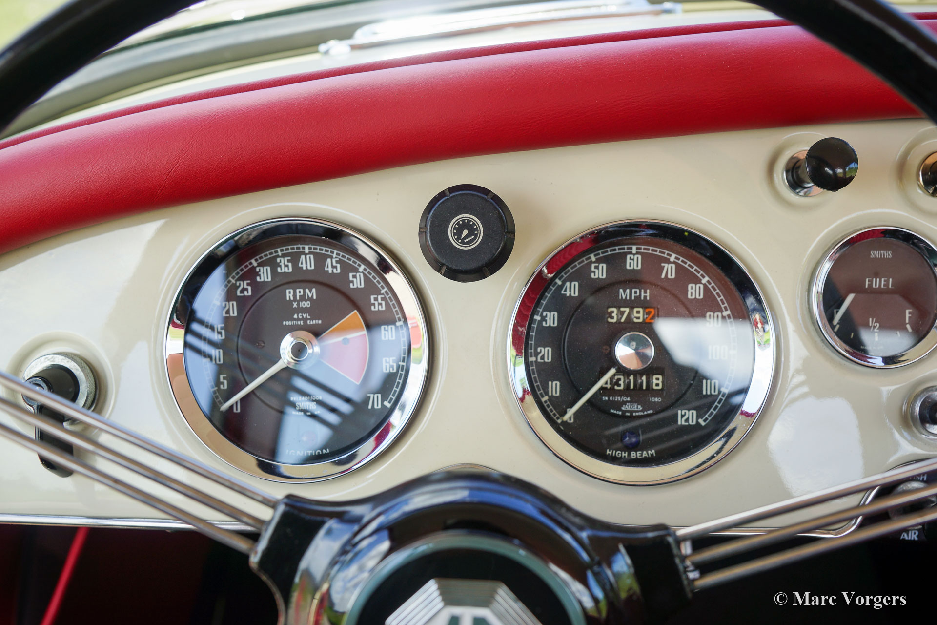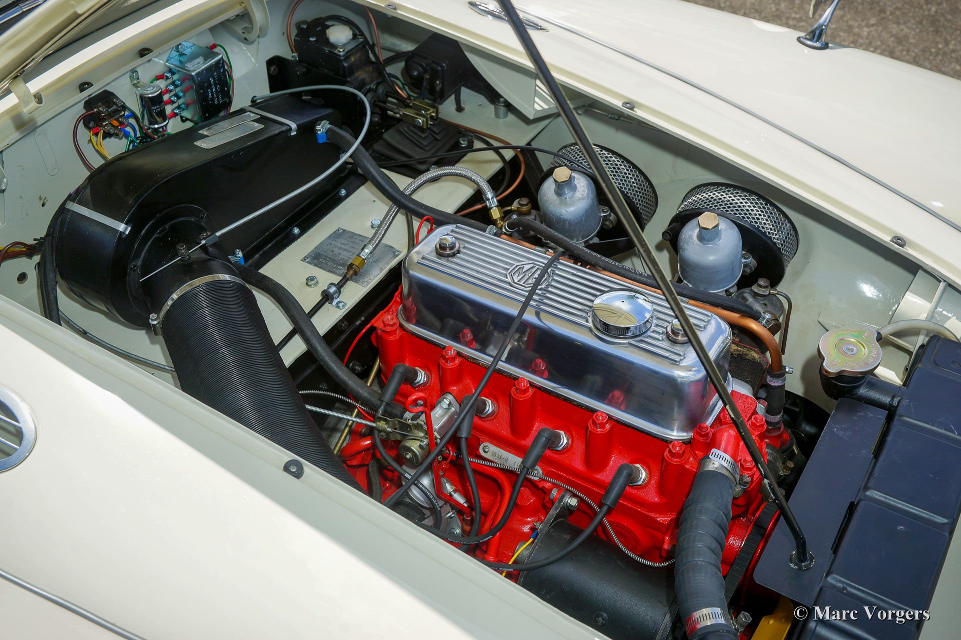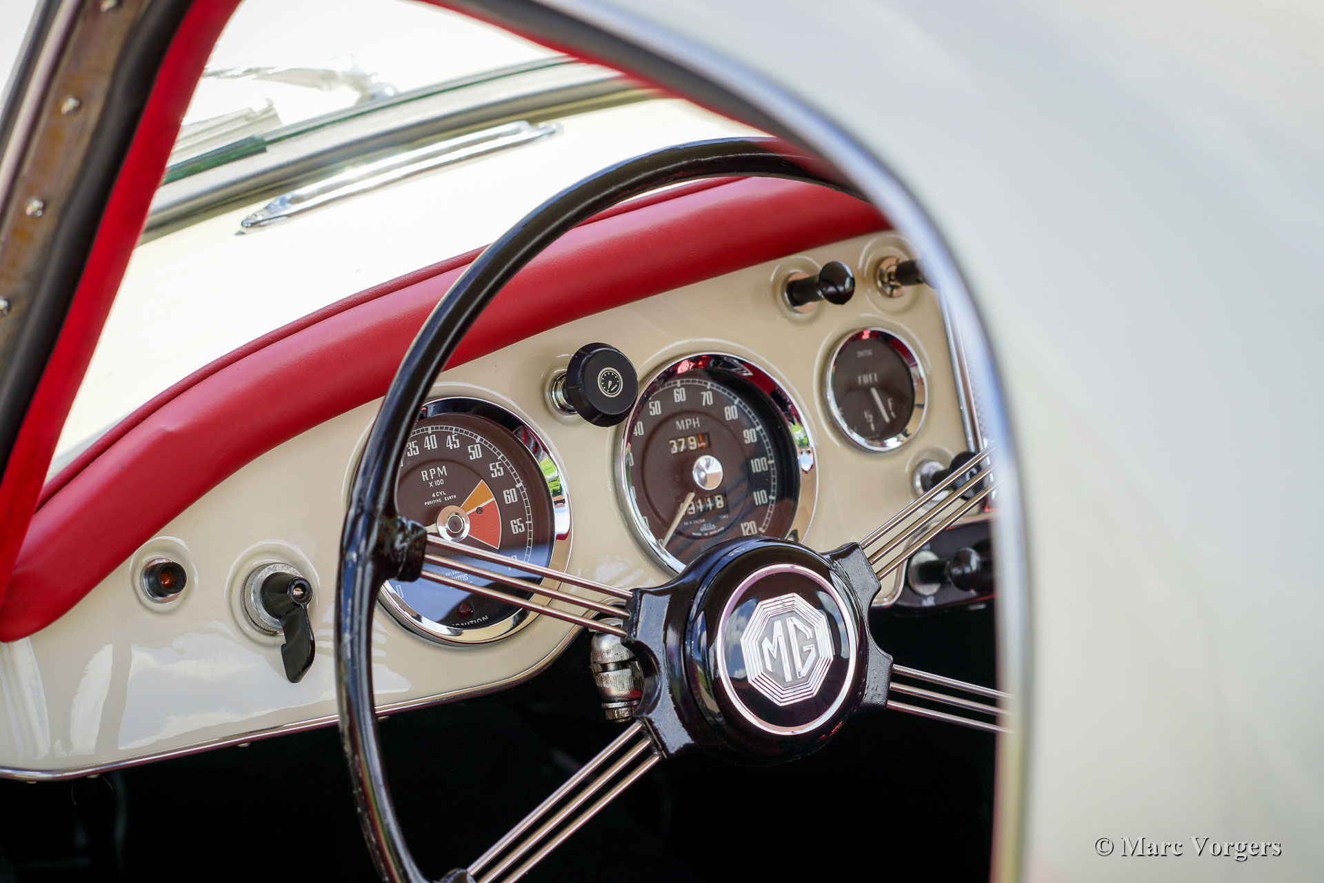 The year 1955 saw the introduction of the MGA. With this design the MG broke new grounds. After its predecessors MG TD and MG TF, which were largely based on the pre-war MG TB, it was a roadster with a very modern sporty design. Like its predecessors, the MGA was a great success and, like before, the greater part was sold in America. Until 1959, the MGA was equipped with a 1459 cc four-cylinder engine. From that year, the car was fitted with a 1588 cc four-cylinder. A 1622 cc four-cylinder engine replaced the 1588 cc. engine in 1961. The early MGA versions had very good drum brakes until 1959, but after that year, the MG A was equipped with disc brakes on the front wheels. The year 1962 saw the production of the MGA, the A 1600 Mk II. The MGB replaced this very popular British sports car, and was to develop the success of the MG A even further.