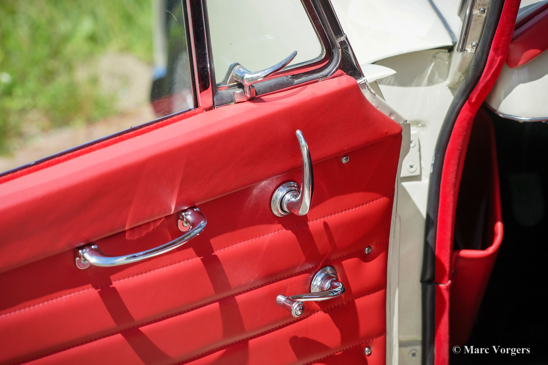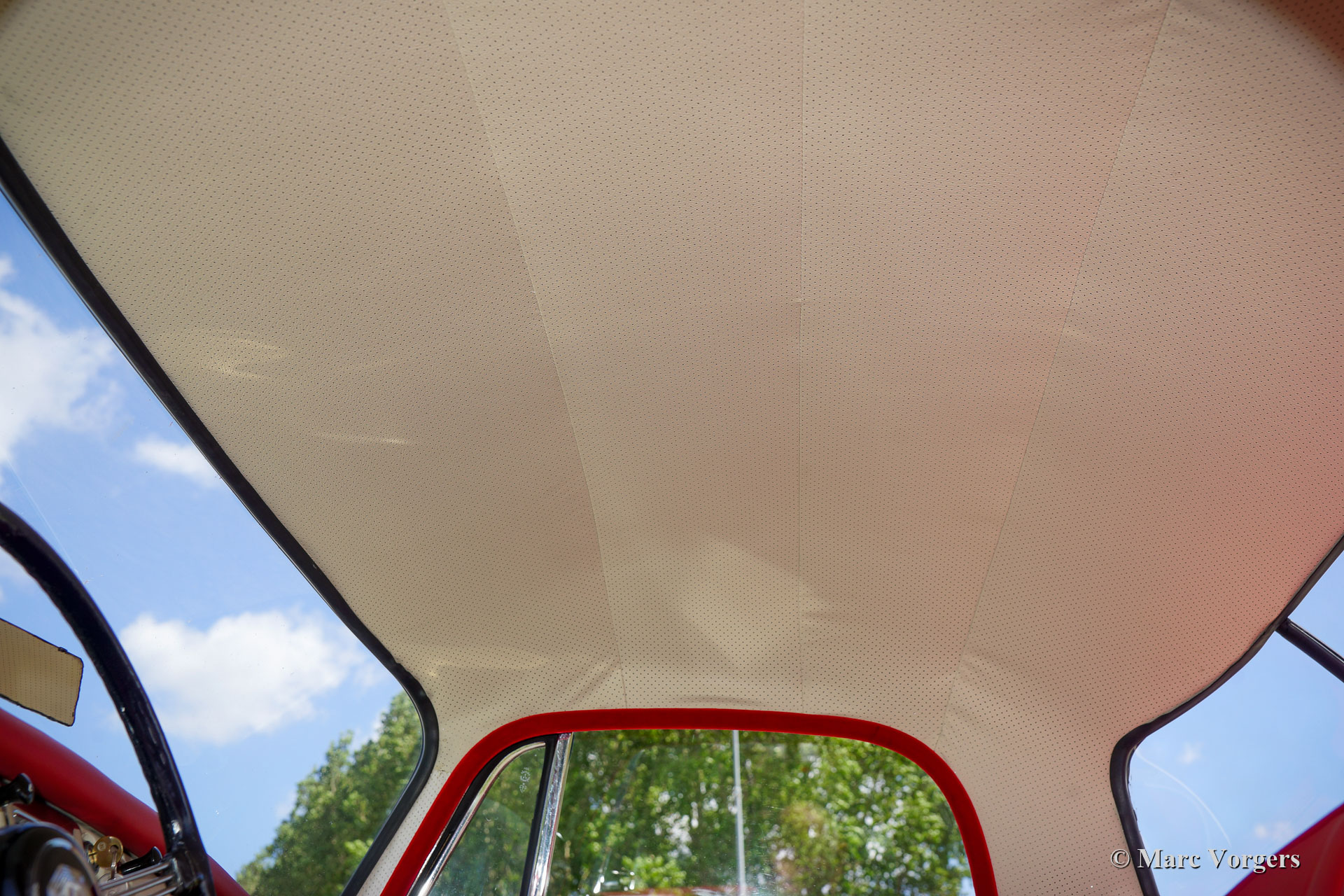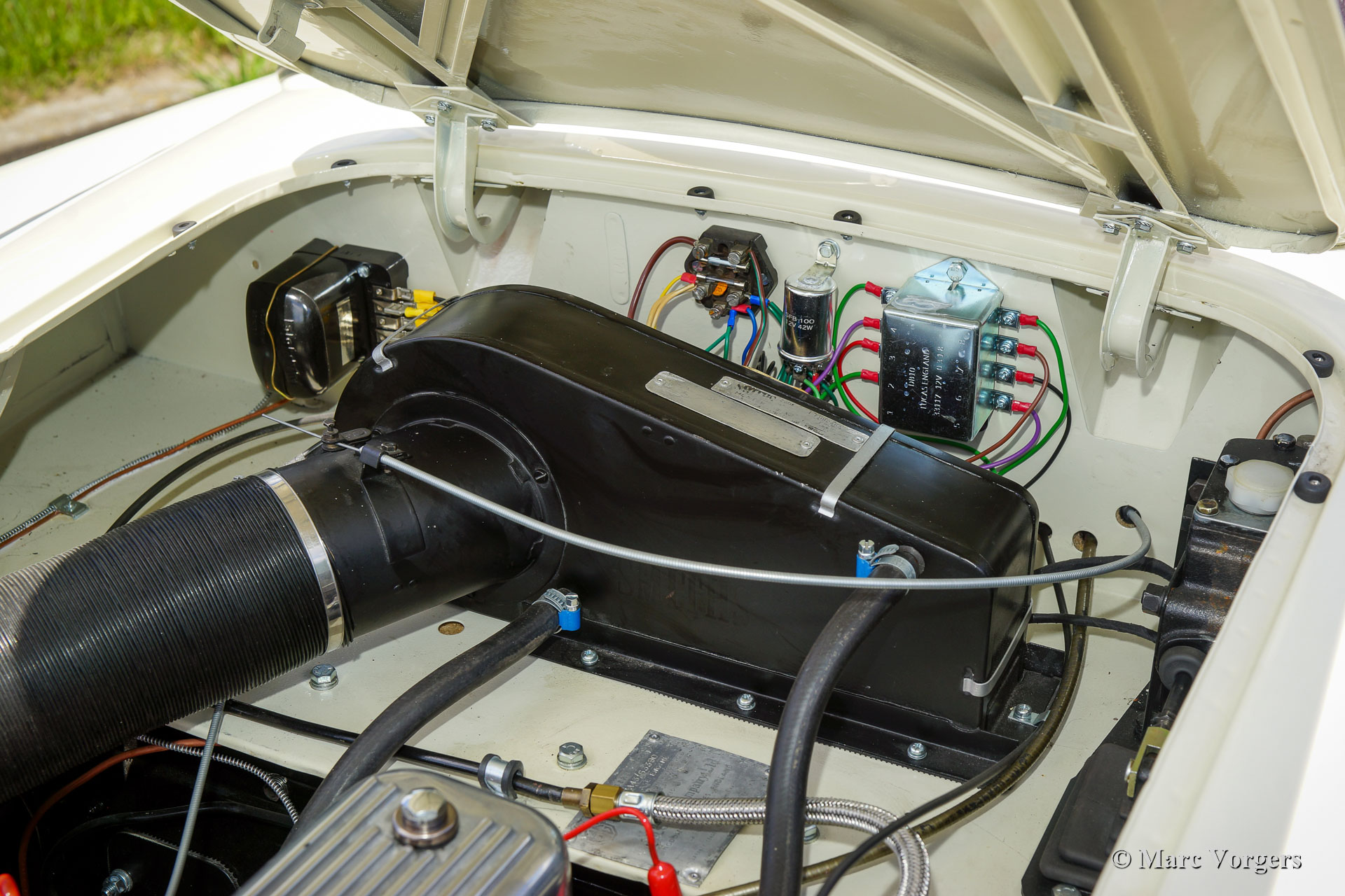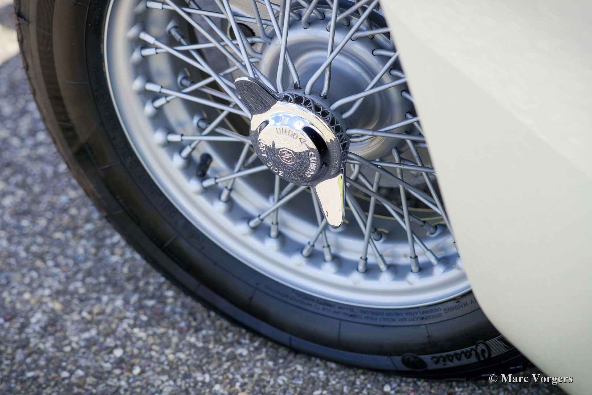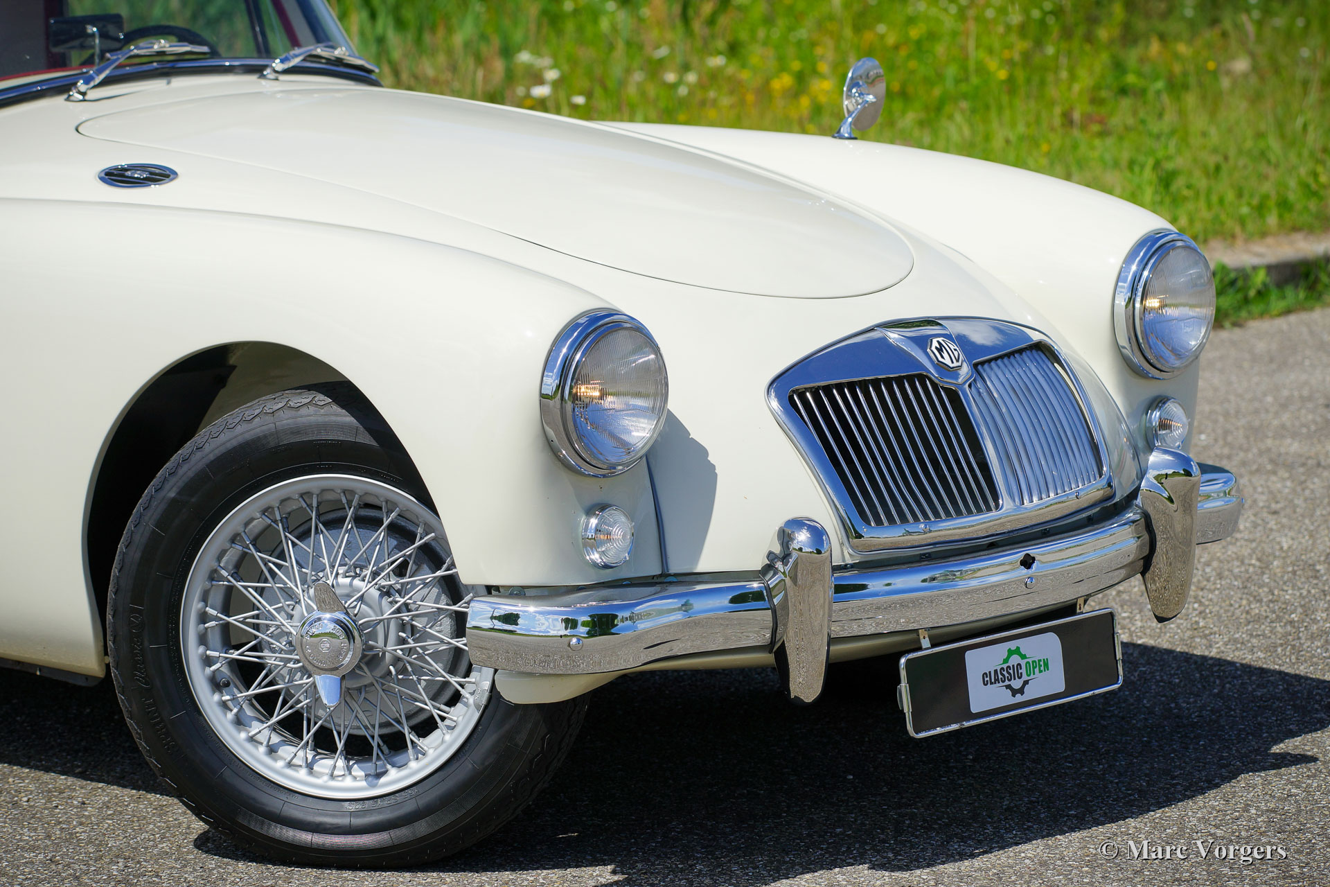 MG MGA 1500 coupe, year 1959. Colour Old English White combined with a red leather interior trimmed with black wool carpet. This extremely handsome MGA 1500 coupe was fully restored to perfection, the automobile is a better than new concours condition! The MGA 1500 coupe is quite a rare car compared to it roadster sister model which enjoyed a great popularity in the USA. Only 6200 MGA 1500 coupes were built and most of them found a proud owner in the UK and in the rest of Europe. This gorgeous MGA coupe shows stunning original details, you cannot stop looking at all its wonderful features and lines. The automobile is fitted with silver painted wire wheels, chrome ‘knock-on’ wheel nuts and an aluminium rocker cover. This is a rare and desirable MG MGA 1500 coupe in top condition!