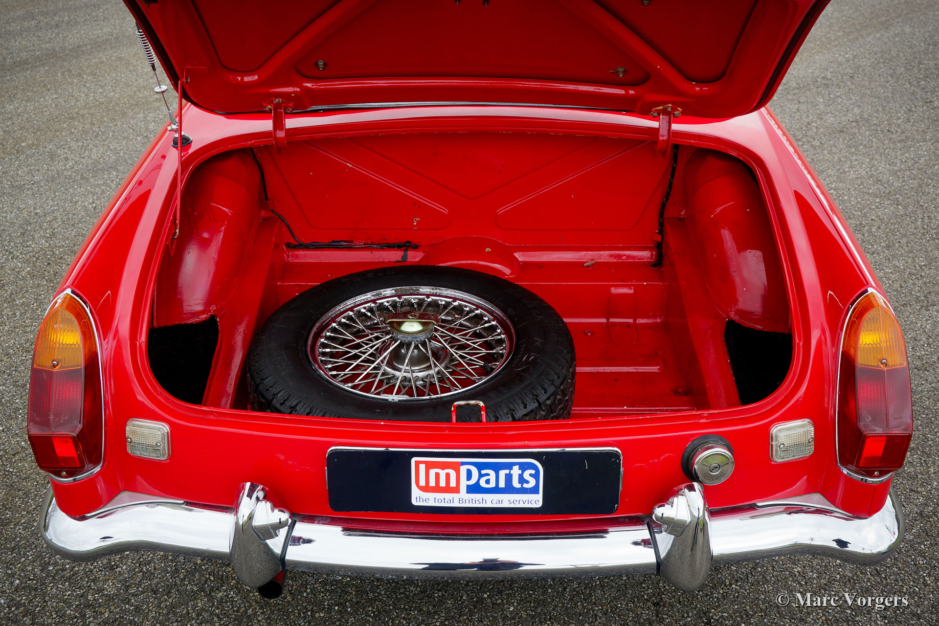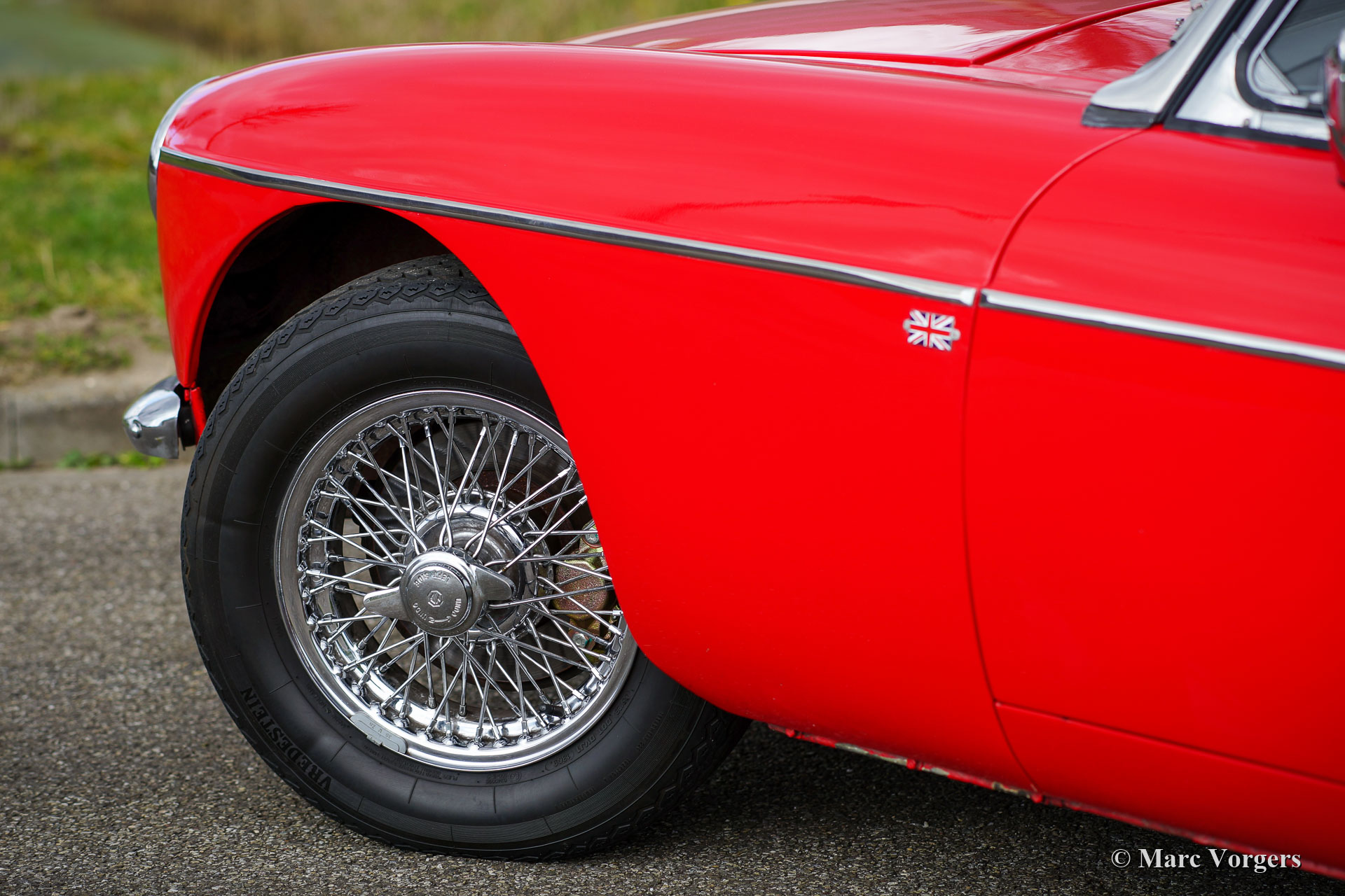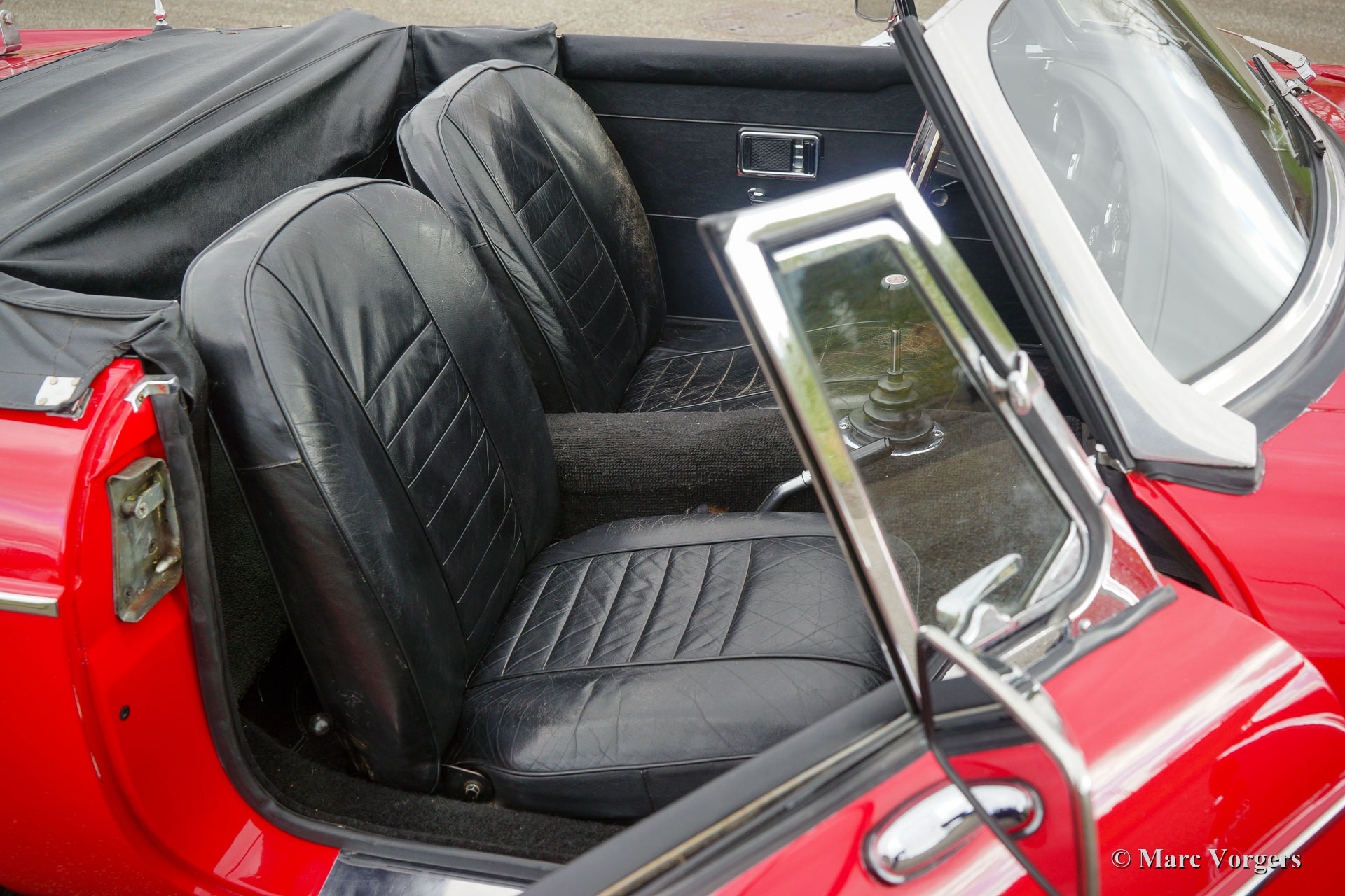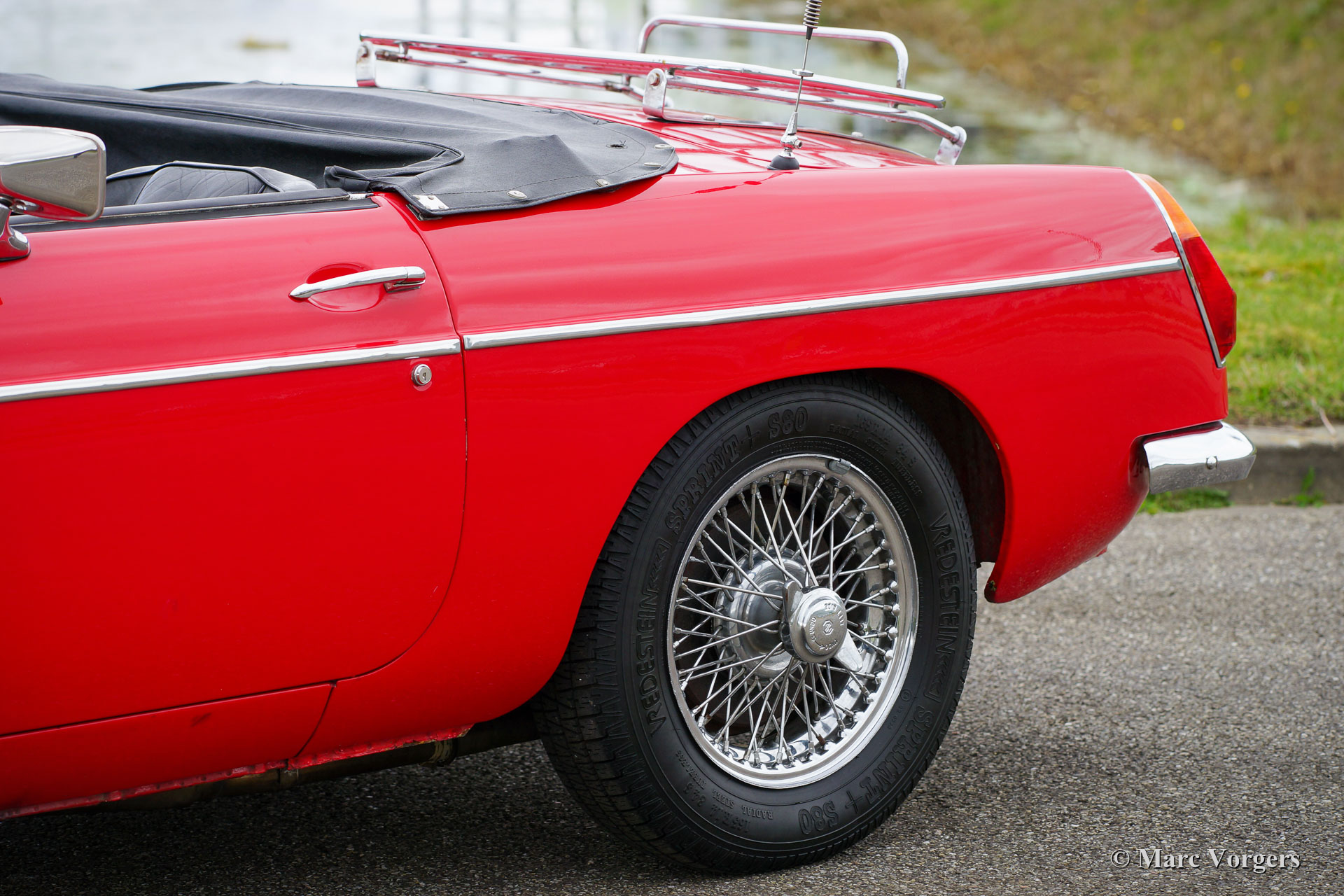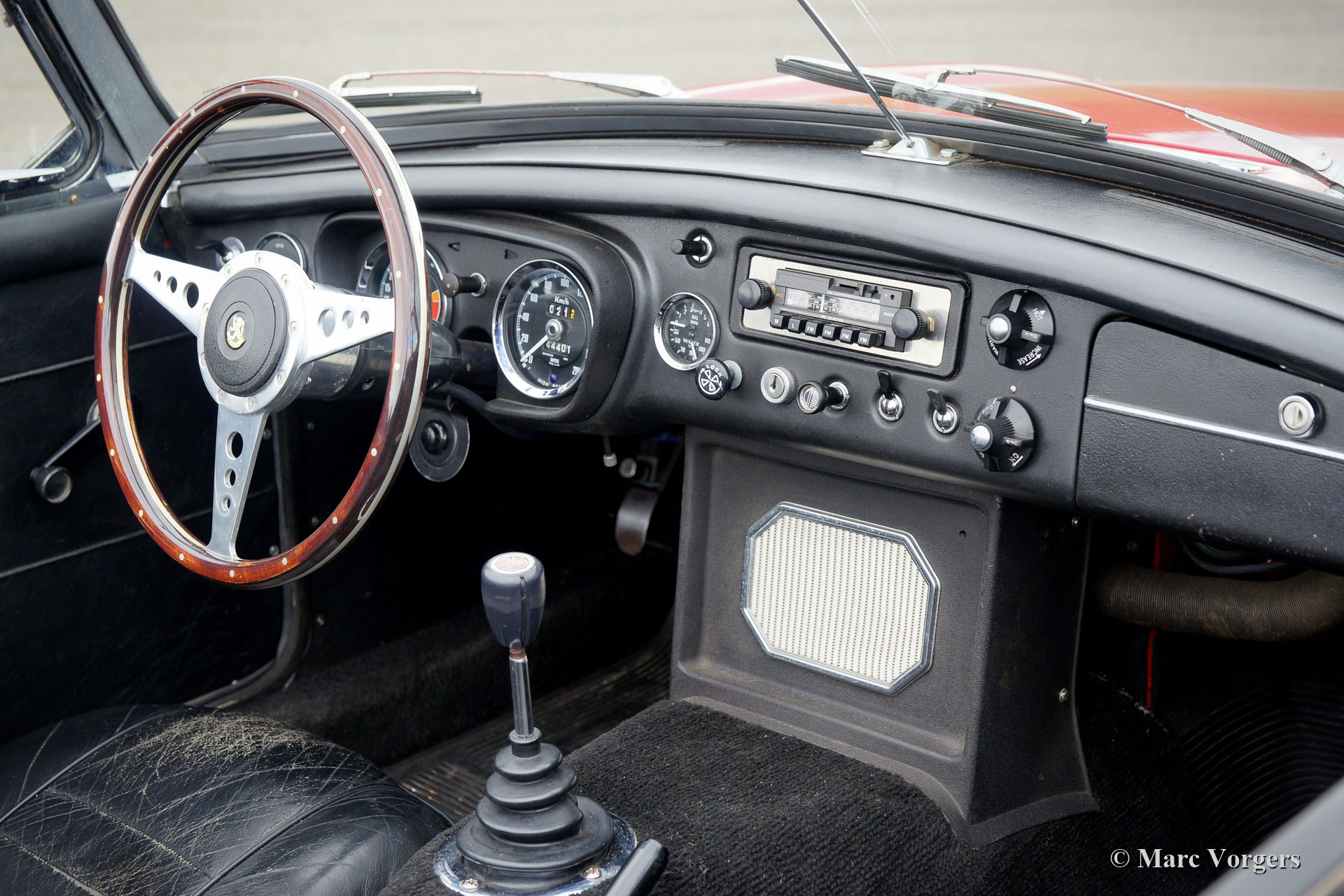 MG MGB roadster, year 1970. Colour red combined with a black leather interior and black carpet. This beautiful MGB roadster was sold new in the Netherlands. It is the sought-after model with the steel dashboard and an odometer with km/h scale. In the past the car was restored, and an overhauled 1800 cc engine was fitted. This MGB is in good condition and it was always serviced punctually. The car shows normal signs of previous use and it drives delightfully! The car features some desirable options like chrome wire wheels, overdrive, leather upholstery, a chrome baggage rack, a sports steering wheel with a wood rim and two door mounted rear view mirrors. Furthermore, the car is fitted with electronic ignition, an oil-cooler, and an electric cooling fan. This MGB roadster is ready for a fantastic summer!