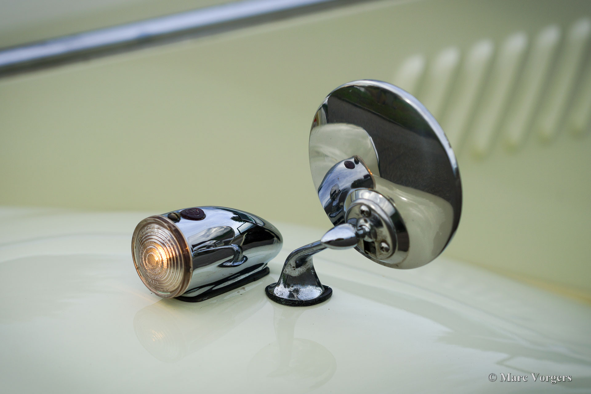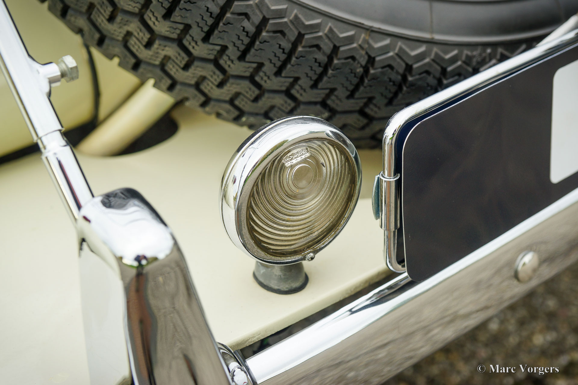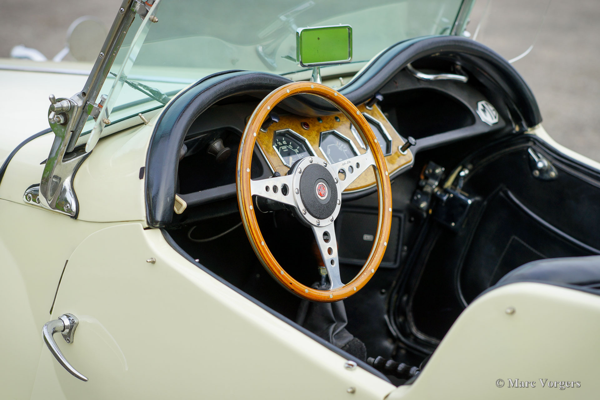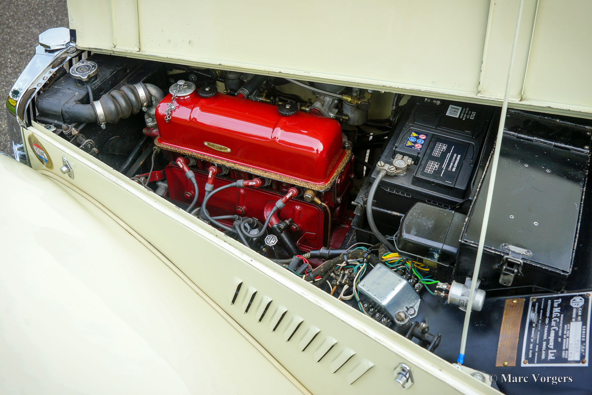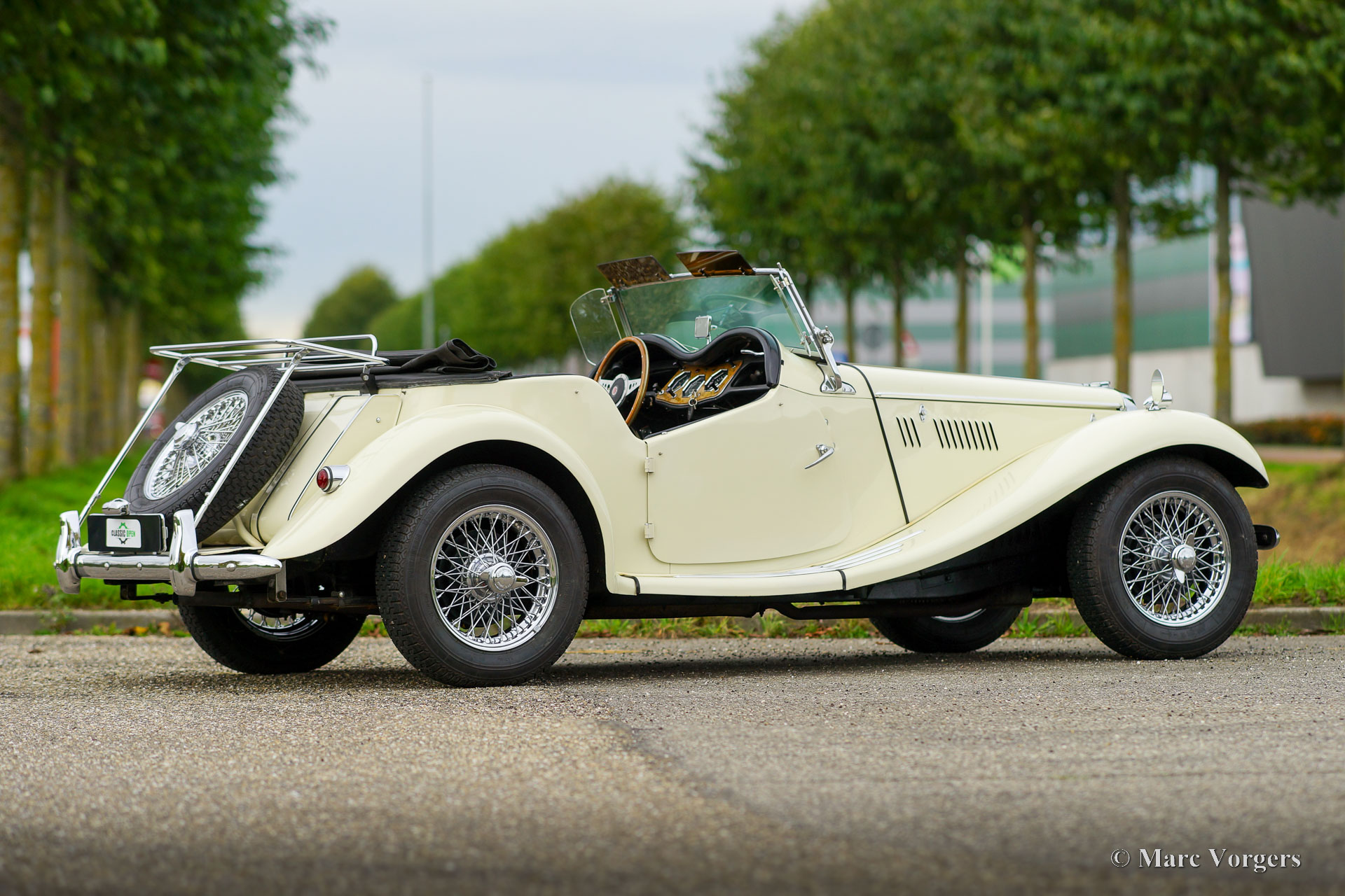 MG TF 1250, year 1954. Colour Old English White combined with a black leatherette interior and black carpet. This wonderful MG TF 1250 was sold new in the United States. The automobile was restored in the past, the car is in a very good condition, and it drives delightfully. The MG TF is the last incarnation of the legendary MG T series which started with the pre-war MG TA. The MG TF features a wider body with more fluently flared mudguards, a slanted radiator, integrated head lamps and a brand-new designed dashboard with octagonal shaped gauges in the centre. The MG TF is powered by the 1250 cc four-cylinder XPAG engine which transmits its power through a 5-speed manually operated gearbox which was added later. This stylish British sports car is fitted with a black vinyl soft top, side-screens with black frames and chrome trim, and a black tonneau cover. Furthermore, the car features chrome wire wheels, a chrome baggage rack, a chrome badge-bar, a Lucas fog lamp, a period reversing lamp and wind wings (deflectors) on the sides of the windscreen frame. This is a delightful 1950s British sports car, ready to be enjoyed by a new proud owner.