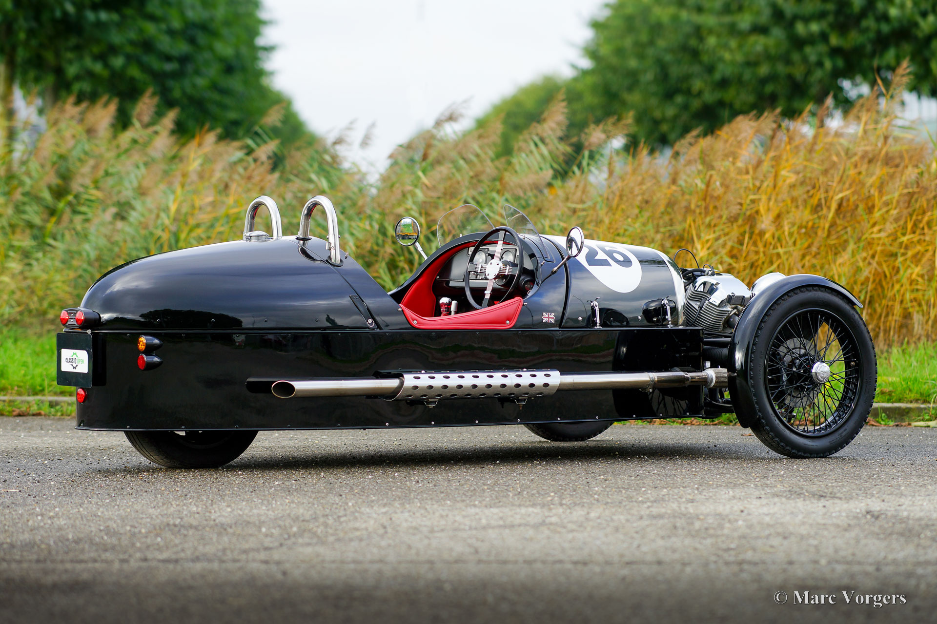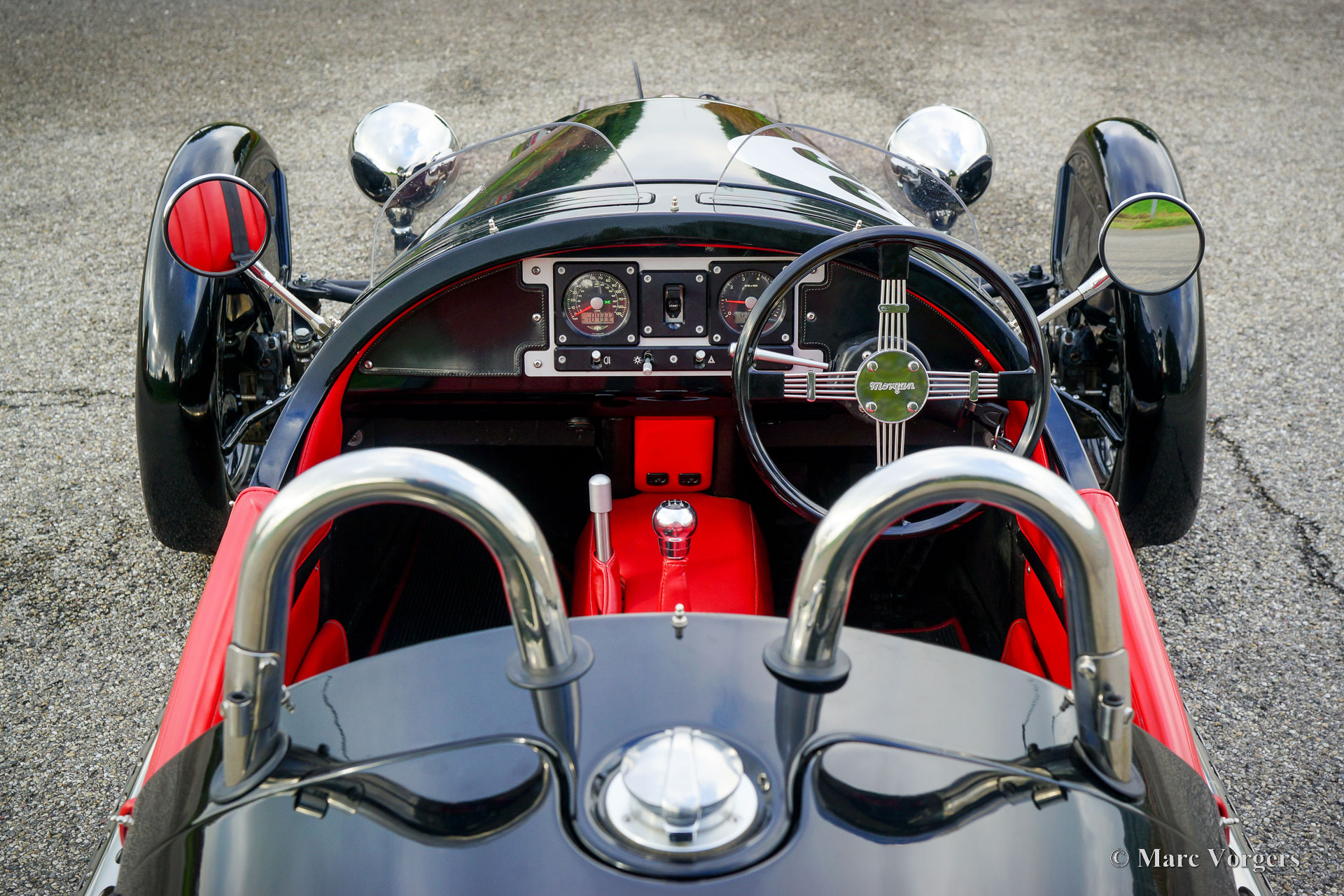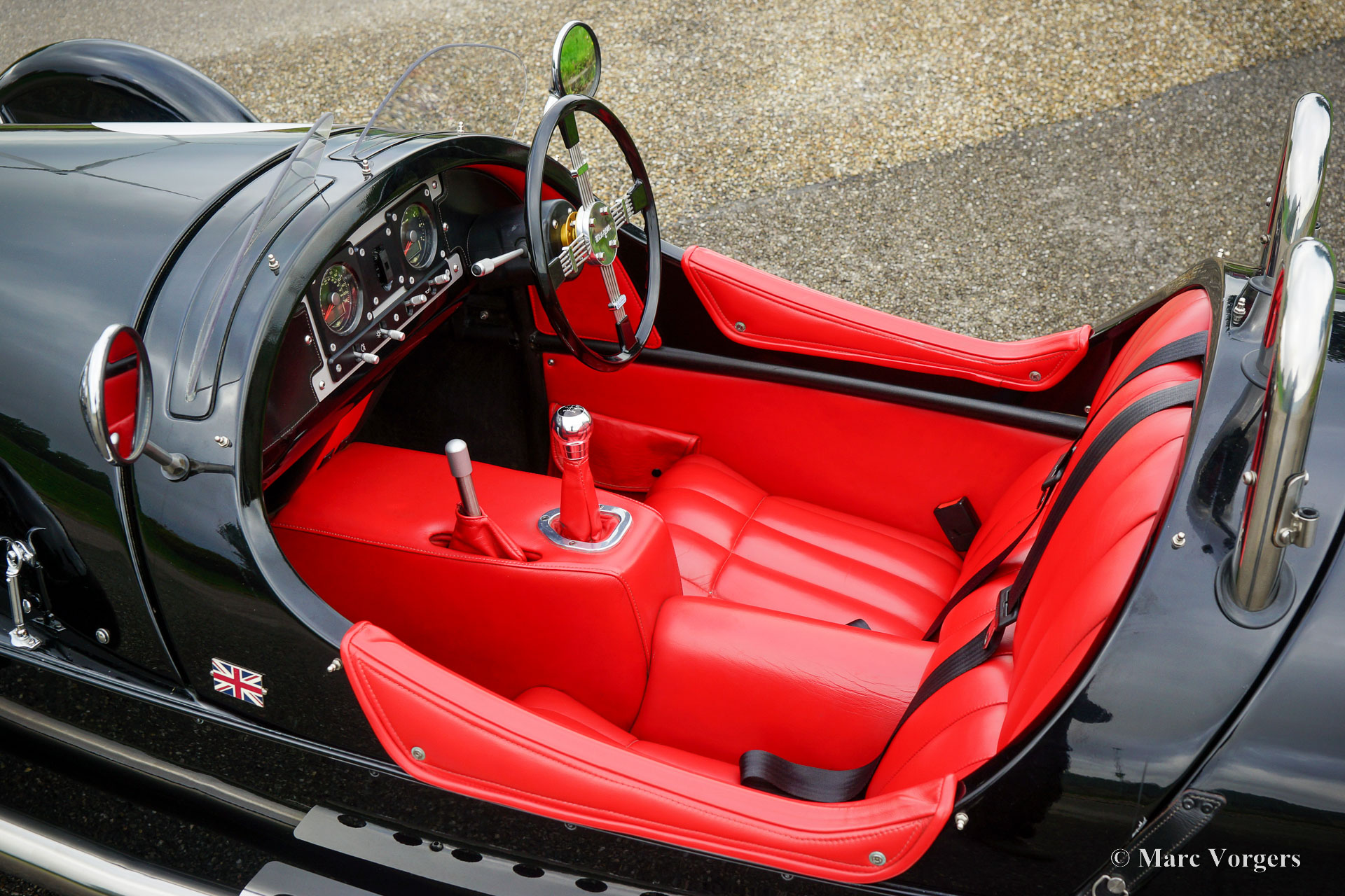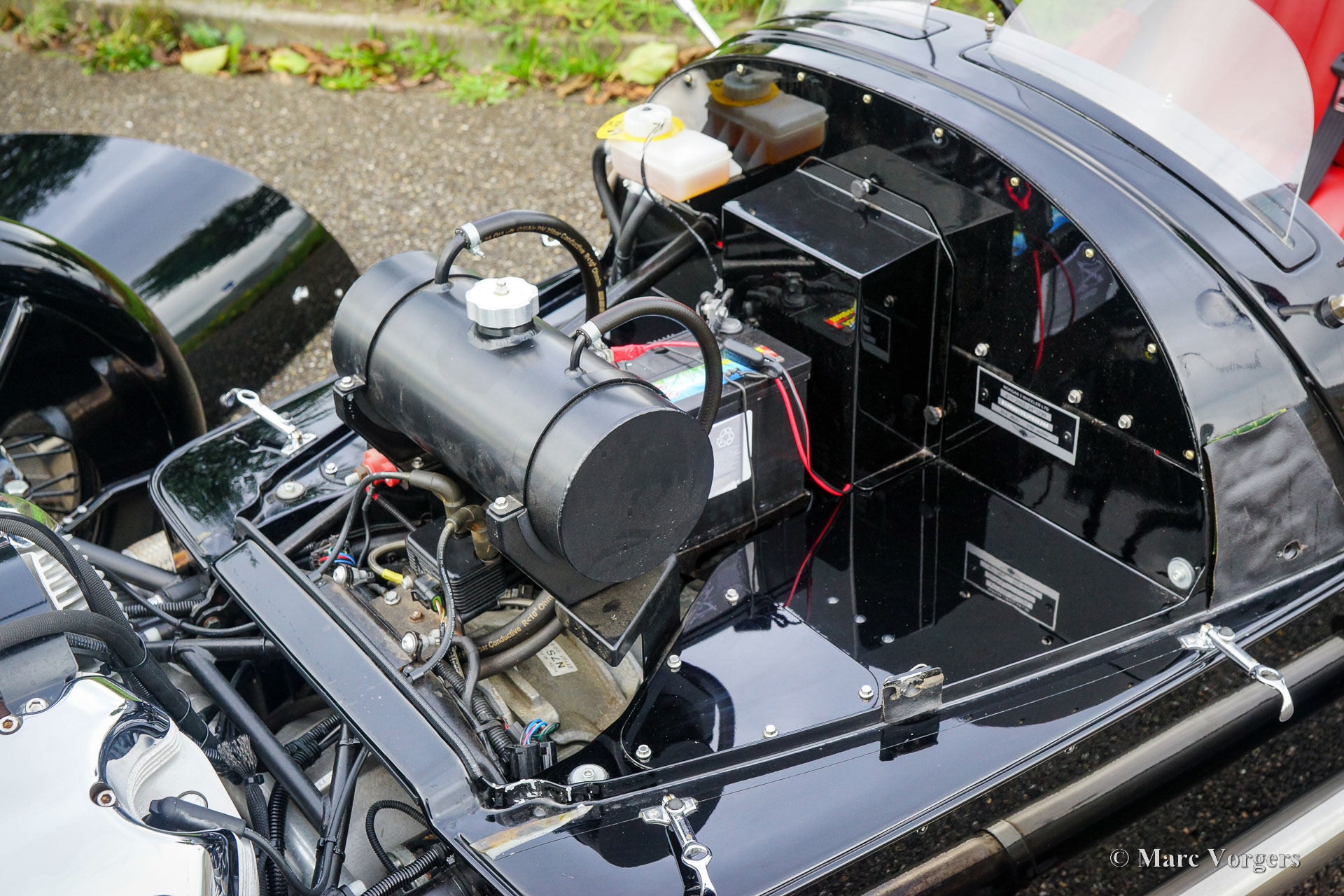 Morgan 3 wheeler, year 2012. Colour black combined with a red leather interior. This fantastic Morgan model was built in the Spirit of the Morgan 3 wheelers from the 1920’ and 1930s. The ‘tribute’ model was built from 2011 until 2022. Being very light with only 525 kilogrammes, the combination with a 82 bhp V-twin engine guarantees a spectacular driving experience. An English First World War fighter pilot said that driving his Morgan 3 wheeler was the closest experience to flying without leaving the ground! This Morgan 3 wheeler is the EURO 3 version fitted with the 82 bhp S&S four stroke V-twin engine mated to a 5-speed gearbox. The 3 wheeler is in an excellent condition and the vehicle has driven 8935 miles from new. The vehicle is fitted with black painted wire wheels, vented disc brakes, a removable steering wheel for easy access, chrome roll bars behind the seats, and a black tonneau cover. The wonderfully designed dashboard, and the small aero screens give one the impression to fly an aeroplane. The engine is started with a centrally fitted starter button… The vibrations and the fantastic exhaust note sharpen your senses for what you are about to experience… This is a very desirable fun machine and a collector’s item, we cannot think of anything on wheels offering more legal driving fun on the open road!