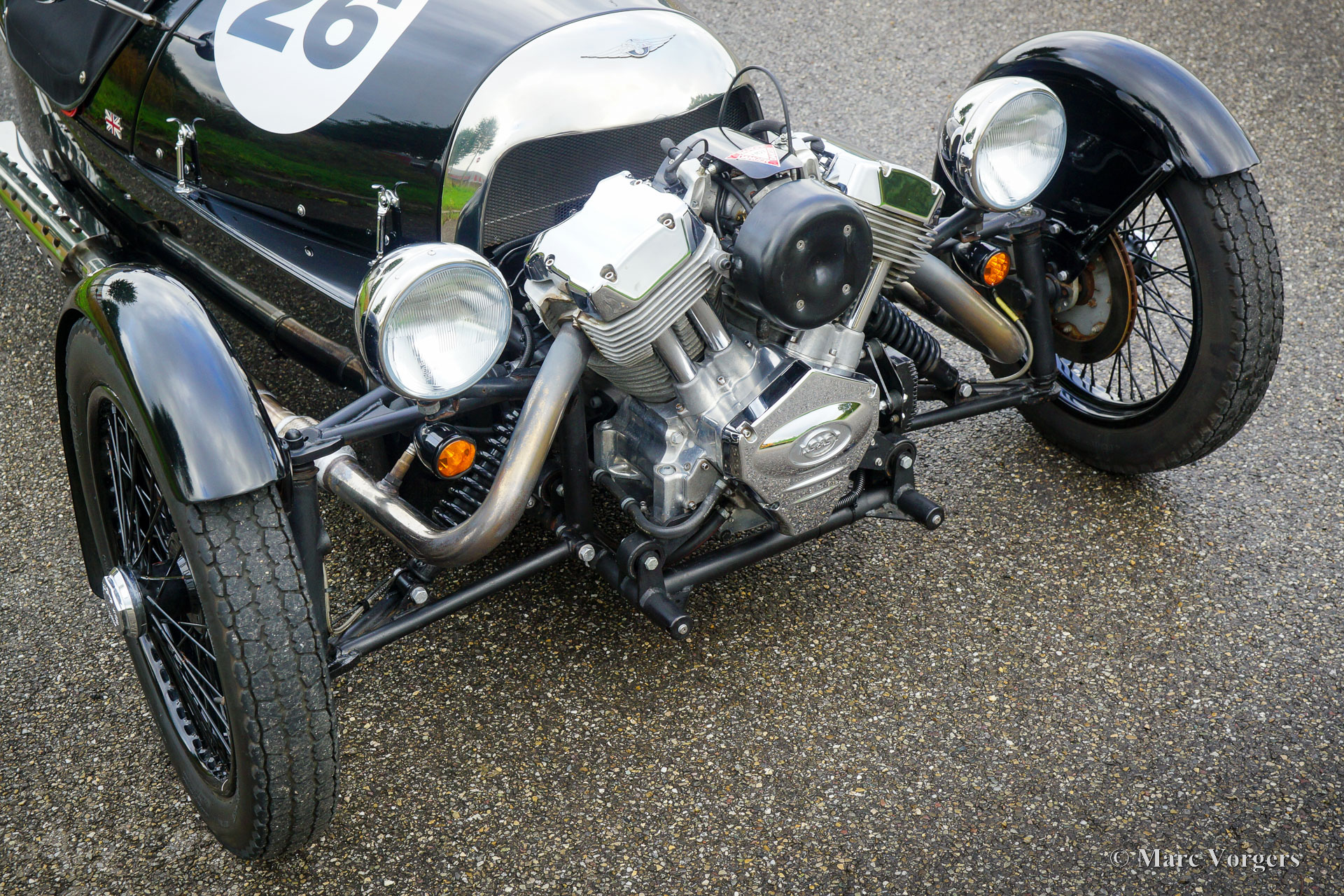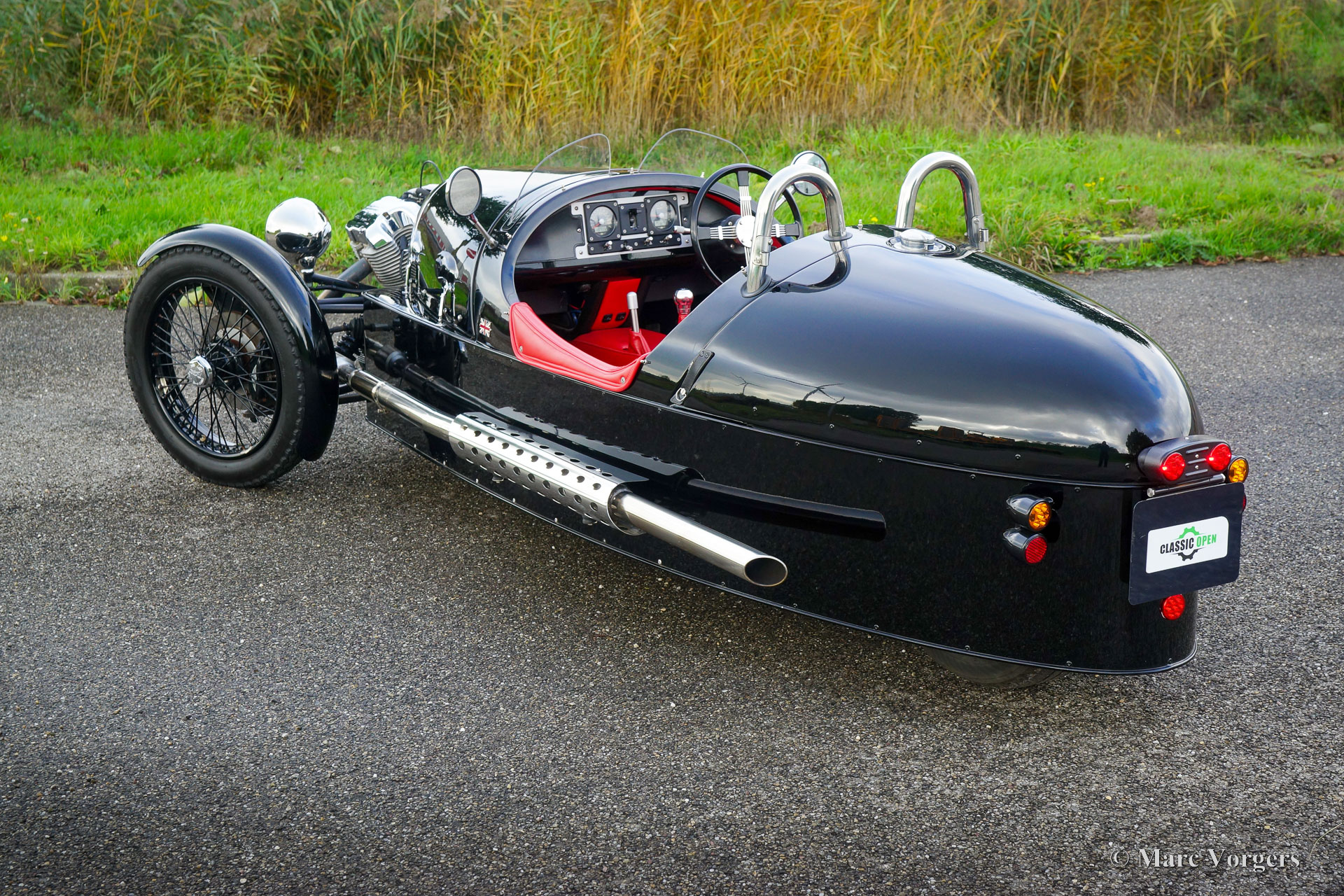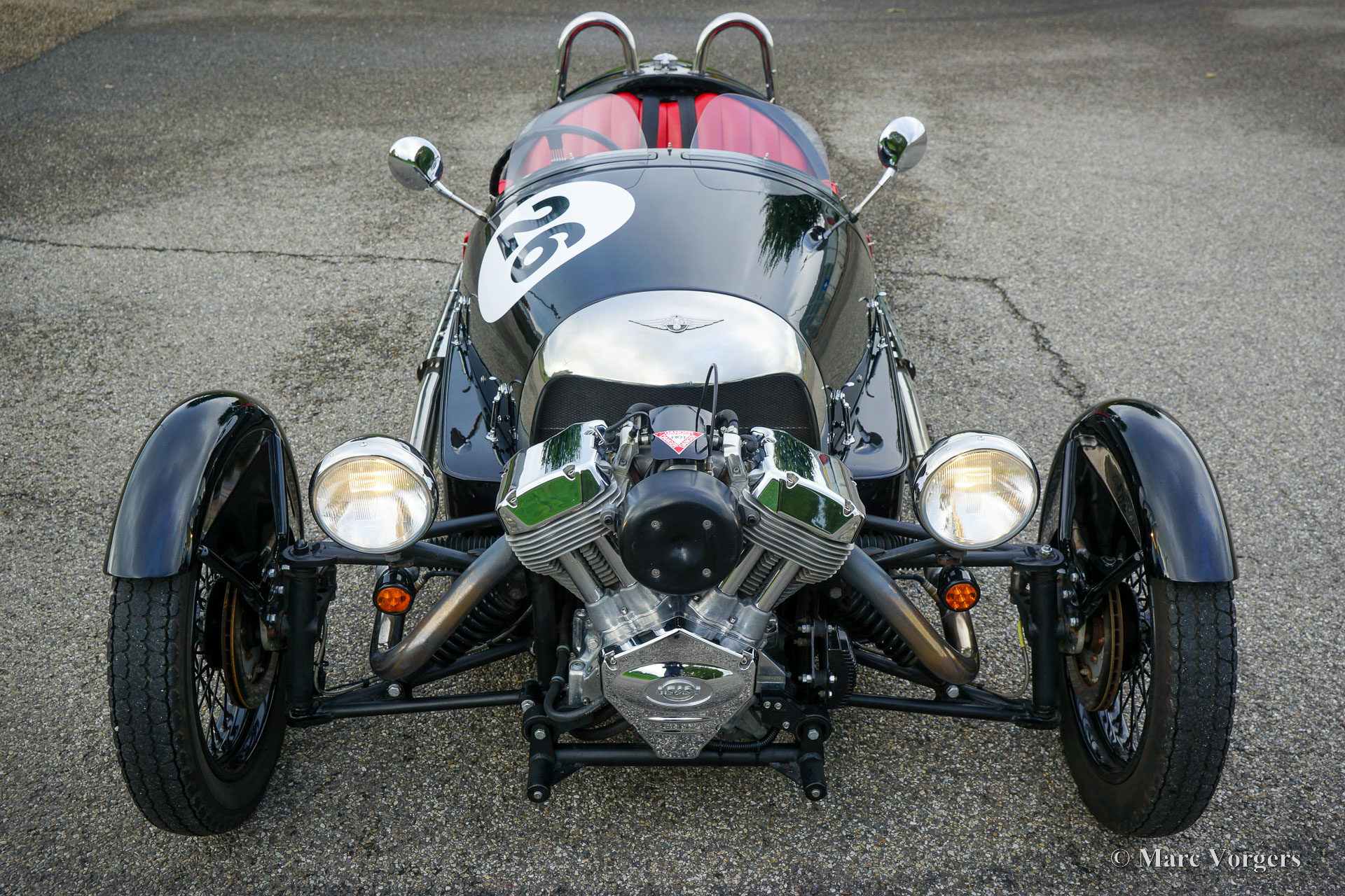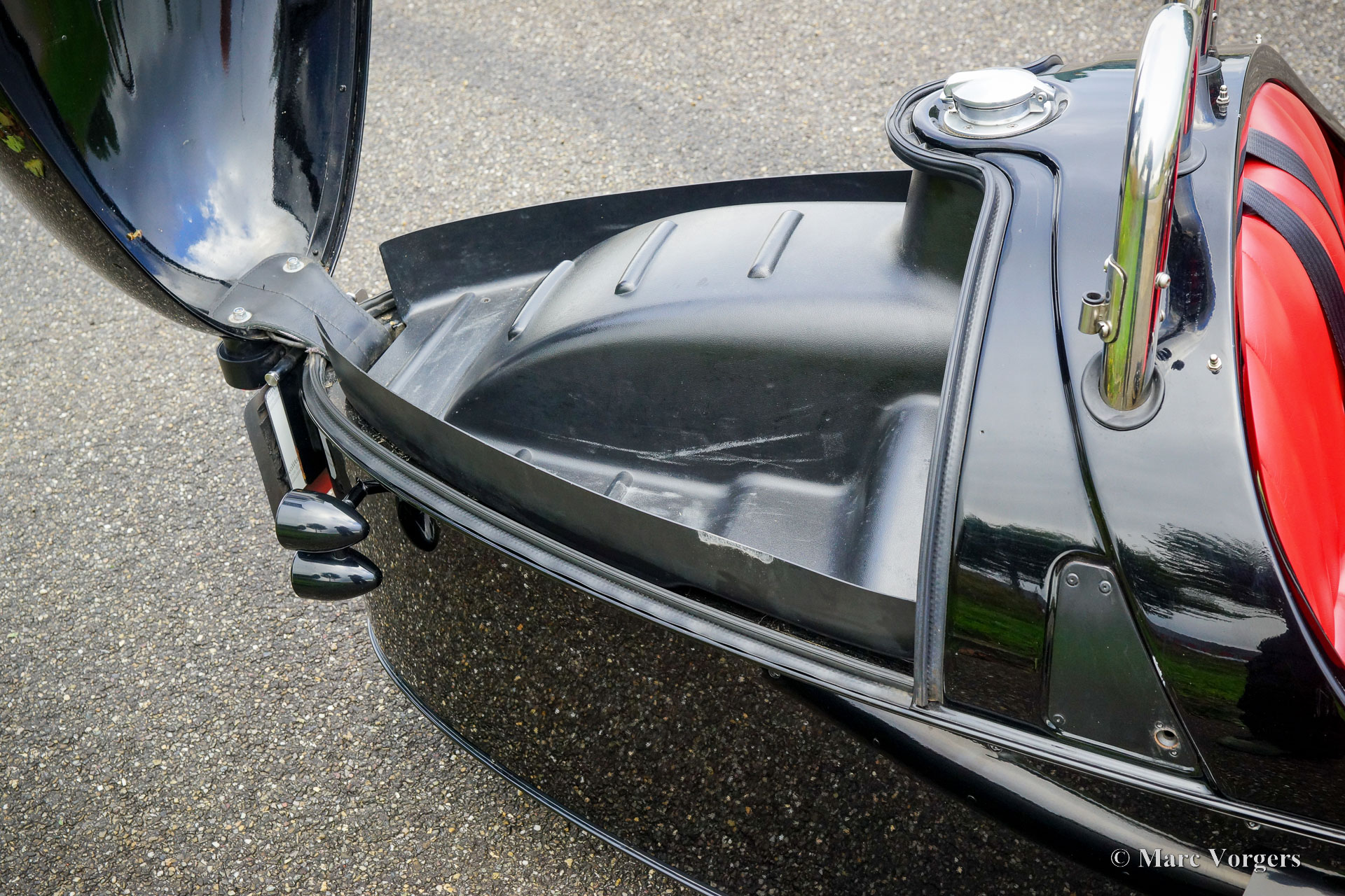 Morgan 3 wheeler, year 2012. Colour black combined with a red leather interior. This fantastic Morgan model was built in the Spirit of the Morgan 3 wheelers from the 1920’ and 1930s. The ‘tribute’ model was built from 2011 until 2022. Being very light with only 525 kilogrammes, the combination with a 82 bhp V-twin engine guarantees a spectacular driving experience. An English First World War fighter pilot said that driving his Morgan 3 wheeler was the closest experience to flying without leaving the ground! This Morgan 3 wheeler is the EURO 3 version fitted with the 82 bhp S&S four stroke V-twin engine mated to a 5-speed gearbox. The 3 wheeler is in an excellent condition and the vehicle has driven 8935 miles from new. The vehicle is fitted with black painted wire wheels, vented disc brakes, a removable steering wheel for easy access, chrome roll bars behind the seats, and a black tonneau cover. The wonderfully designed dashboard, and the small aero screens give one the impression to fly an aeroplane. The engine is started with a centrally fitted starter button… The vibrations and the fantastic exhaust note sharpen your senses for what you are about to experience… This is a very desirable fun machine and a collector’s item, we cannot think of anything on wheels offering more legal driving fun on the open road!