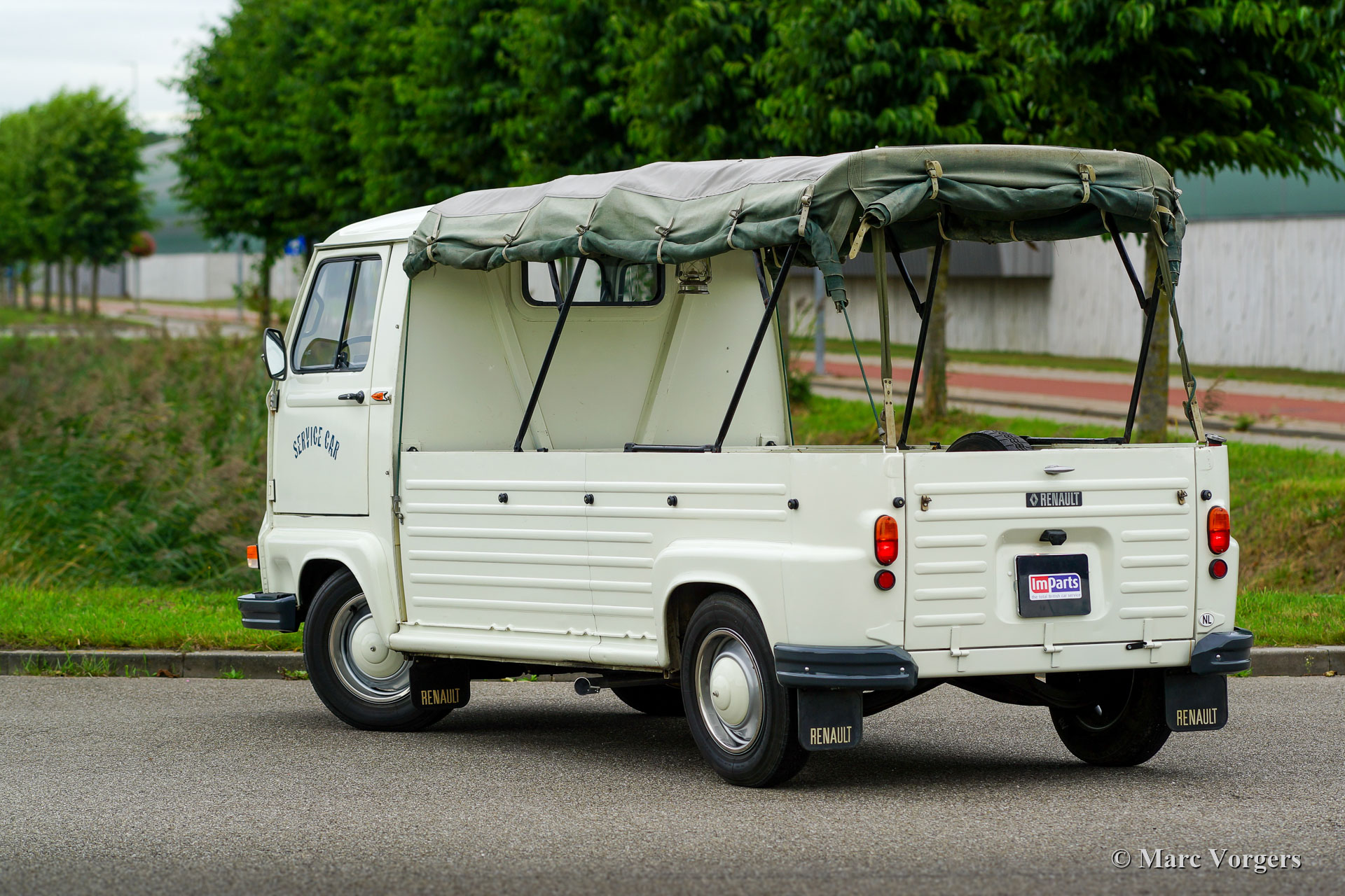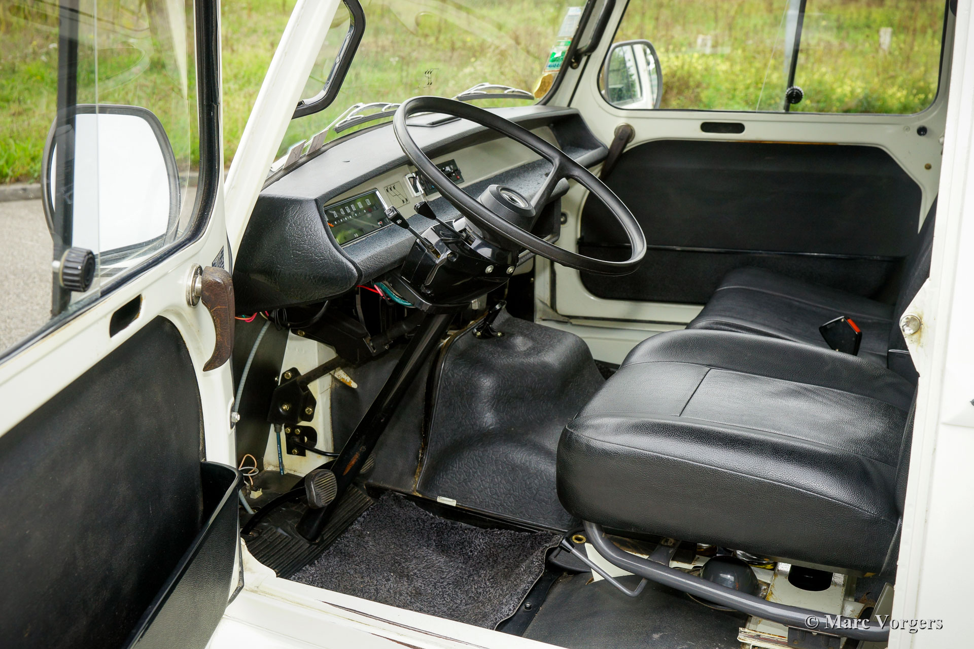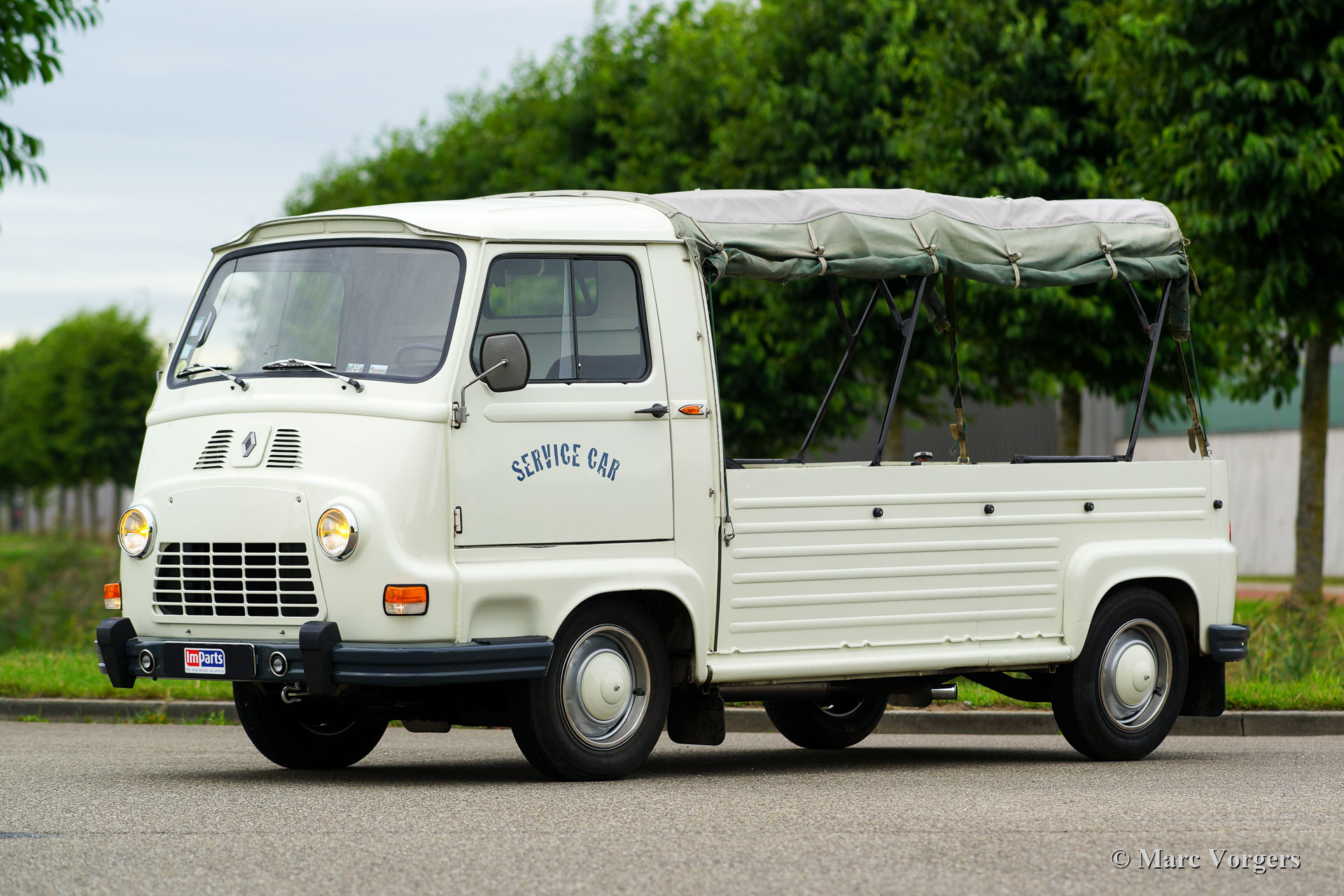 Renault Estafette ‘Plateau’ (Pick-Up), year 1979. Colour crème white combined with a black leathercloth interior and a green hood. This Renault Estafette (type R2137) is a rare ‘Plateau’ (Pick-Up) model with a hood over the cargo floor. This very nice utility car is in excellent original condition; the car has driven only 26.000 kilometres from new! The vehicle comes complete with French and Dutch booklets. The car runs and drives like new! This Renault Estafette may be a nice show piece or vintage utility transporter for your shop!