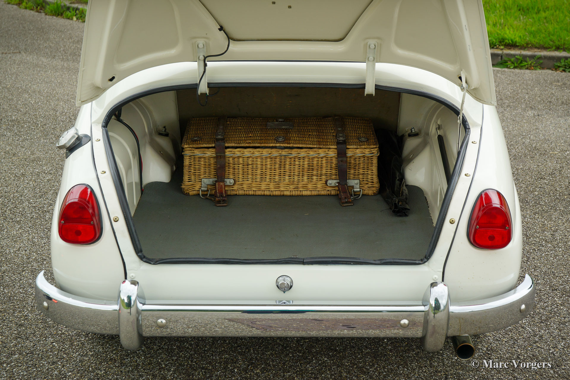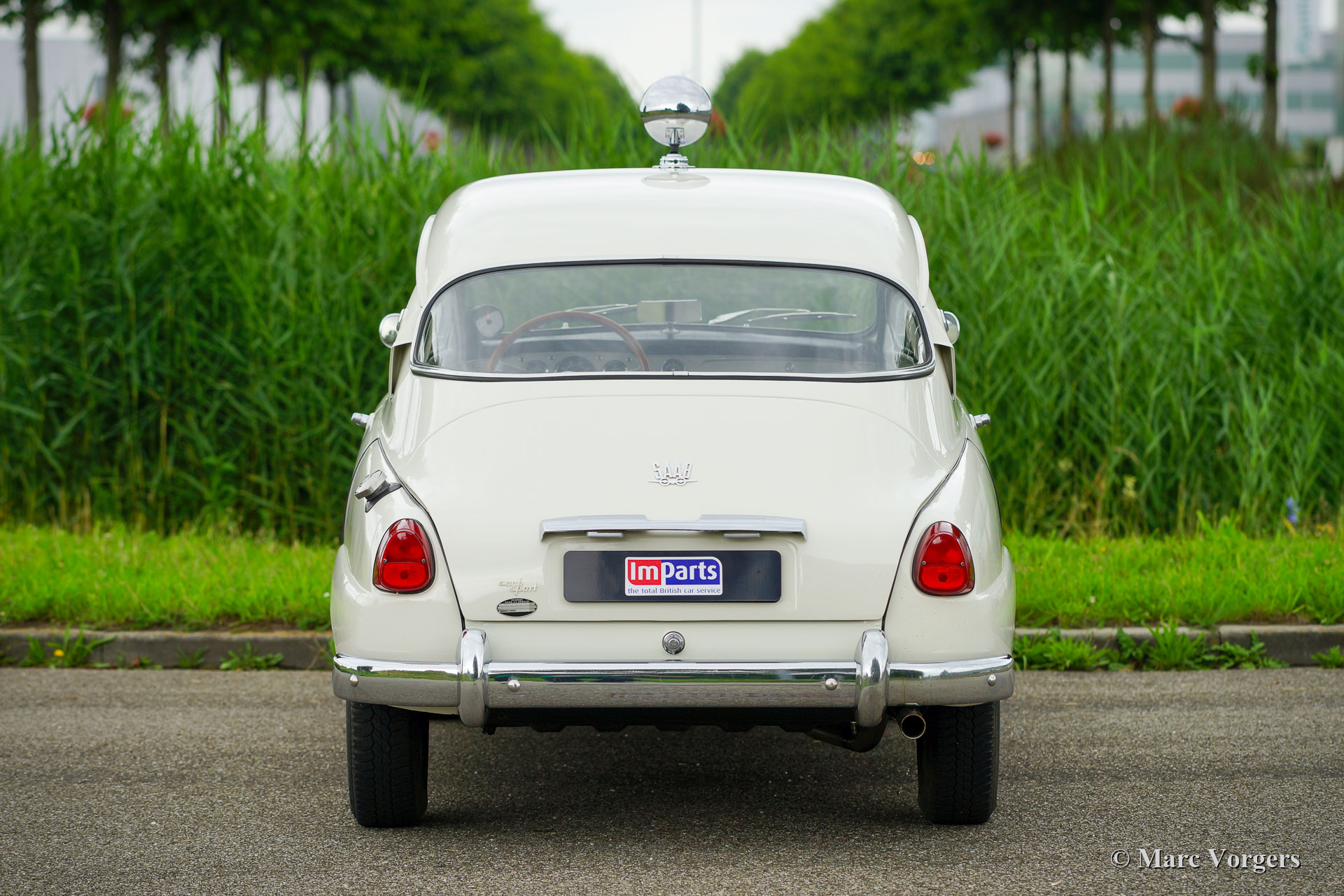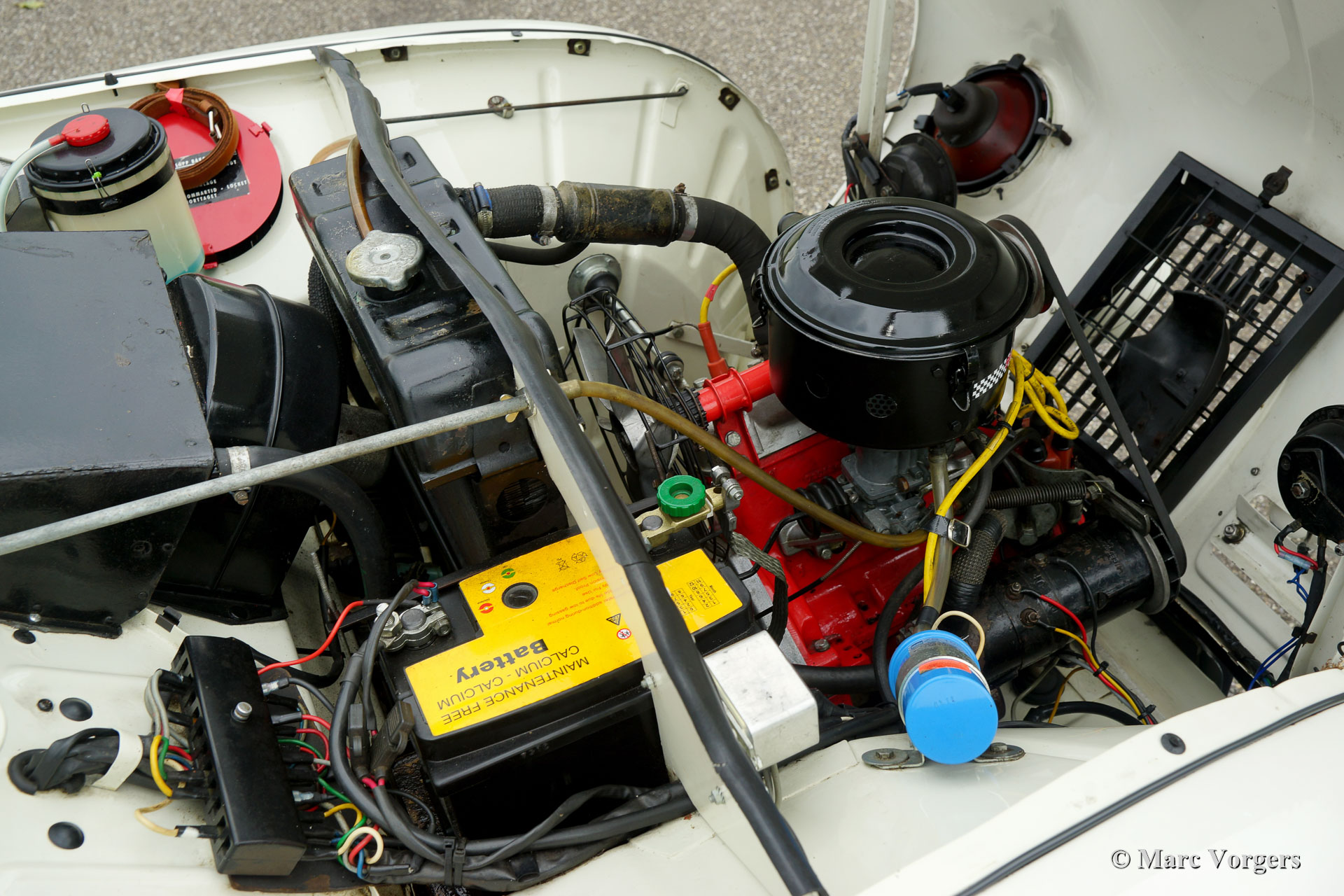 Saab 96 ‘two-stroke’, year 1964. Colour white combined with a red interior. This fantastic Saab 96 was extensively restored and overhauled. The engine was overhauled using the correct quality parts and it runs perfectly. The engine is the renowned 3-cylinder 850 cc two-stroke unit which is mated to a four speed manually operated gearbox. This fine Saab is fitted with wonderful ‘Minilite’ style alloy wheels, disc brakes at the front wheels, additional driving lamps at the front, a rally search light on the roof and a special sports exhaust! This Saab features the dashboard with the round gauges. This is a gorgeous and sporty Saab in excellent condition!