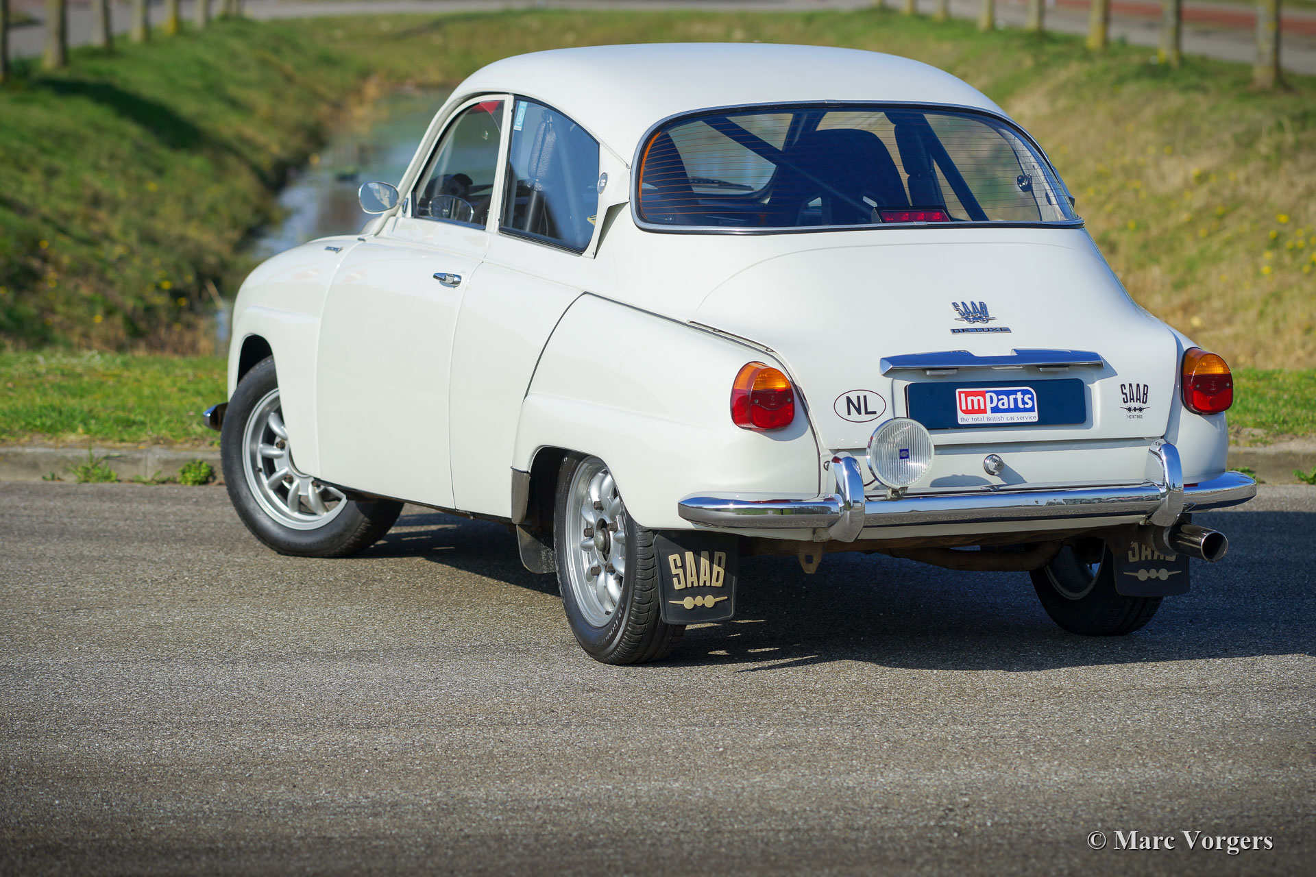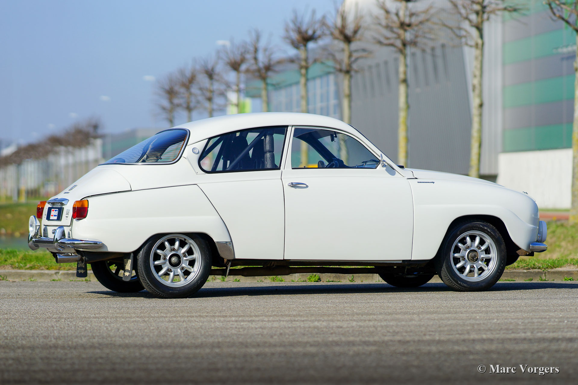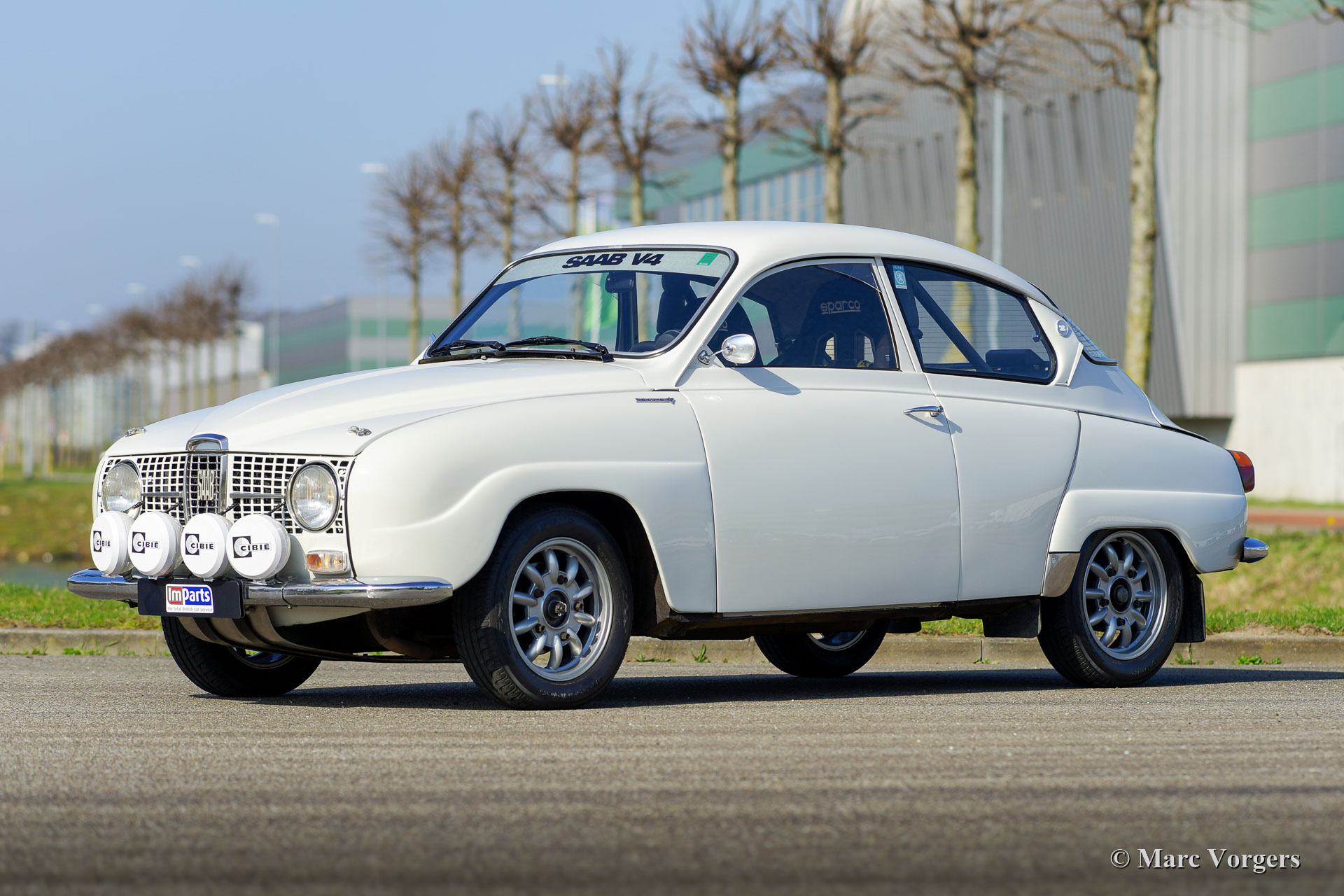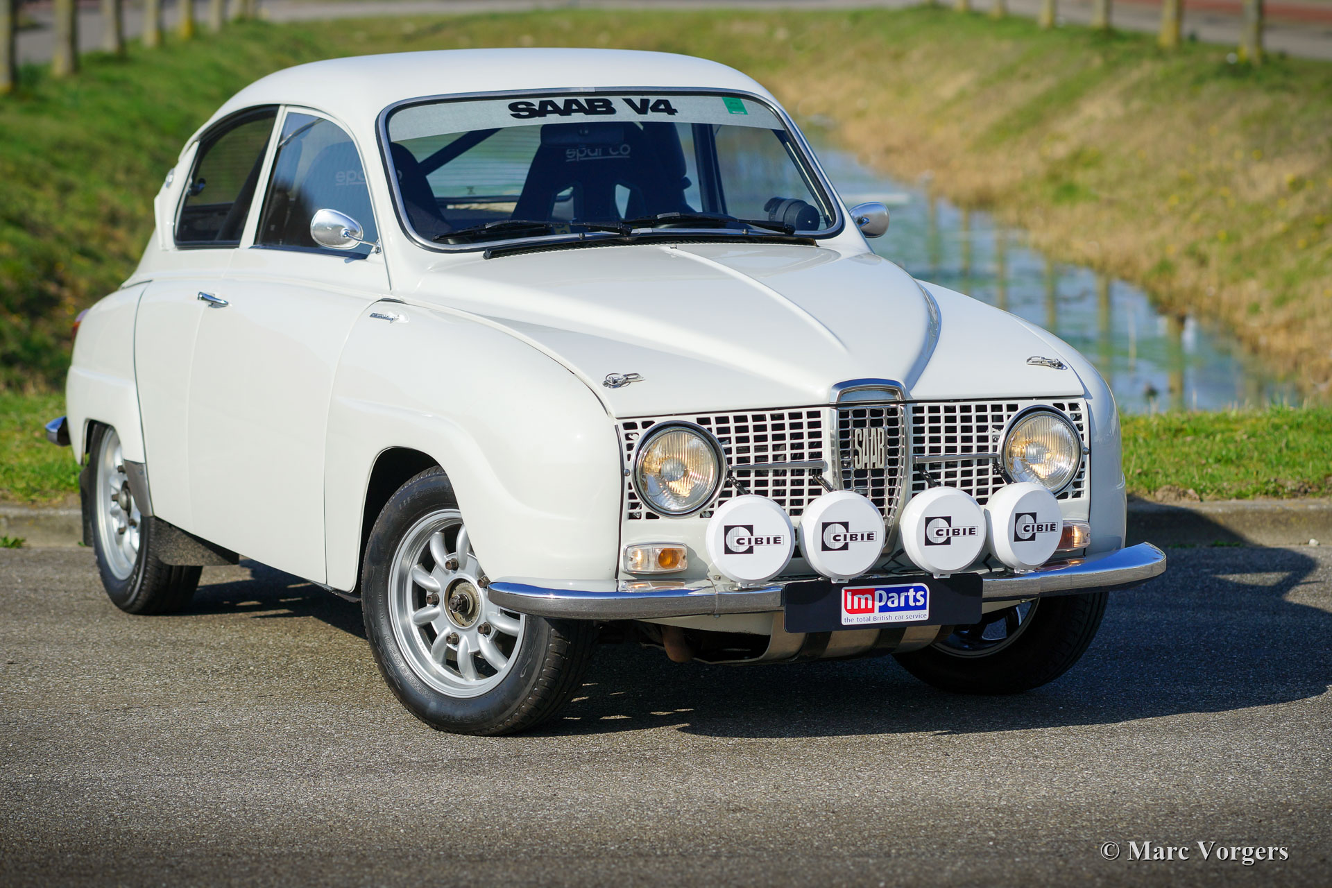 Saab 96 V4 De Luxe rally car, year of built 1968, first registration 14 January 1972 (Netherlands). Colour white combined with a black rally interior. Sparco bucket seats upholstered with black cloth and leather on the raised parts, black rubber carpet. This impressive Saab V4 was superbly built, modified, and tuned as a competitive and reliable historic rally car in the year 2009. The work was commissioned by the current owner who has cherished the car since 2009. The car is in very good to excellent condition, and it has driven about 20.000 kilometres since the work was finished. The owner has enjoyed this powerful and fast Saab a lot in several historic rally events. Before and after every event the car was fully inspected and serviced, recently the car was given extensive service by a Saab Specialist. The incredibly special tuned V4 engine was built by the firm Sweed Speed Racing (Saab V4 specialist) in the Netherlands. Below you will find a list of modifications which were carried out the engine and to other parts of the car. The engine now features special intake manifolds with two twin-choke Weber carburettors. This power package takes a lot of space under the bonnet. To open the bonnet, it now must be taken away completely since the hinges were deleted. Engine specifications: V4 engine, 1770 cc, 130 bhp power, 200 Nm torque. This is a perfectly rally prepared Saab 96 V4 De Luxe. The car is ready for any adventure in the hands of a new enthusiast owner!
