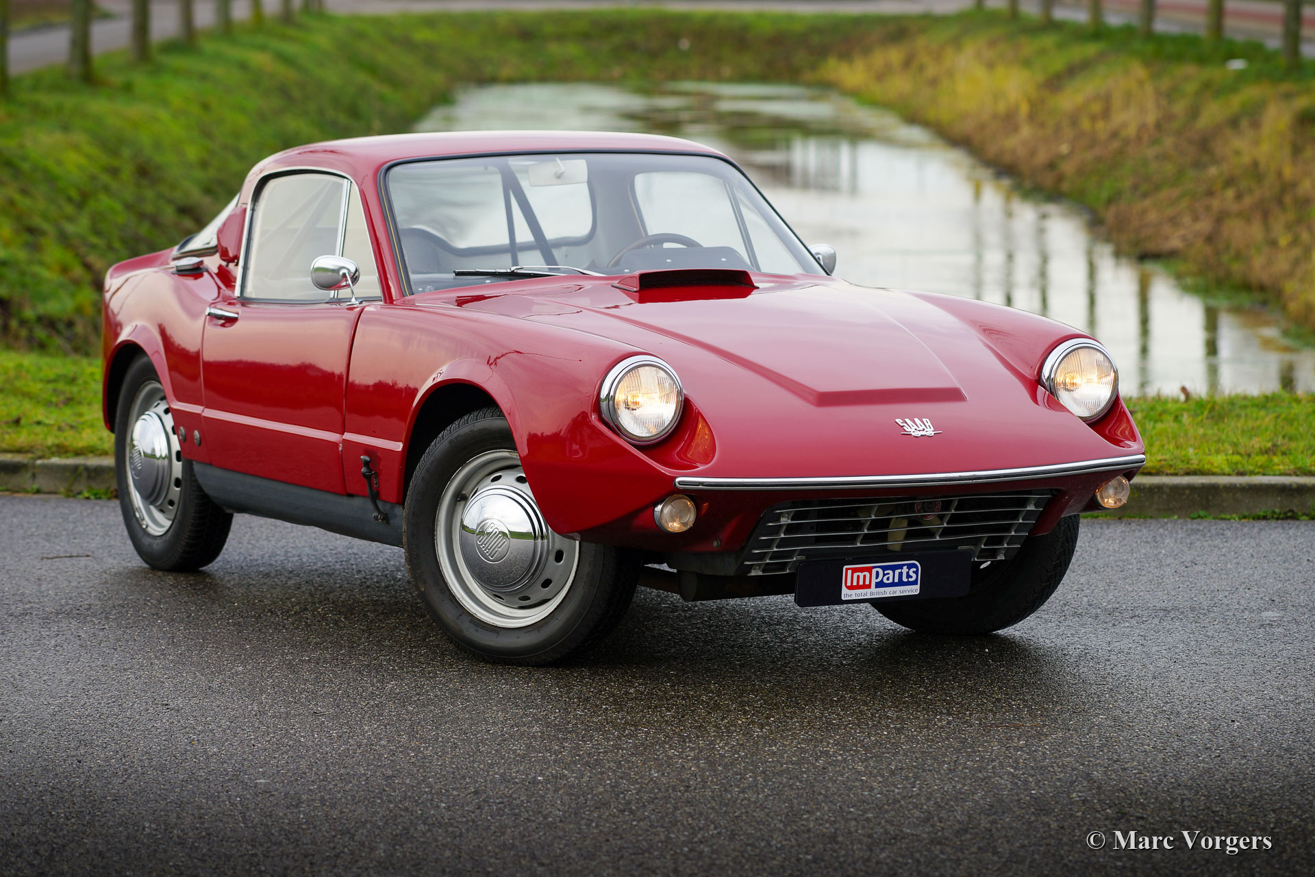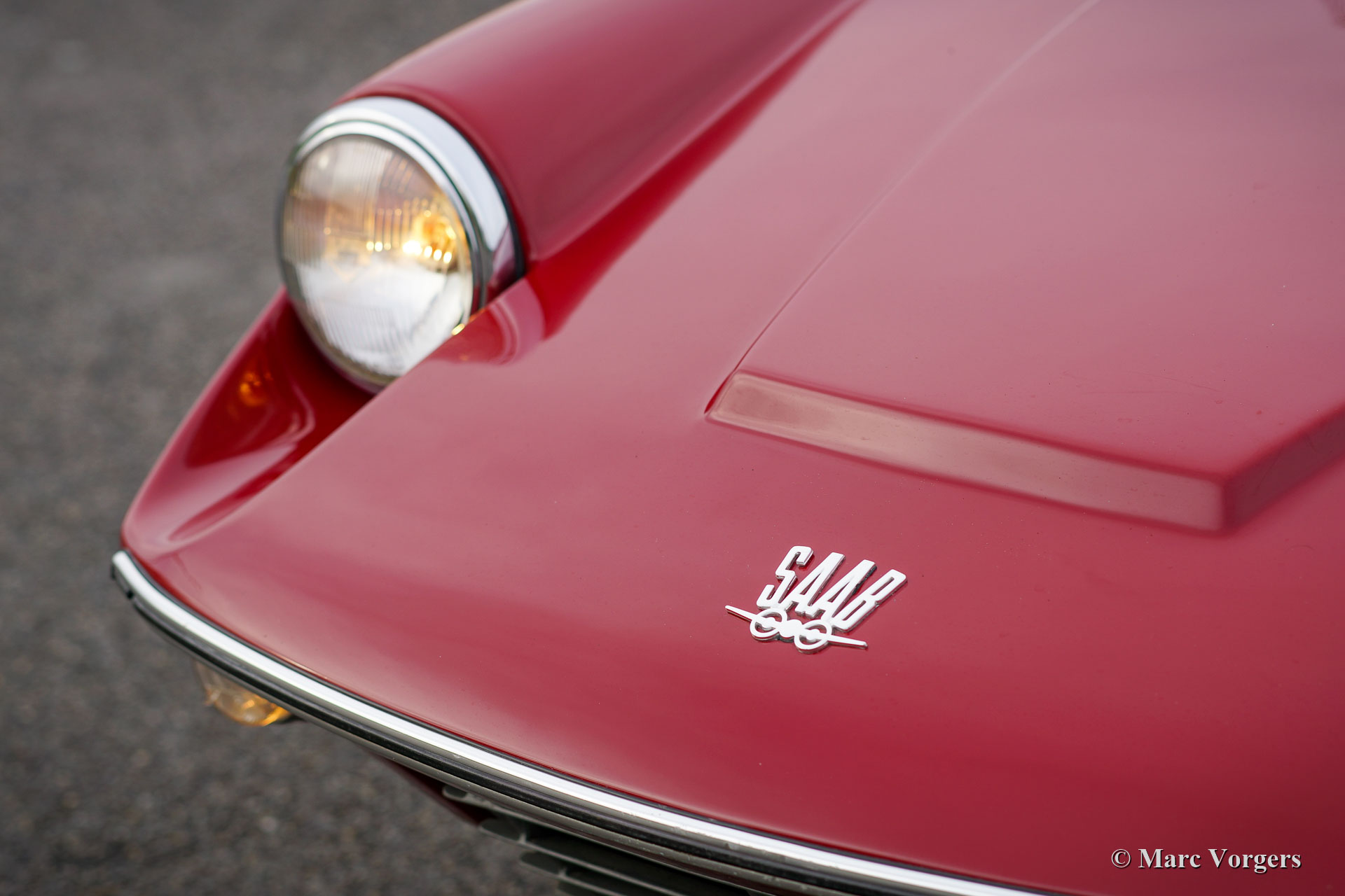 Saab Sonnet 2, year 1967. Colour dark red combined with a black leathercloth interior trimmed with grey carpet. The Saab Sonnet was Saabs first true sportscar and it was aimed at the American market. From 1966 until 1974 10.219 examples were built. The first 258 cars were fitted with the legendary ‘Monte Carlo’ two-stroke engine and named Sonnett 2. The presented Sonnett 2 is car number 48! This Sonnett 2 is in excellent condition and the driving experience is sensational! It is very special to witness the potential of the two-stroke engine and all the fantastic qualities of the car. The sporty 841 cc 3- cylinder two-stroke engine is fitted with three carburettors and it delivers 60 bhp. The body was produced in fibre glass reinforced plastic (GRP) and the futuristic shape showed off a very low drag of only 0,32 Cd. With a weight of only 710 kilogrammes, a top speed of 170 km/h and disc brakes on the front wheels the Sonnett 2 was a true sports car in 1967! A Saab Sonnett 2 is seldom for sale, this is a unique opportunity to purchase an excellent example!