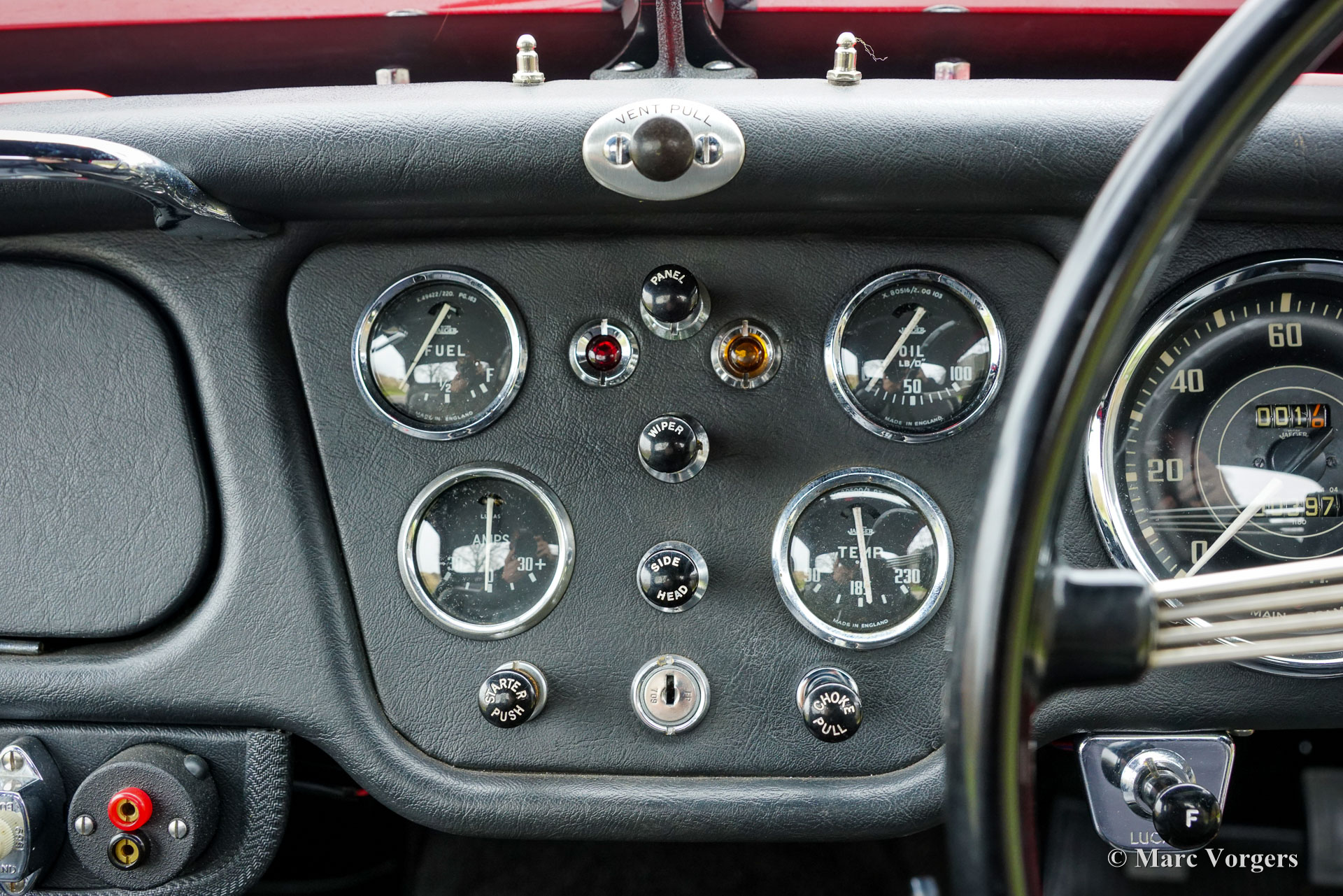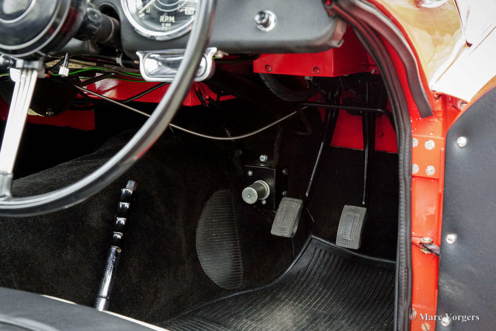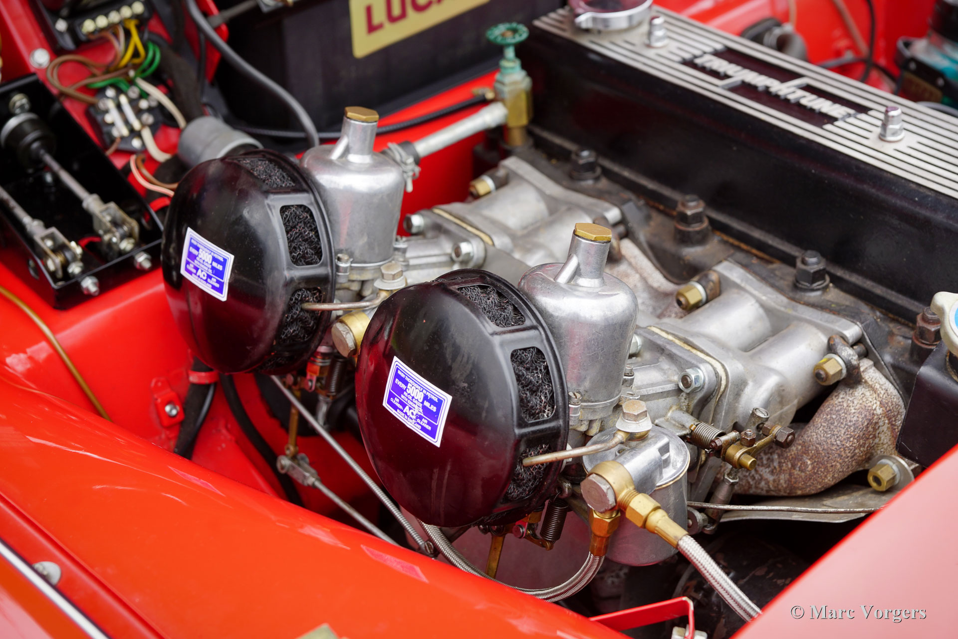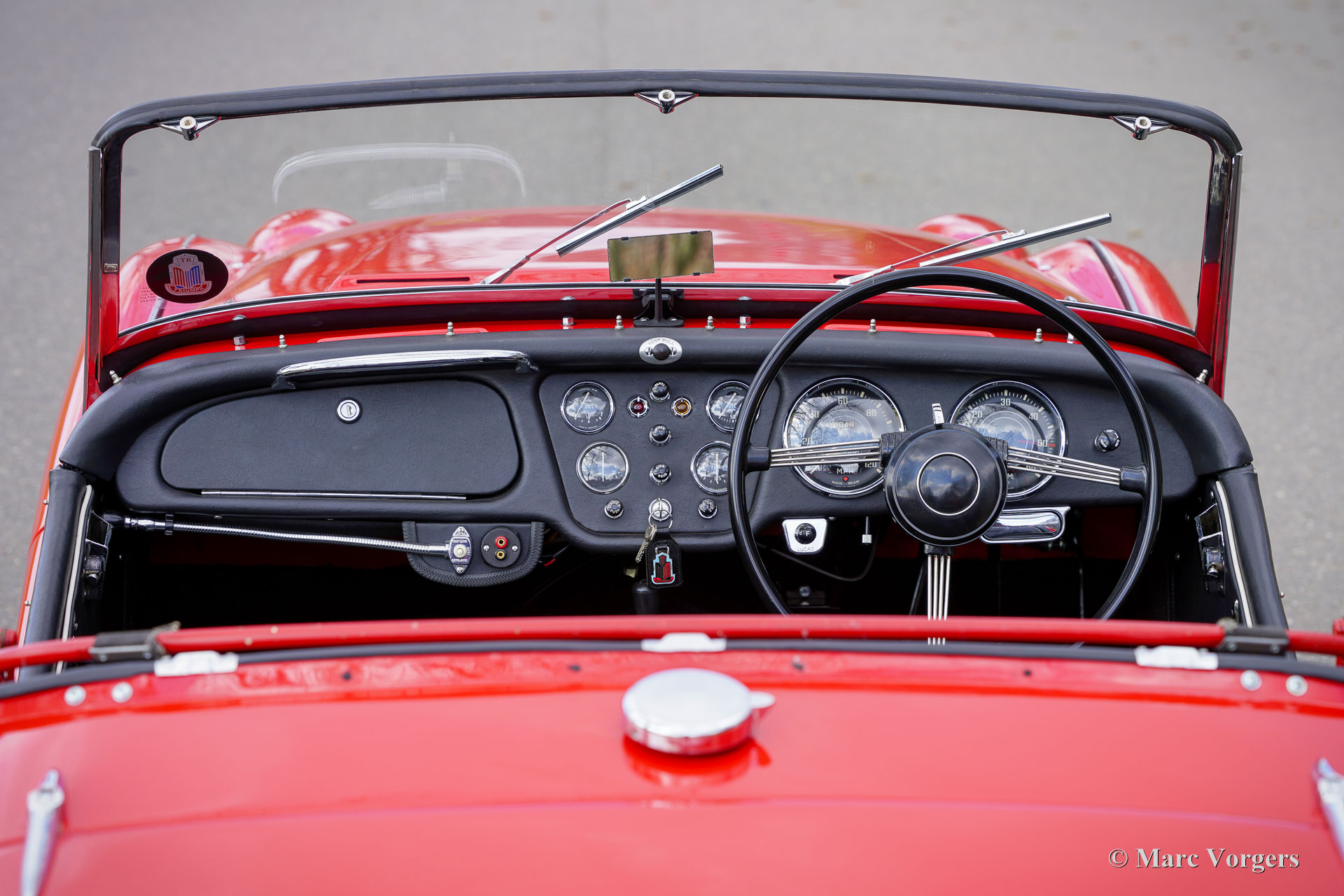The Triumph TR 3 is a no nonsense sports car; very robust, simple and reliable, a true British sports car all over. The TR 3 was the first production car, off factory, equipped with disc brakes on the front-wheels. The engine was a Standard Vanguard based, cast-iron, long stroke, in-line four cylinder with a displacement of 1991cc. The TR 3 engine was equipped with two carburettors giving a power-output of almost 100 bhp.