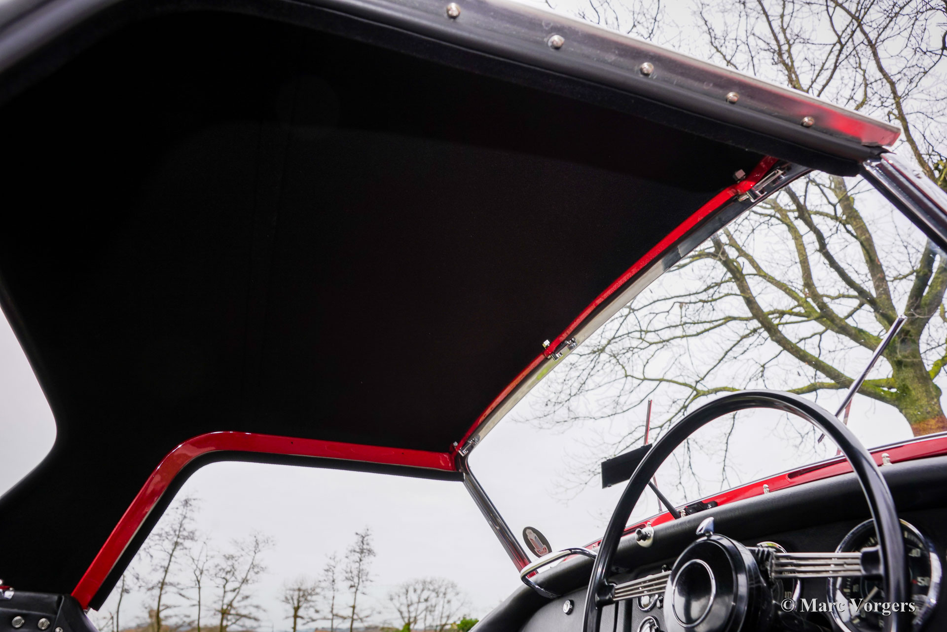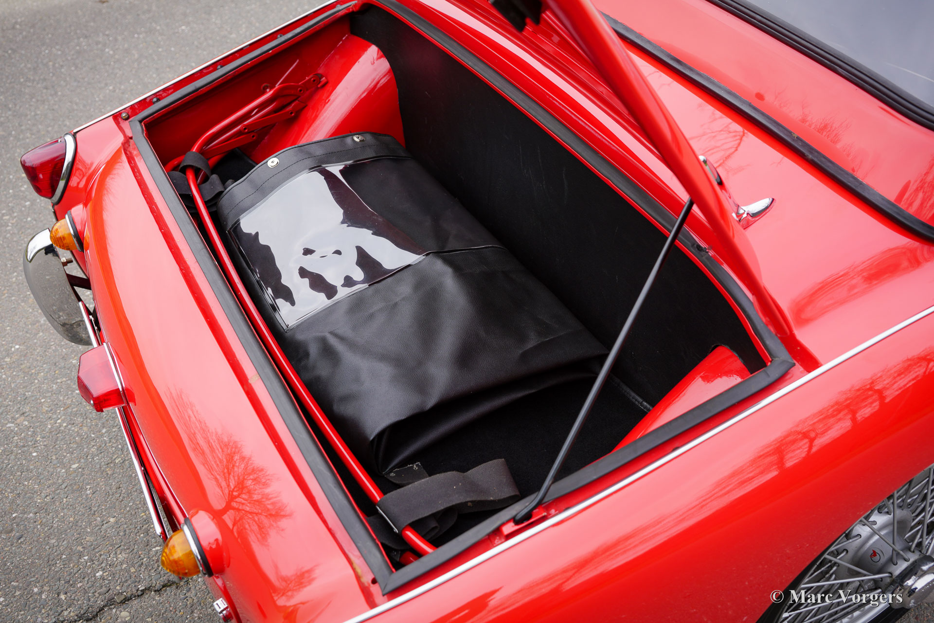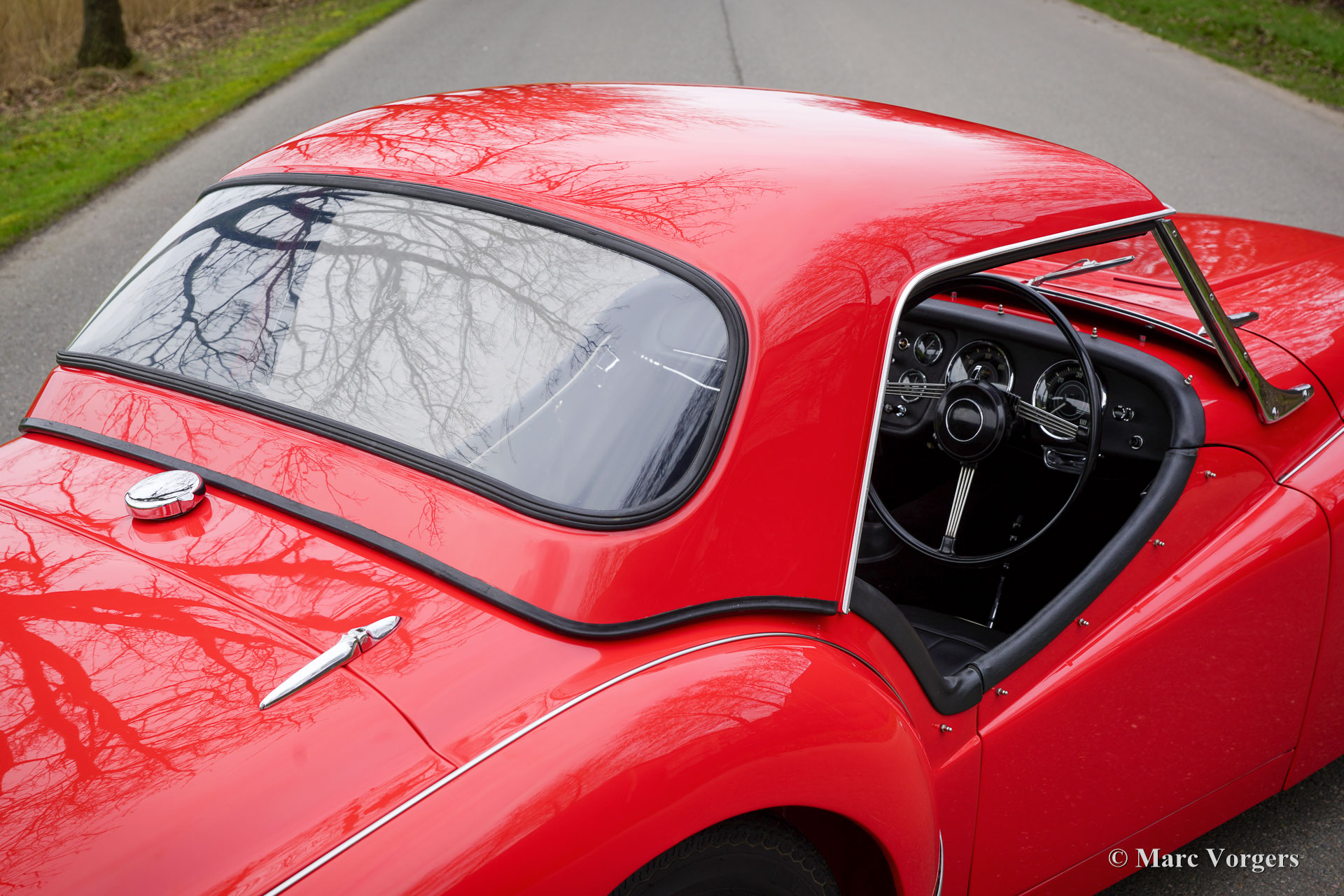 The TR 3 is a pure two-person roadster, a classic generously giving you the fifties British sports car feeling, rough but honest. It comes with a simple soft-top for weather protection. Separate clip-on side screens can additionally be attached to the doors. A hardtop was also available.