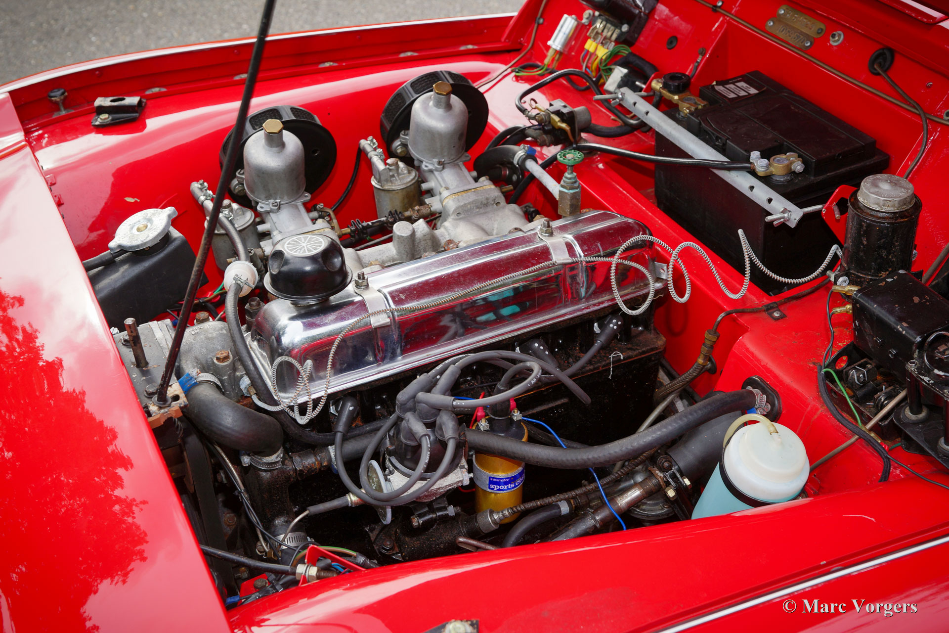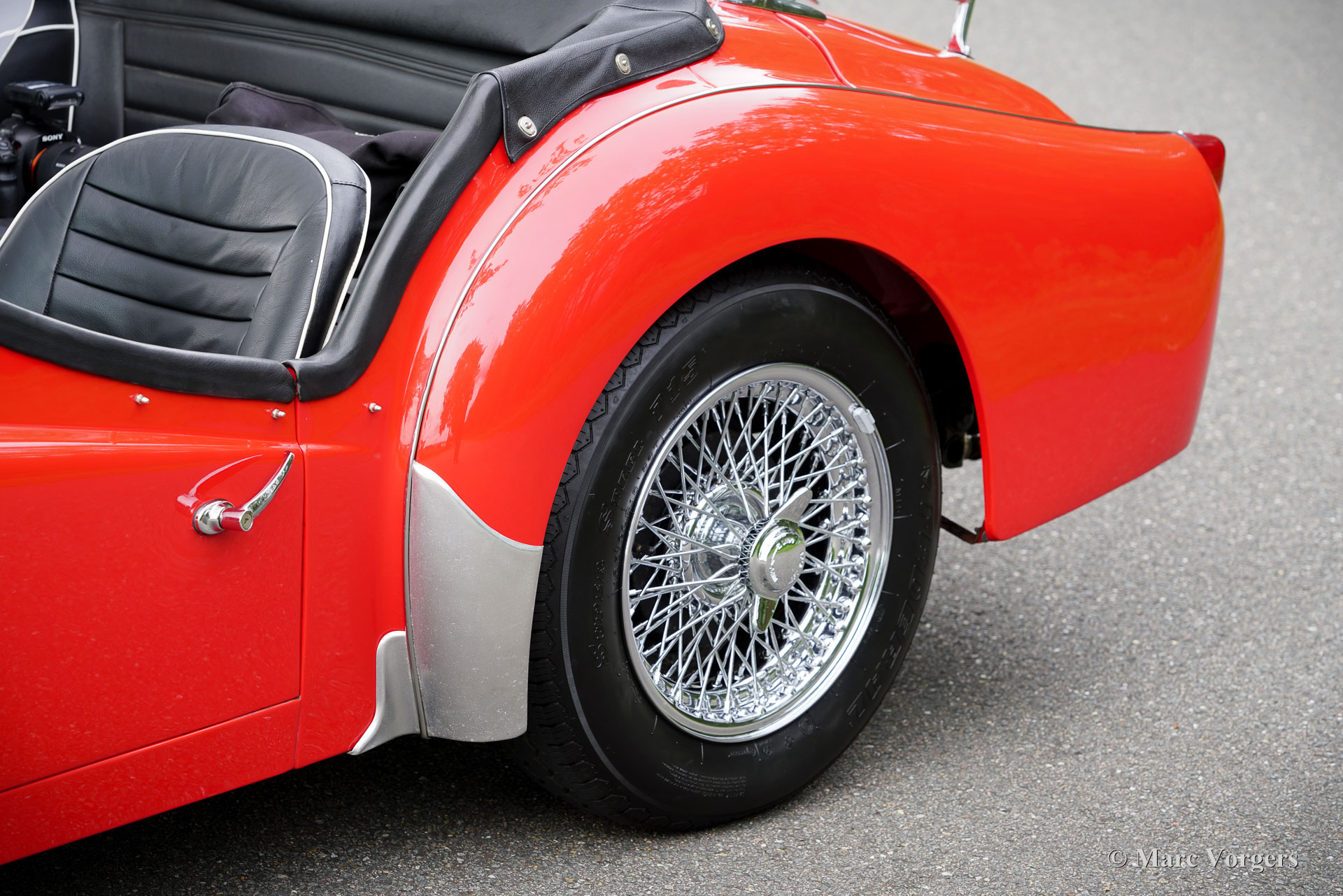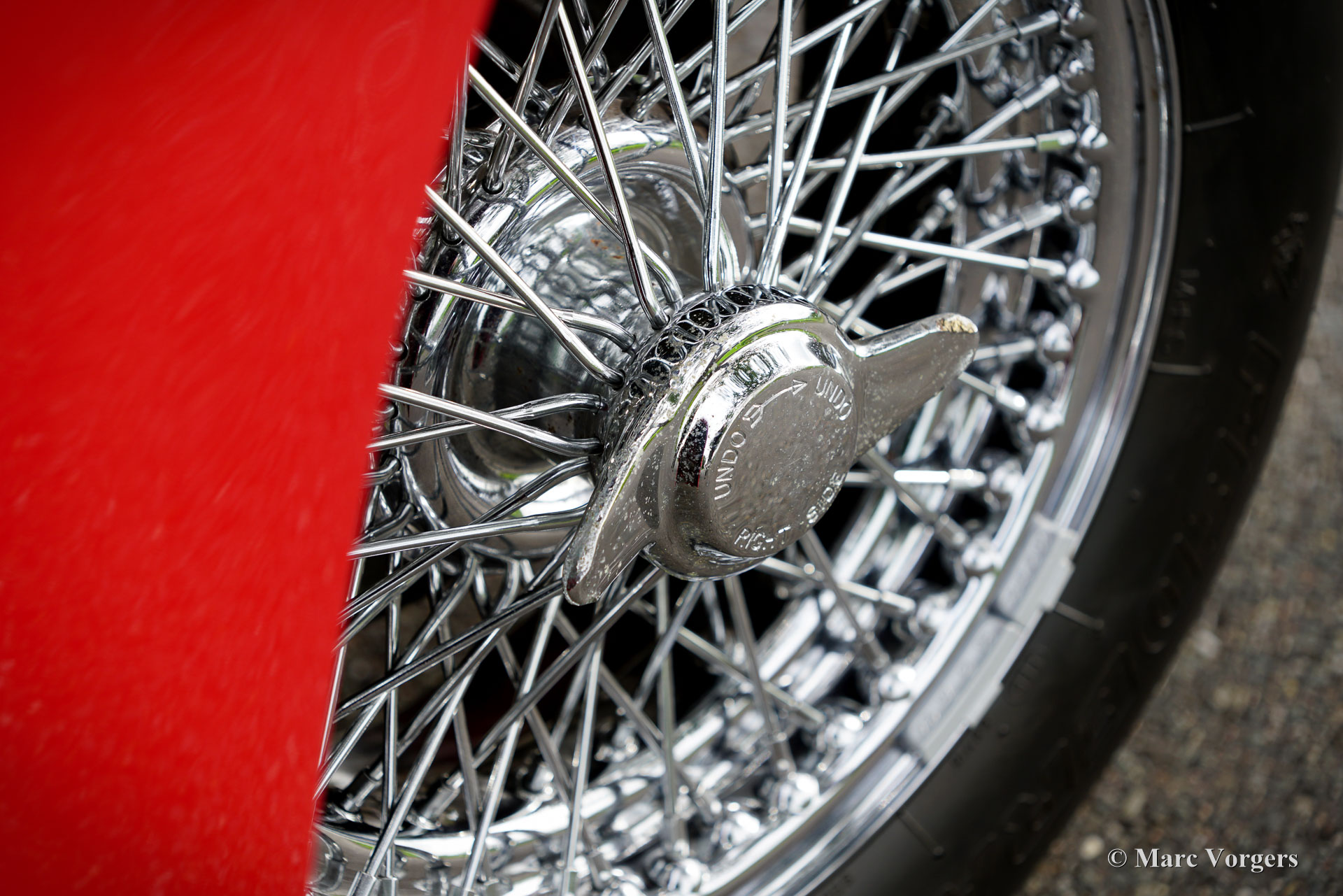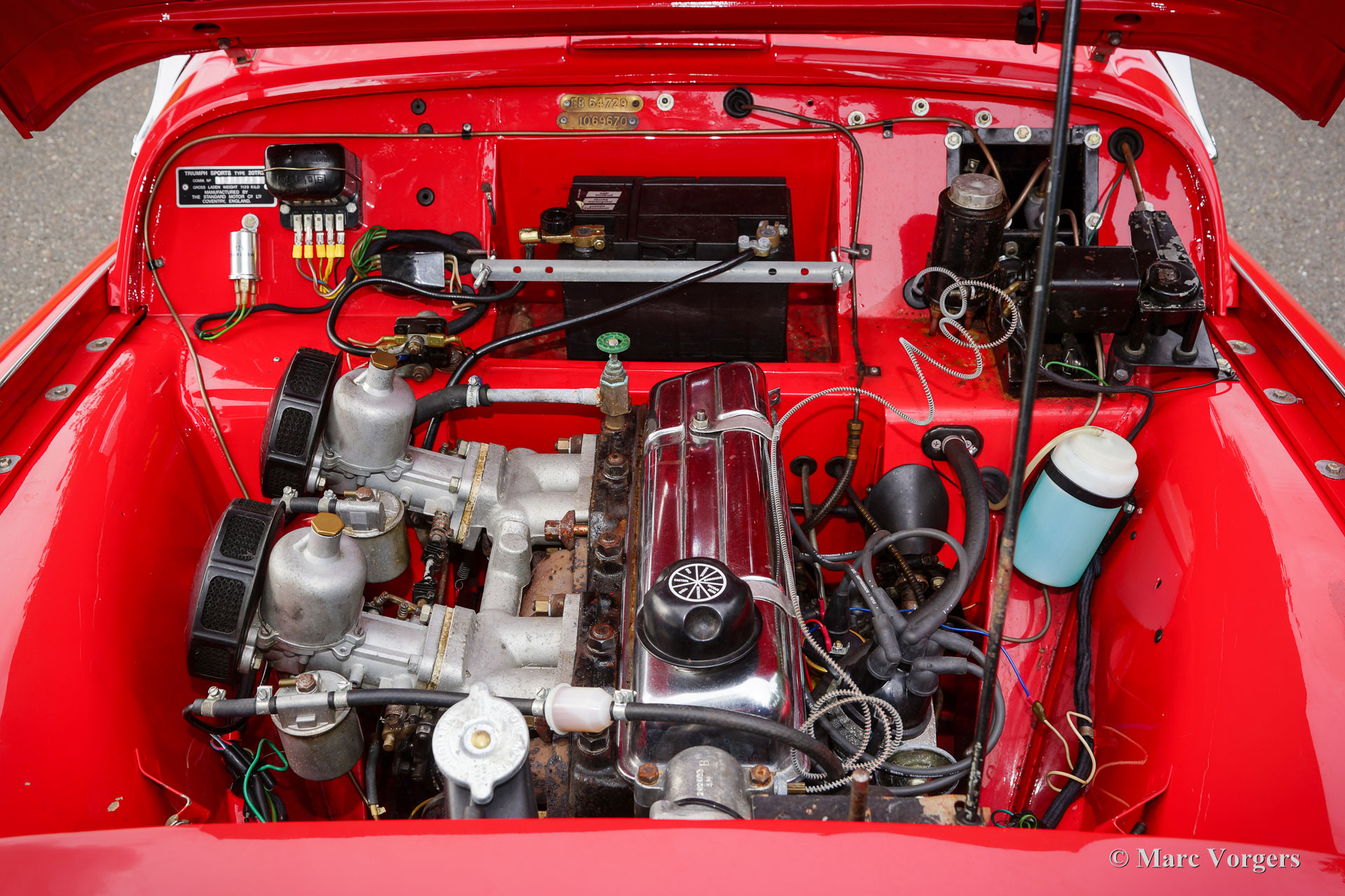 The Triumph TR 3 is a no nonsense sports car; very robust, simple and reliable, a true British sports car all over. The TR 3 was the first production car, off factory, equipped with disc brakes on the front-wheels. The engine was a Standard Vanguard based, cast-iron, long stroke, in-line four cylinder with a displacement of 1991cc. The TR 3 engine was equipped with two carburettors giving a power-output of almost 100 bhp.
