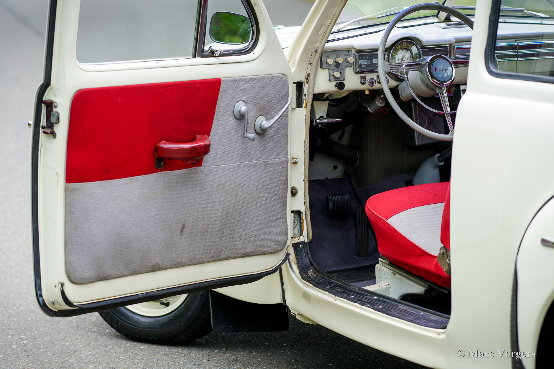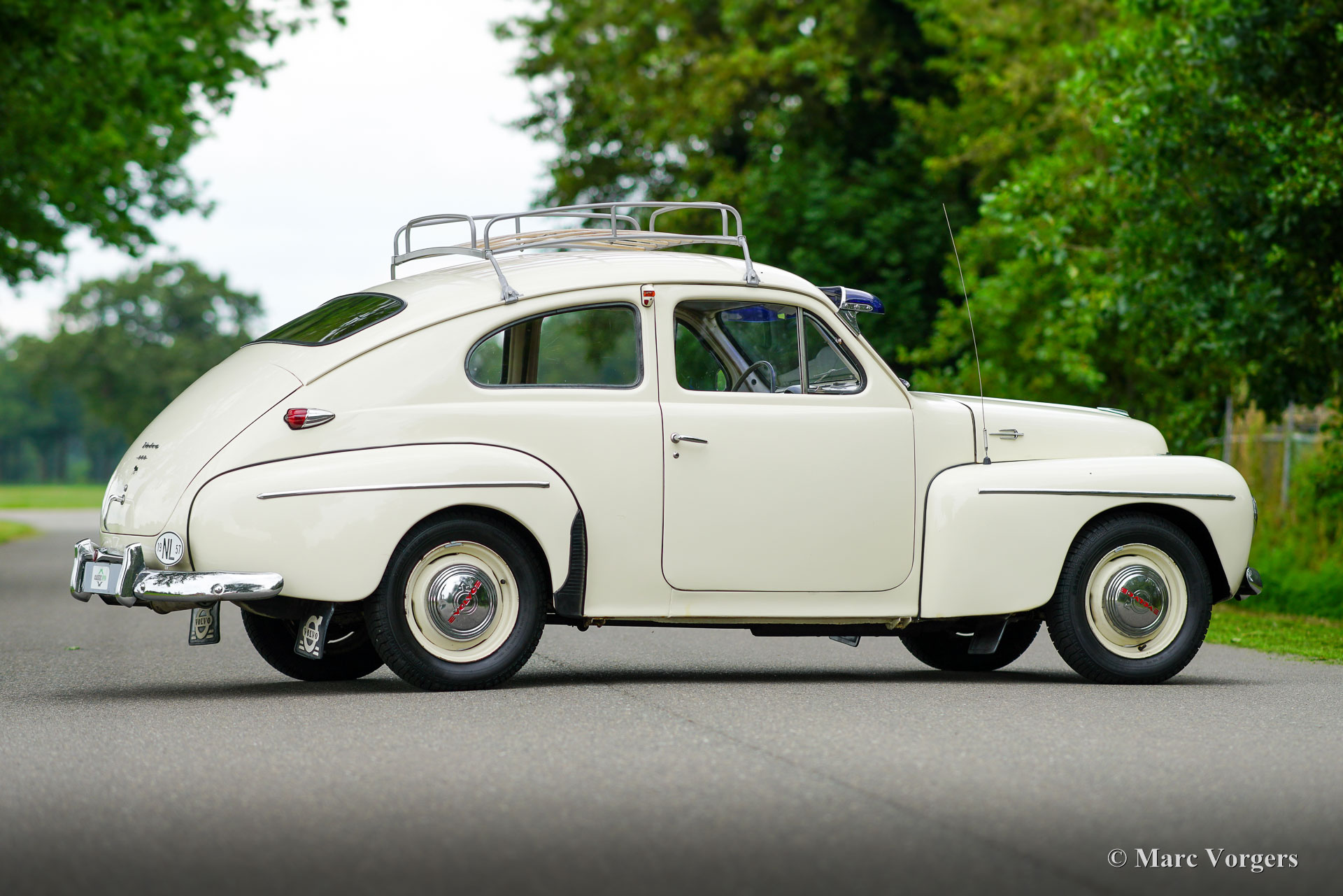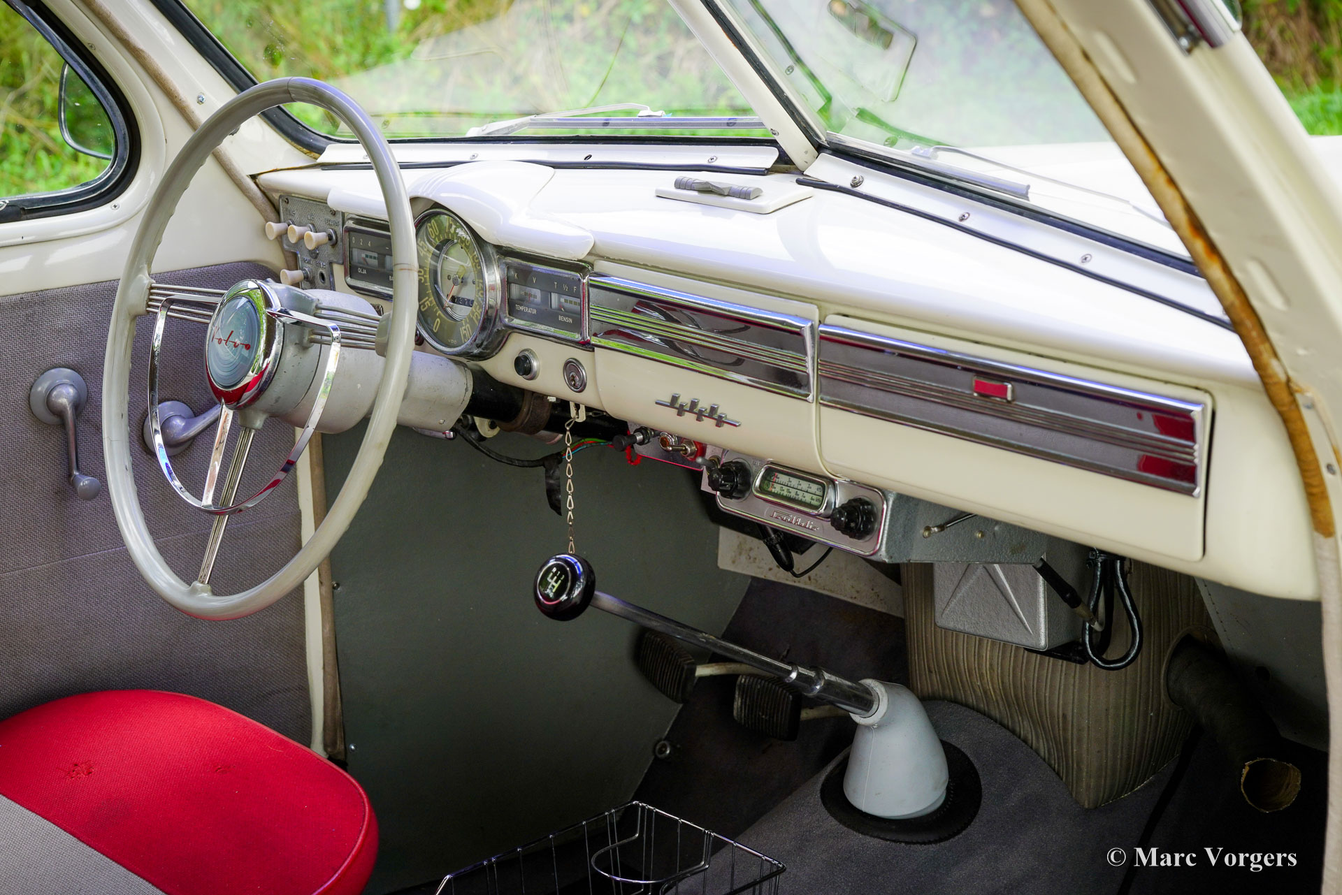 Volvo PV444, year 1957. Colour very light grey combined with a two-tone grey/ red cloth interior. This wonderful Volvo PV444 L comes from the final year of production. A previous owner must have preferred an earlier style grille (up to 1955 model year) with four horizontal bars which gives the car an earlier appearance. The other details are correct for the 1957 model year. The Volvo was sold new in the Netherlands and registered on 31 May 1957. The automobile was restored many years ago. The automobile is in a good driver condition. The bodywork is sound, the paintwork is good and body trim shows some patina. The interior is a true time capsule and shows traces of use. Very special is the presence of a period original AM radio of the make ‘SoundRadio’. This very nice PV444 is also fitted desirable period accessories like the original roof rack and the American style blue sun visor! This final PV444 version features a 6 Volt electrical system, the 60 bhp B16A engine and the 4-speed manual gearbox. The Volvo PV444 put Volvo on the global map of automobile constructors producing cars with a robust build quality and good road holding which it keeps to this day. Immerse yourself in the excitement of driving a true time capsule!