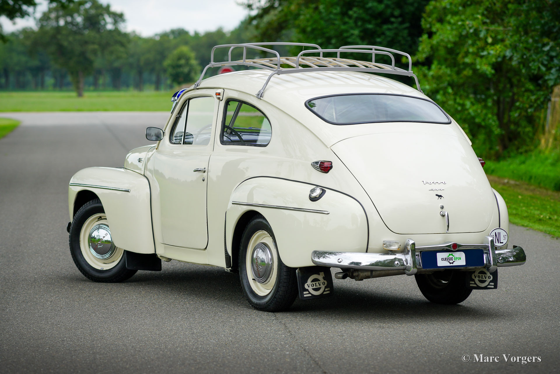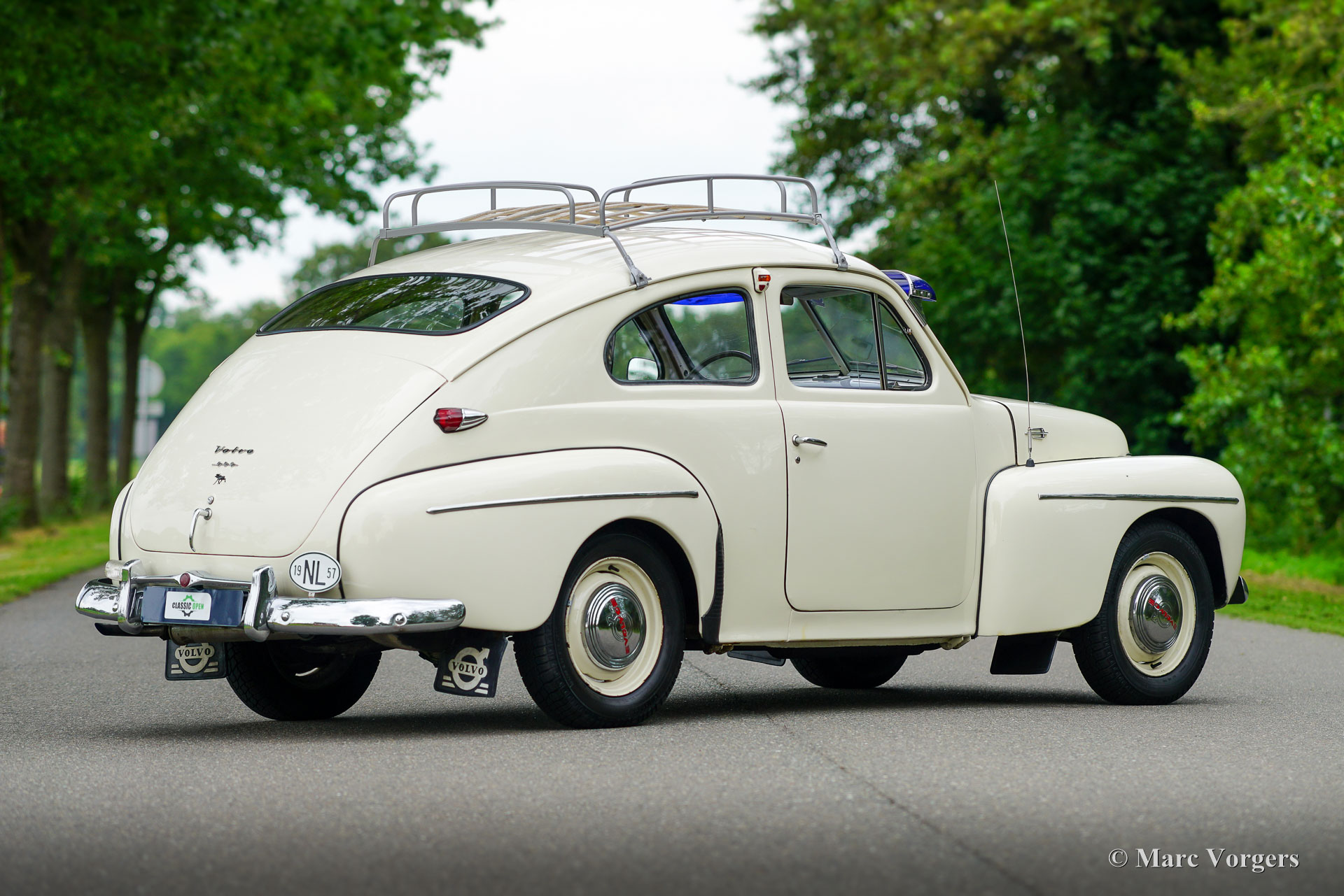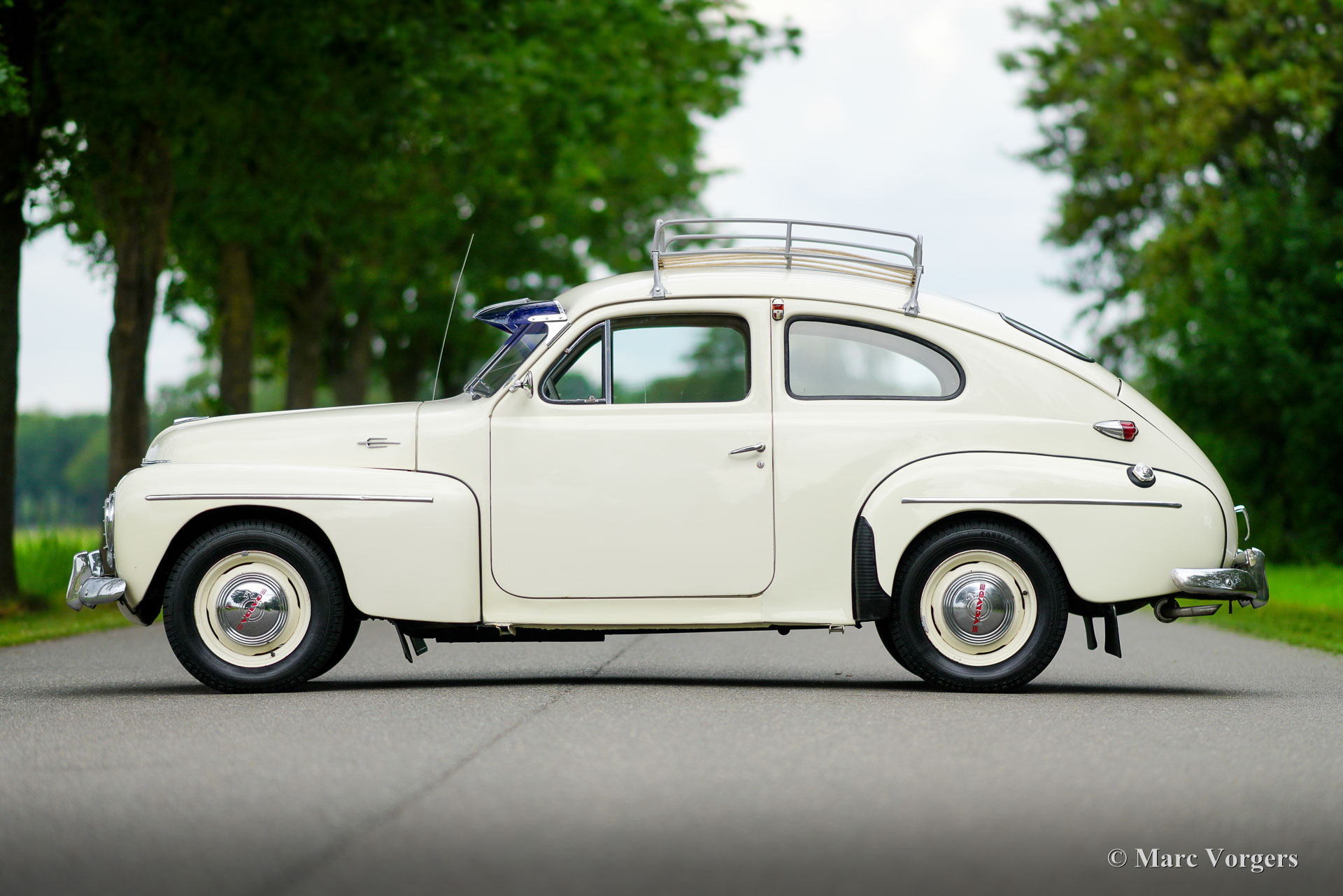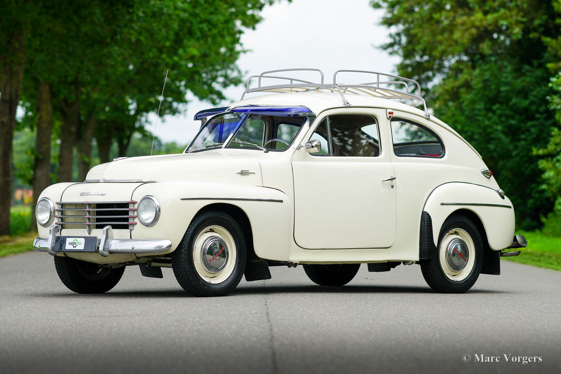 Volvo PV444, year 1957. Colour very light grey combined with a two-tone grey/ red cloth interior. This wonderful Volvo PV444 L comes from the final year of production. A previous owner must have preferred an earlier style grille (up to 1955 model year) with four horizontal bars which gives the car an earlier appearance. The other details are correct for the 1957 model year. The Volvo was sold new in the Netherlands and registered on 31 May 1957. The automobile was restored many years ago. The automobile is in a good driver condition. The bodywork is sound, the paintwork is good and body trim shows some patina. The interior is a true time capsule and shows traces of use. Very special is the presence of a period original AM radio of the make ‘SoundRadio’. This very nice PV444 is also fitted desirable period accessories like the original roof rack and the American style blue sun visor! This final PV444 version features a 6 Volt electrical system, the 60 bhp B16A engine and the 4-speed manual gearbox. The Volvo PV444 put Volvo on the global map of automobile constructors producing cars with a robust build quality and good road holding which it keeps to this day. Immerse yourself in the excitement of driving a true time capsule!