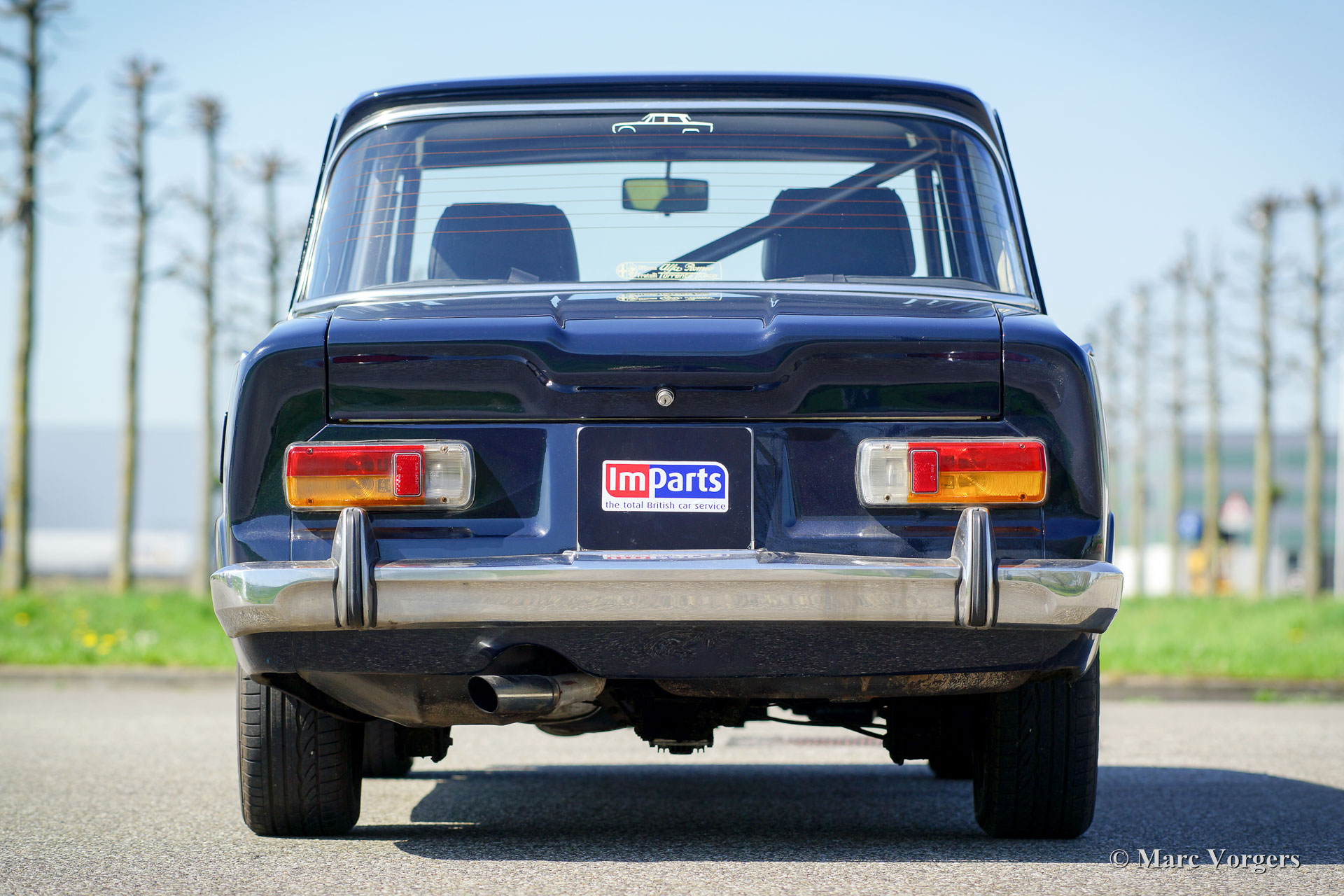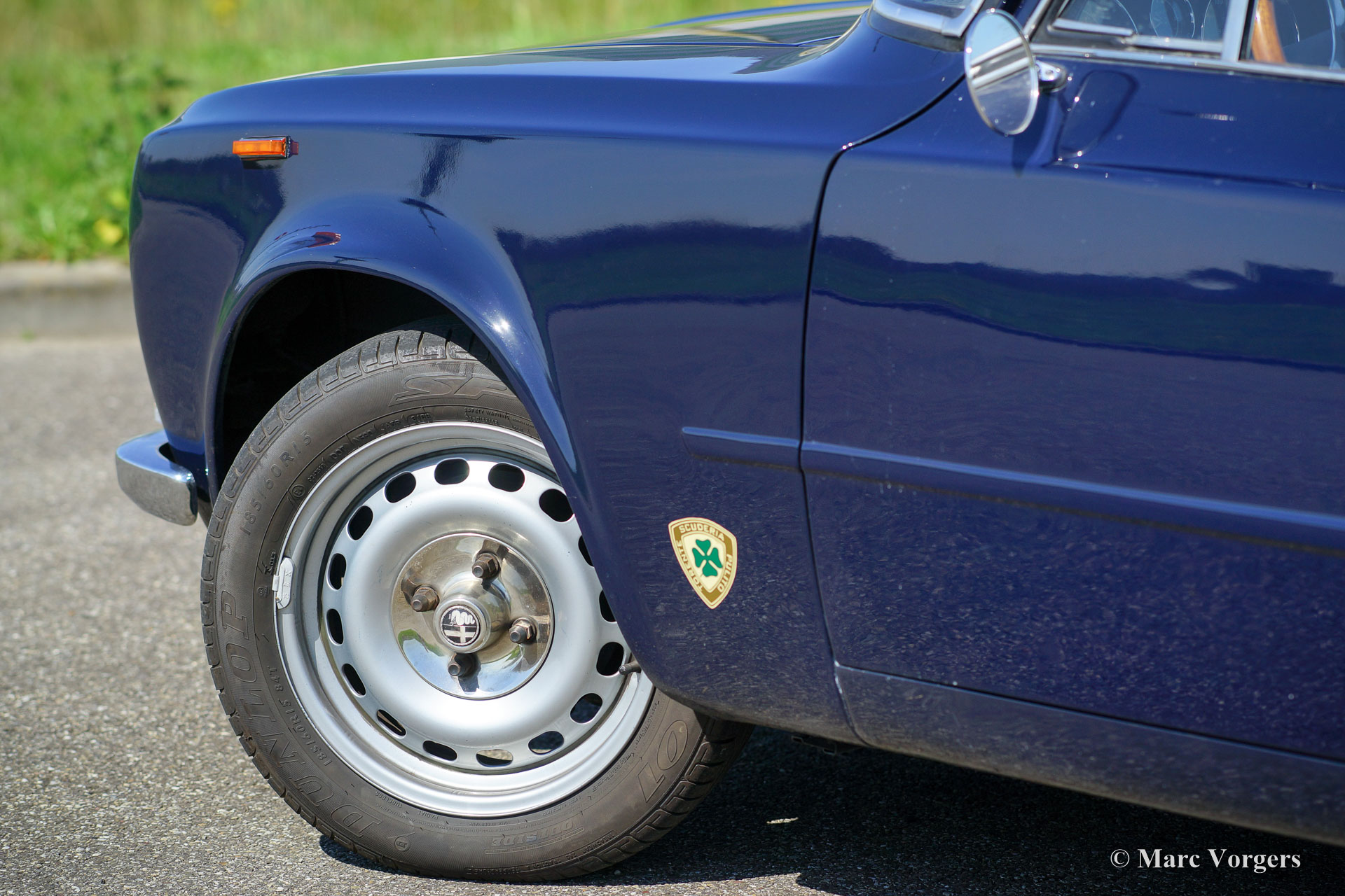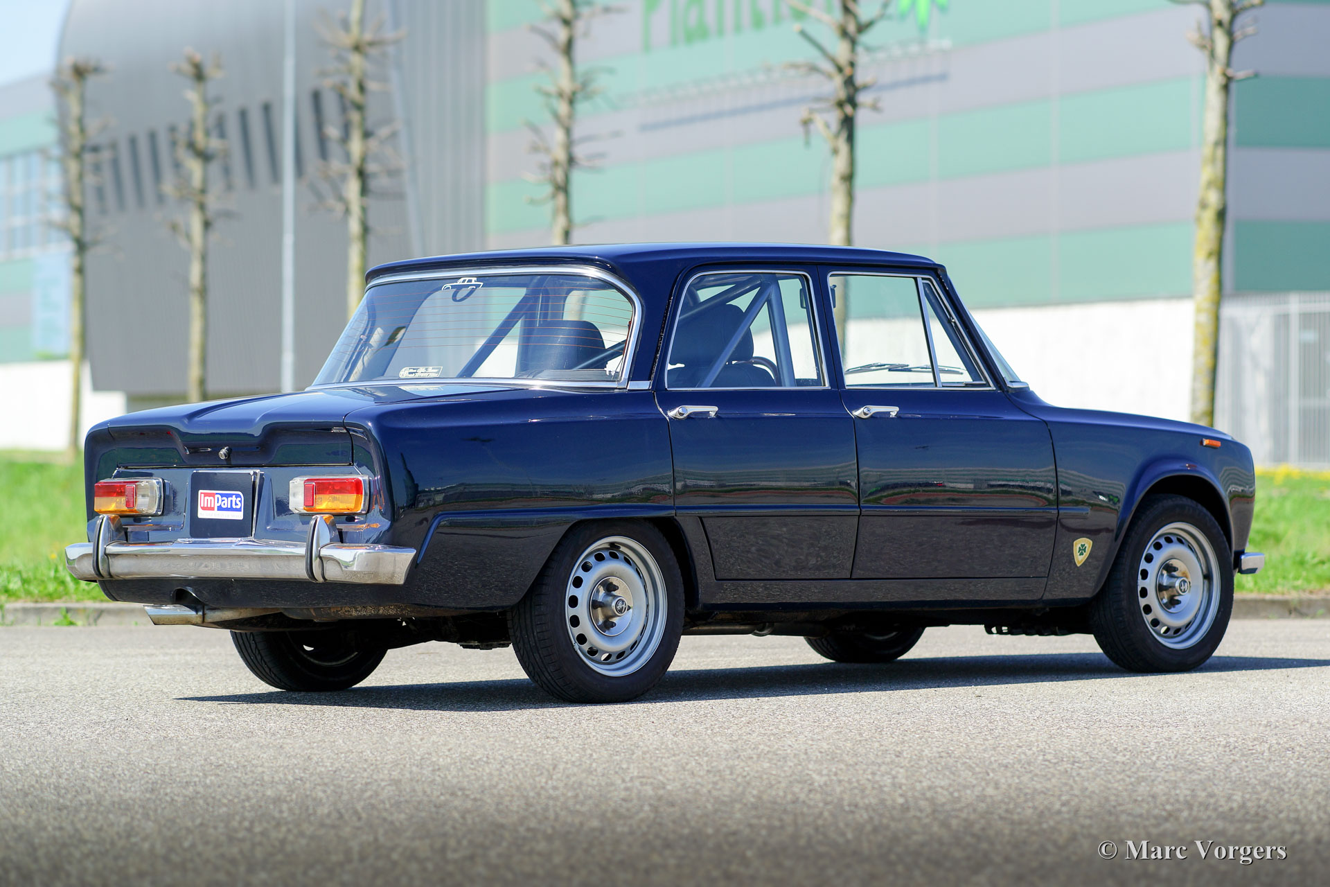 Alfa Romeo Giulia Super, year 1971. Colour dark blue with a black leather interior. This fantastic Alfa Romeo Giulia Super is prepared for historic (touring) rally events. The car is in excellent condition and it drives perfectly. The rally preparations include: six-point roll-cage, special sports seats for the driver and the navigator, four-point safety harnesses, 15-inch steel wheels, up-rated springs and shock absorbers and oil-sump protection. Many important parts were renewed: brakes, exhaust, petrol-pump, water-pump, radiator and the petrol-tank. The 2000 cc four-cylinder twin-cam engine was overhauled, and it is now fitted with a programmable electronic ignition system. This is a beautifully prepared Alfa Romeo Giulia; the car is ready for any adventure!