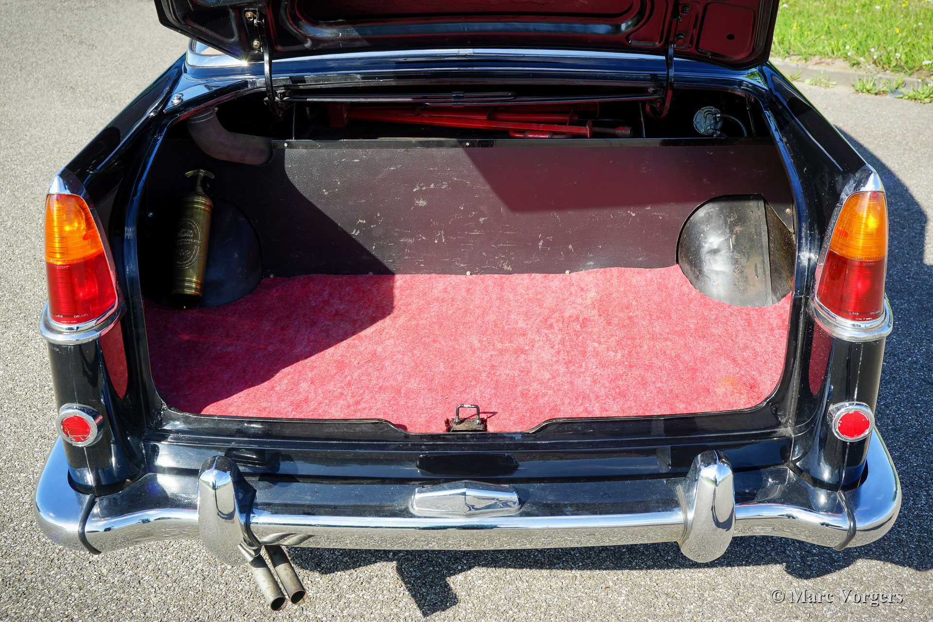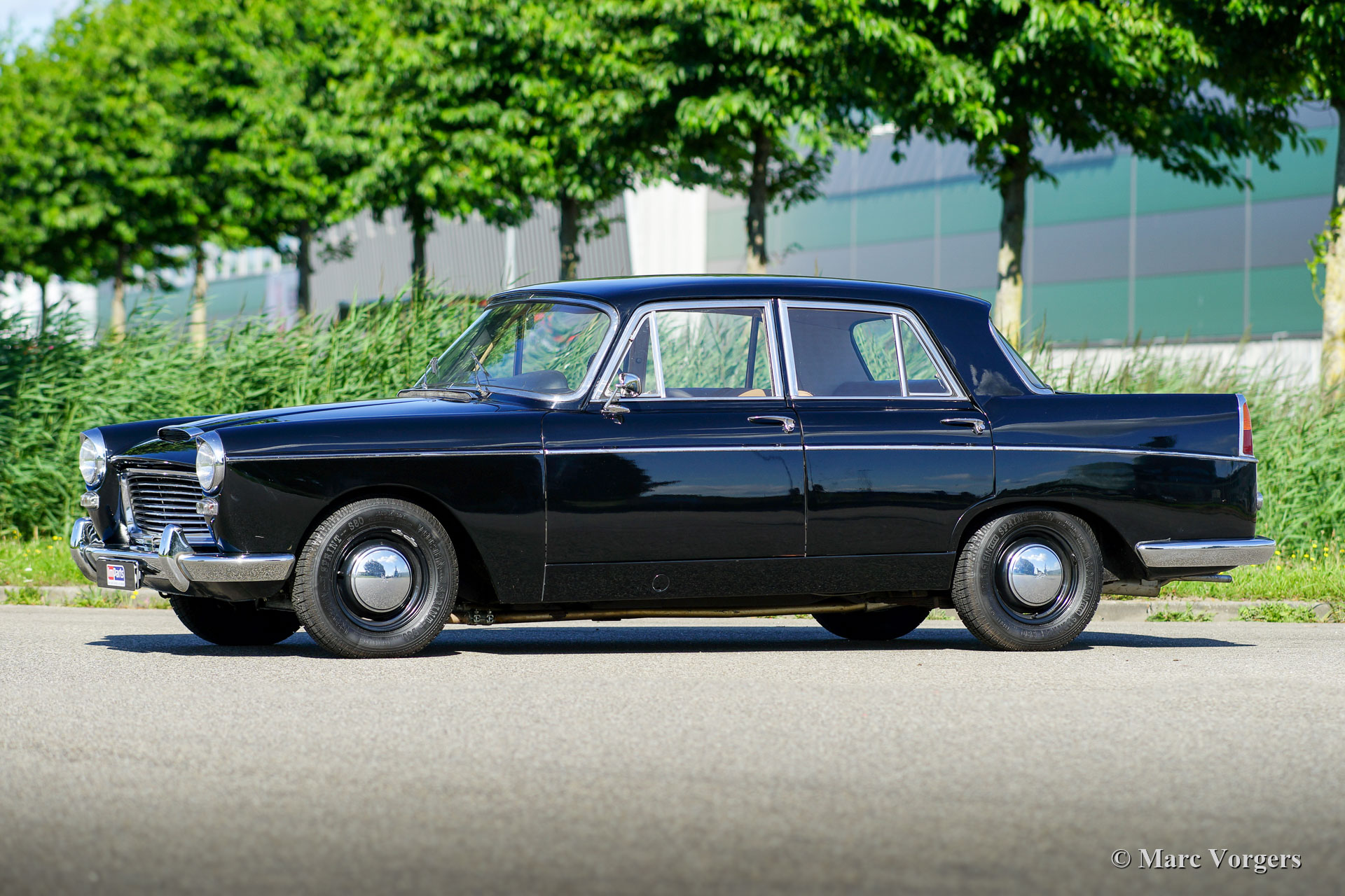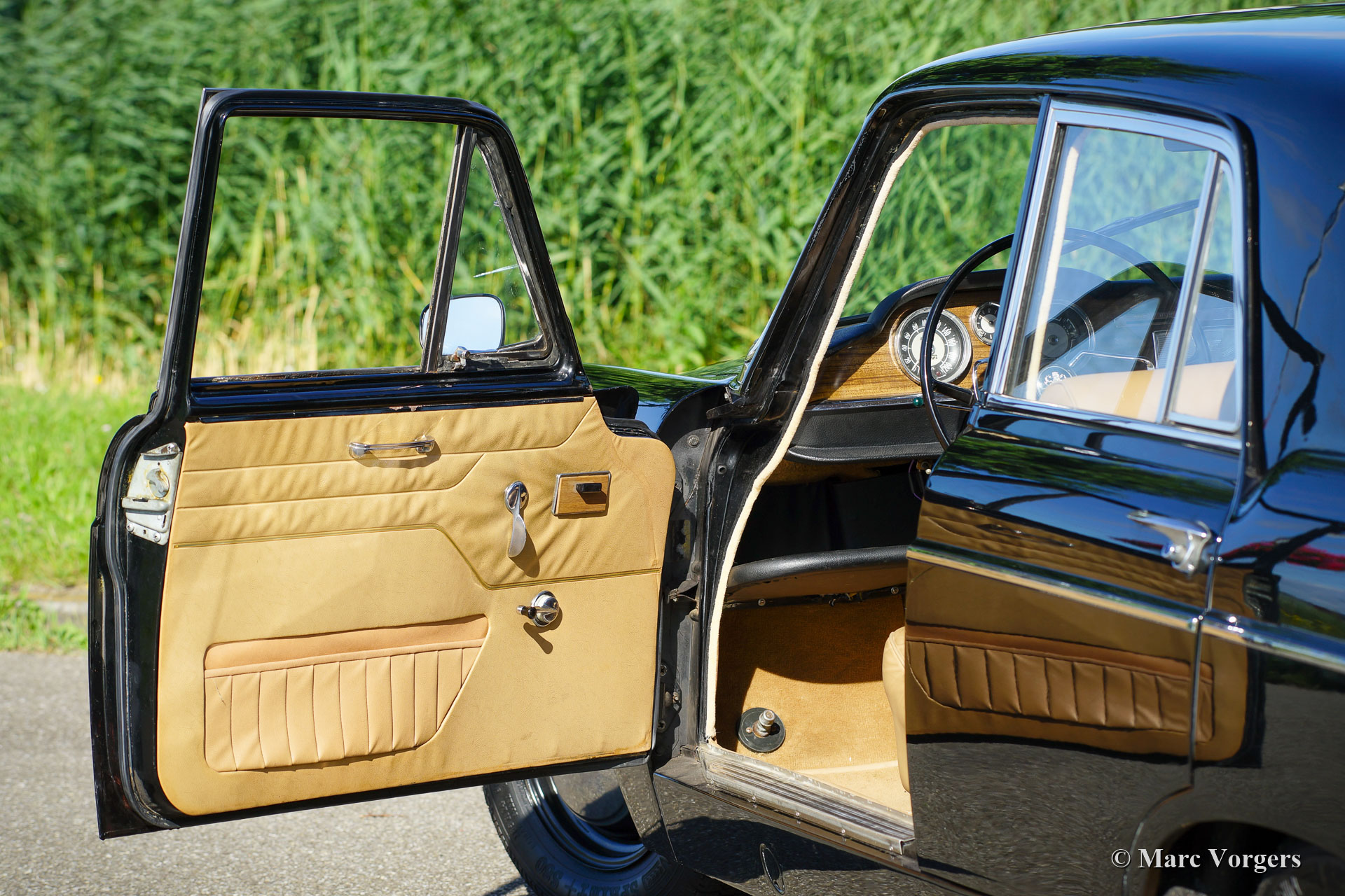 Austin A110 Westminster, year 1964. Colour black combined with a beige leather interior and beige carpet. This wonderful Austin A110 was sold new in the Netherlands. The full history of the car is known and documented. The Austin A110 Westminster was designed by Pininfarina together with the sister models Princess Vanden Plas 3 Litre and the Wolseley 6/110. The cars shared the same basic design with make specific personalized front, rear and interior designs. This fine Austin A110 Westminster was restored in the past and the car shows all the original details. The automobile is in good to very good condition. The interior was given new leather upholstery and new carpet in the past. This saloon car is powered by the renowned Austin 3 Litre six cylinder in-line engine fitted with two carburettors. The power (128 bhp) is transmitted to the rear wheels via a 3-speed automatic gearbox. The Austin A110 Westminster measures 4,8 metres. This large British saloon was a period competitor for the Jaguar Mk II 3.4 Litre and the Rover P5 3 Litre.