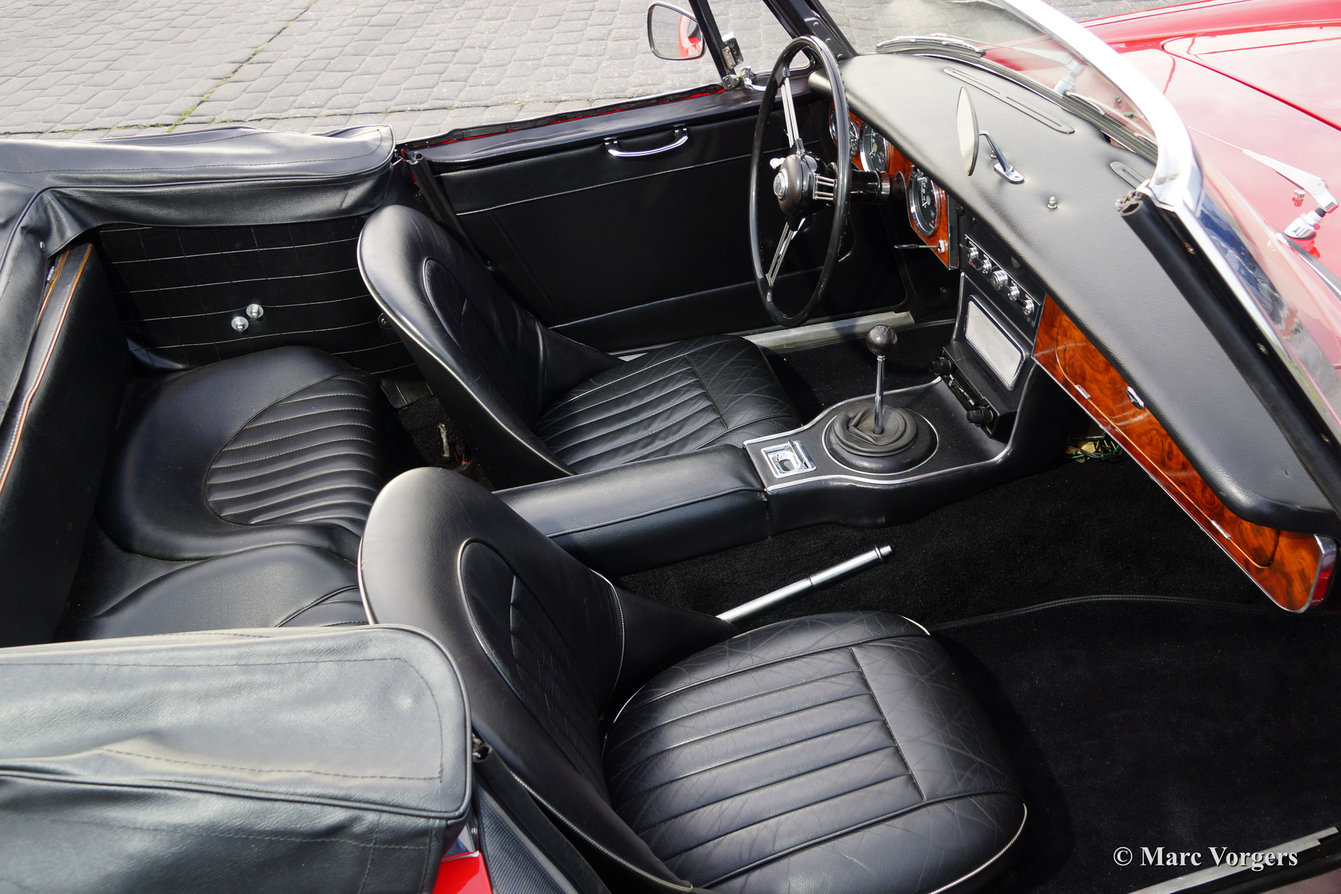 In October 1963 the Austin Healey 3000 MK III was introduced. The MK III was just like the MK IIa only available as 2+2 convertible model. The engine was fitted with a new camshaft and other valve coilsprings. Additionally two larger 2 inch S.U. HD-8 carburettors were fitted. Other changes were applicable to the interior, the dashboard was redesigned entirely and a center console was added. The back rest of the rear seats could be folded forward to be used as a floor to pack luggage on. Another change was the deletion of the "start button", the 3000 MK III fired up only using the starter key.