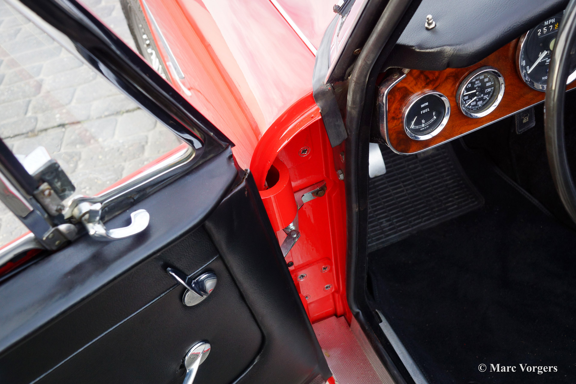 The former Healey models were more Spartan and featured fully detachable soft tops with separate side screens which could be stowed away in the booth.