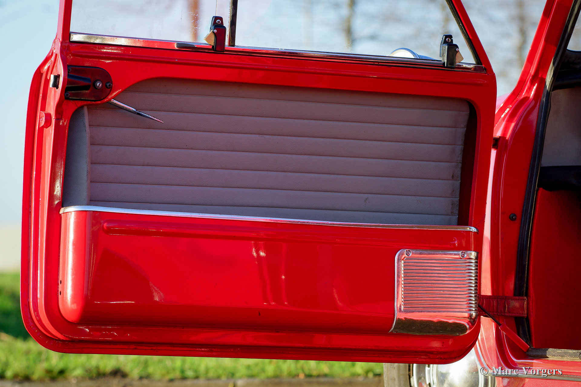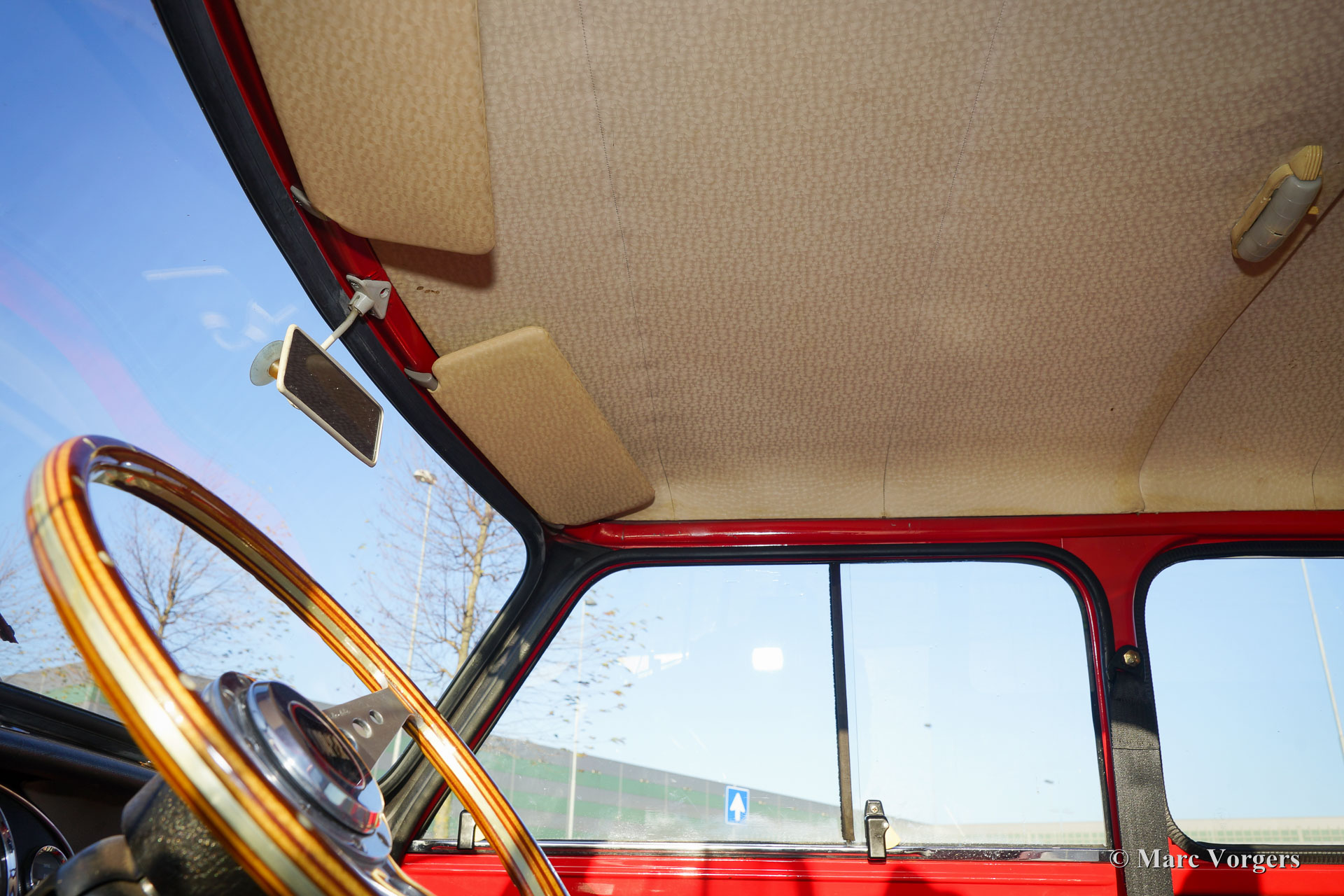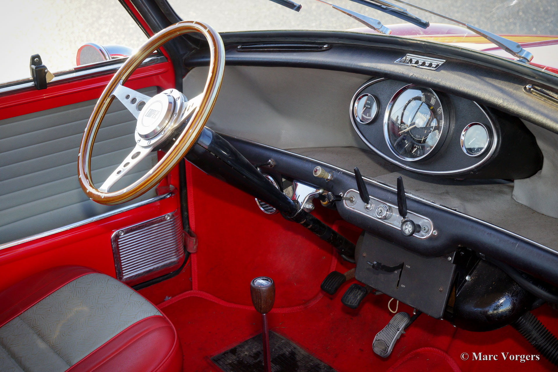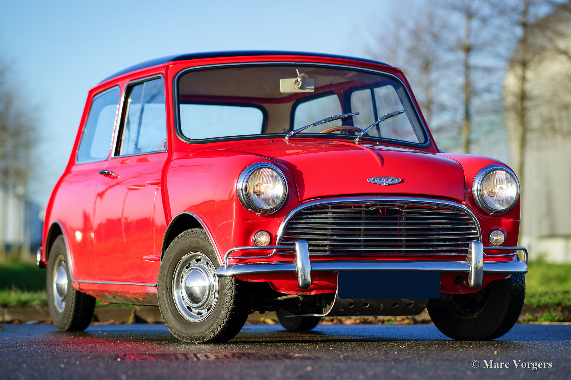 Austin Mini Cooper Mk I, year 1966. Colour ‘Flame Red’ with a ‘two-tone’ red/grey interior and red carpet. This is a very original Mini Cooper in very good condition! The car shows some signs of use and age and the car drives delightfully. The interior is original and in beautiful condition. All original details are present like the 10 inch wheels and disc brakes at the front wheels. Your opportunity to buy a hard to find original Mini Cooper!
