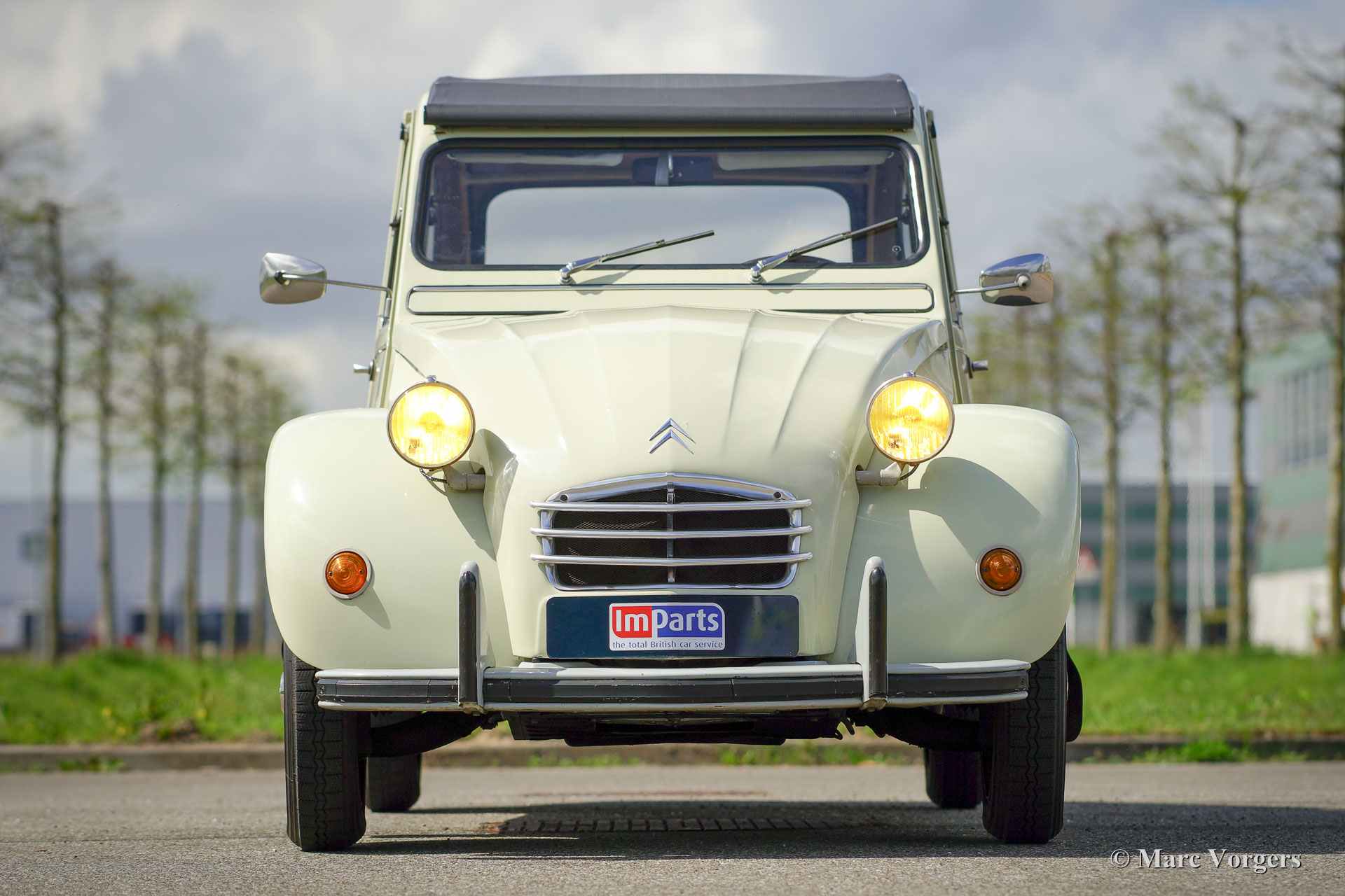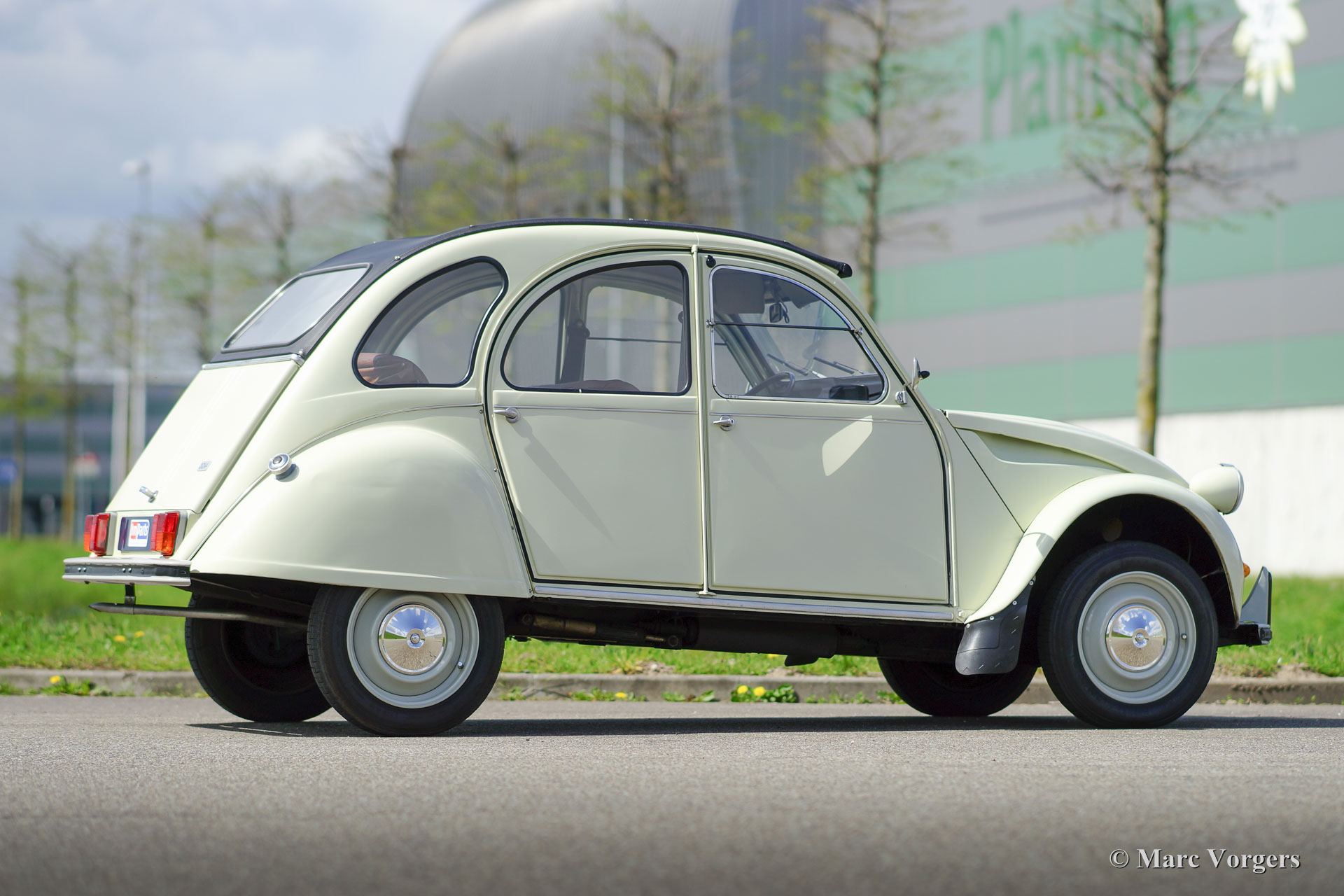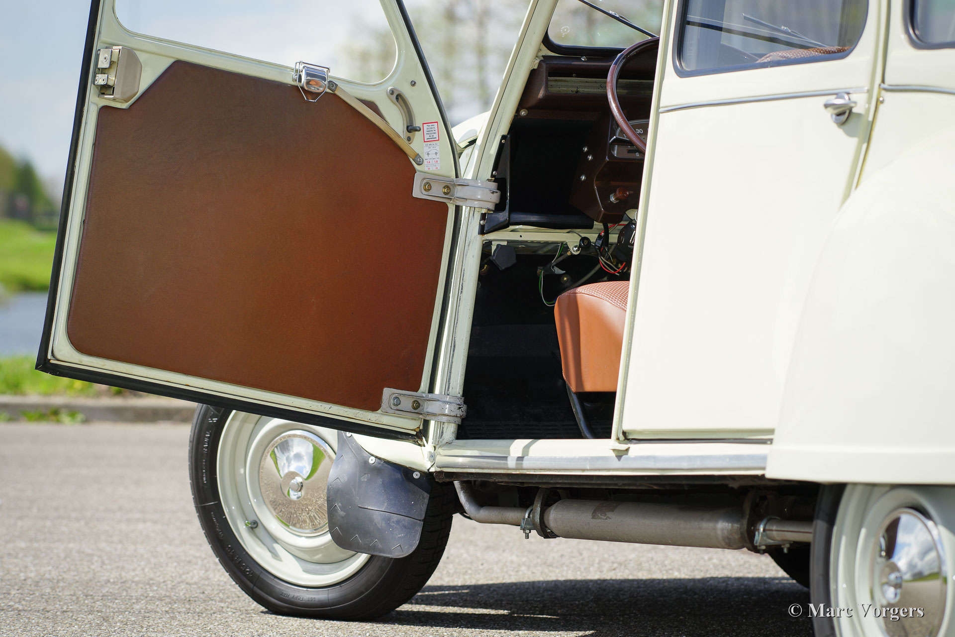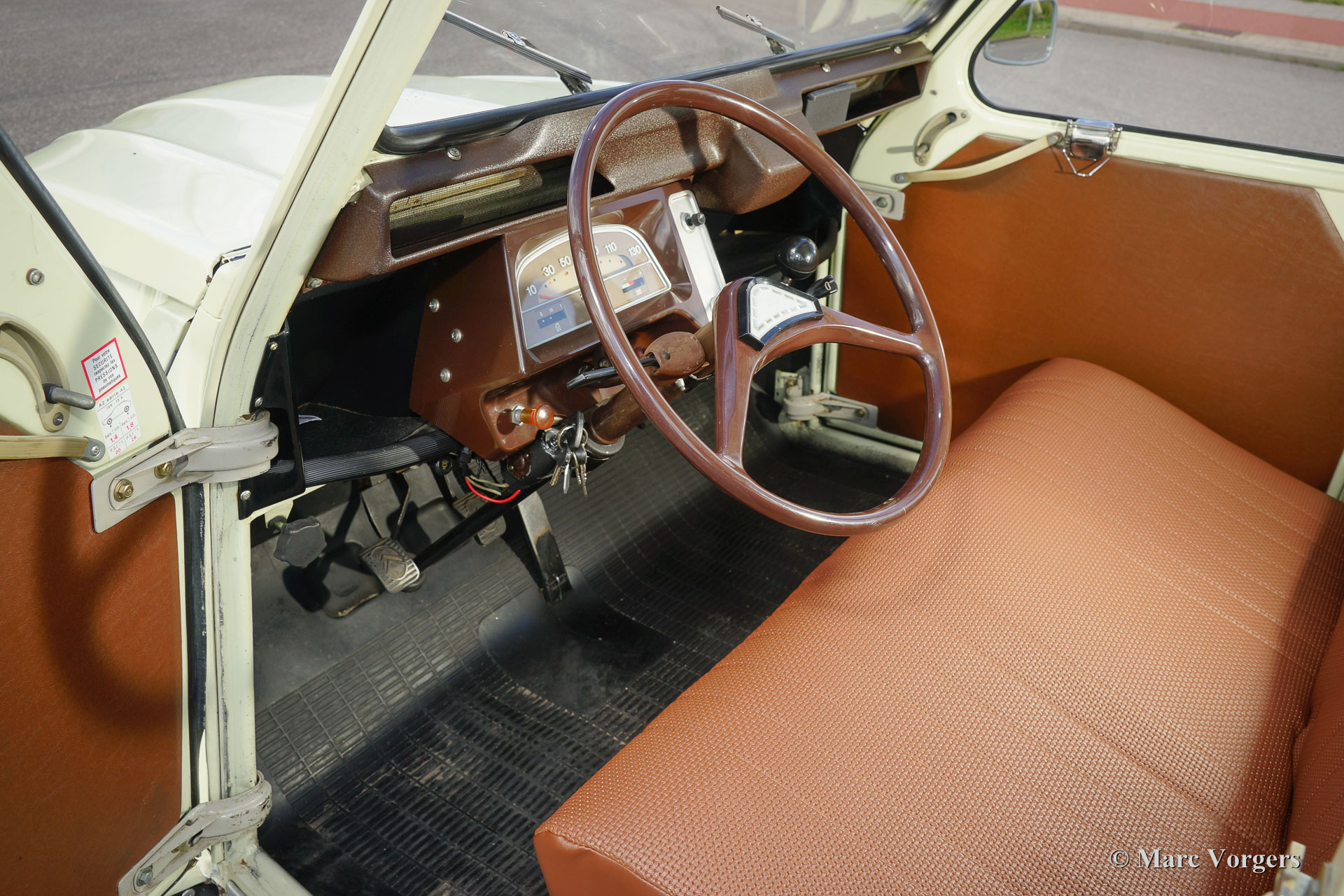 Citroën 2CV4, year 1974. Colour ‘off-white’ with a touch of pale green. Brown vinyl interior with black rubber carpet. This delightful 2CV4 was extensively and beautifully restored; the car is in excellent to superb condition. This Citroën shows all original details and the car features the correct Michelin tyres. Driving a 2CV4 is always a special experience!