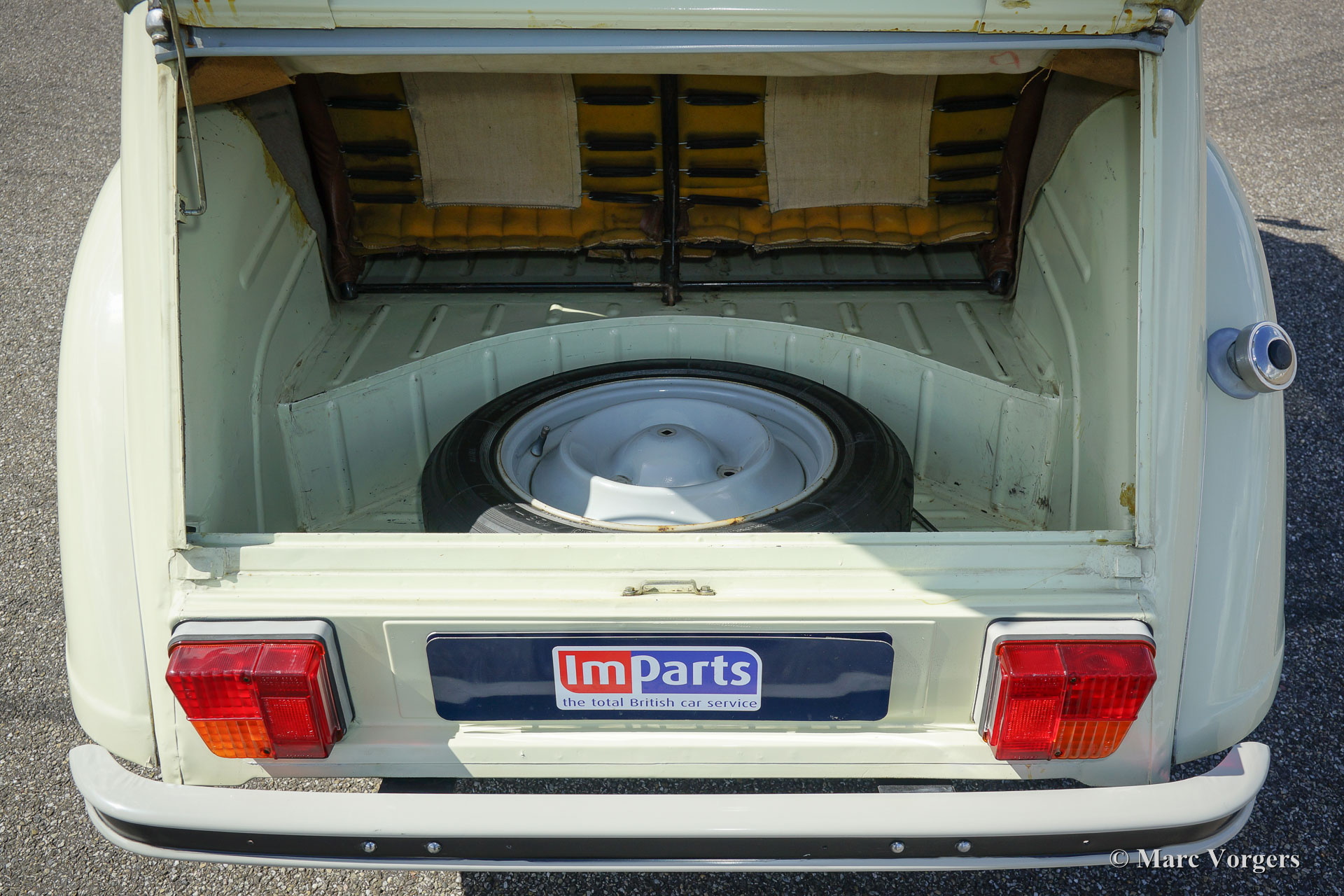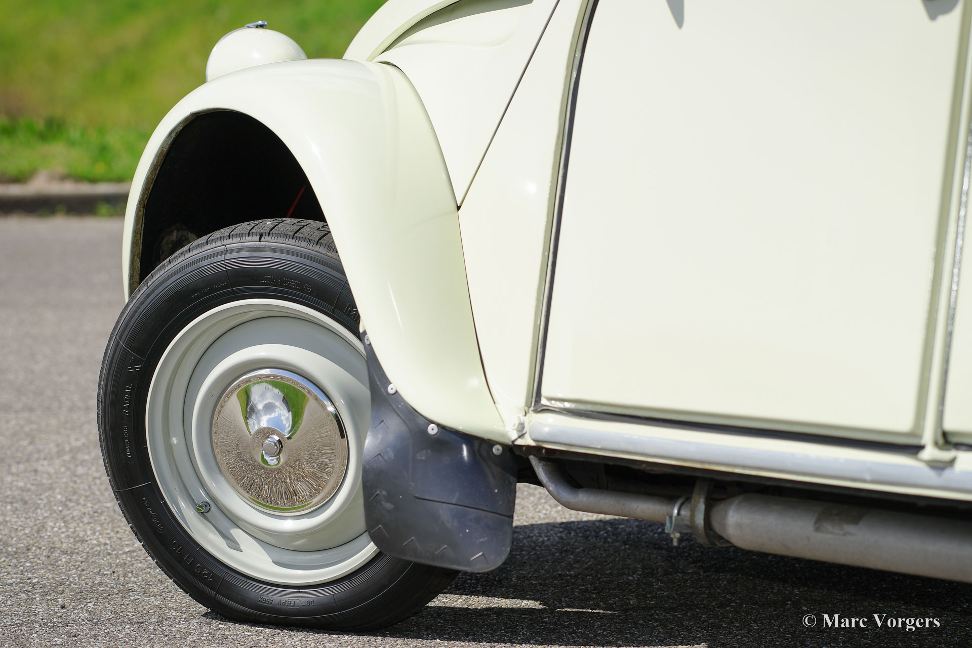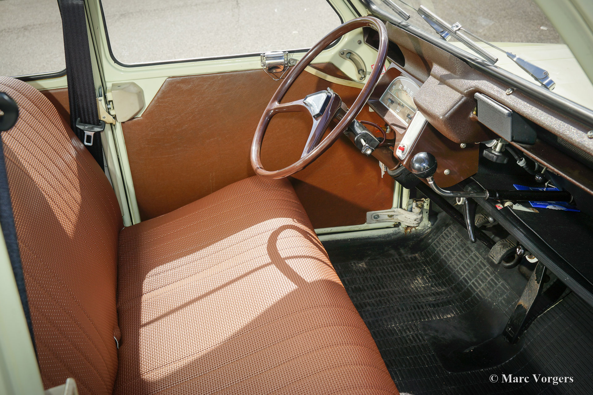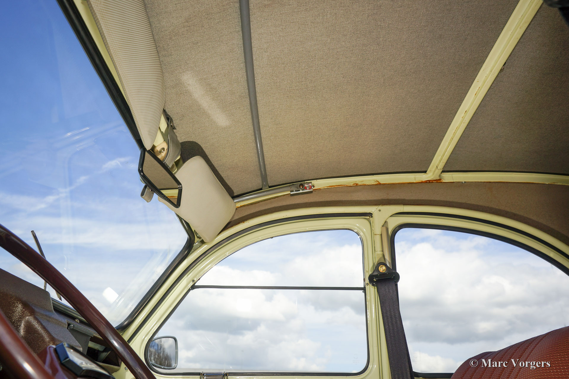 Citroën 2CV4, year 1974. Colour ‘off-white’ with a touch of pale green. Brown vinyl interior with black rubber carpet. This delightful 2CV4 was extensively and beautifully restored; the car is in excellent to superb condition. This Citroën shows all original details and the car features the correct Michelin tyres. Driving a 2CV4 is always a special experience!