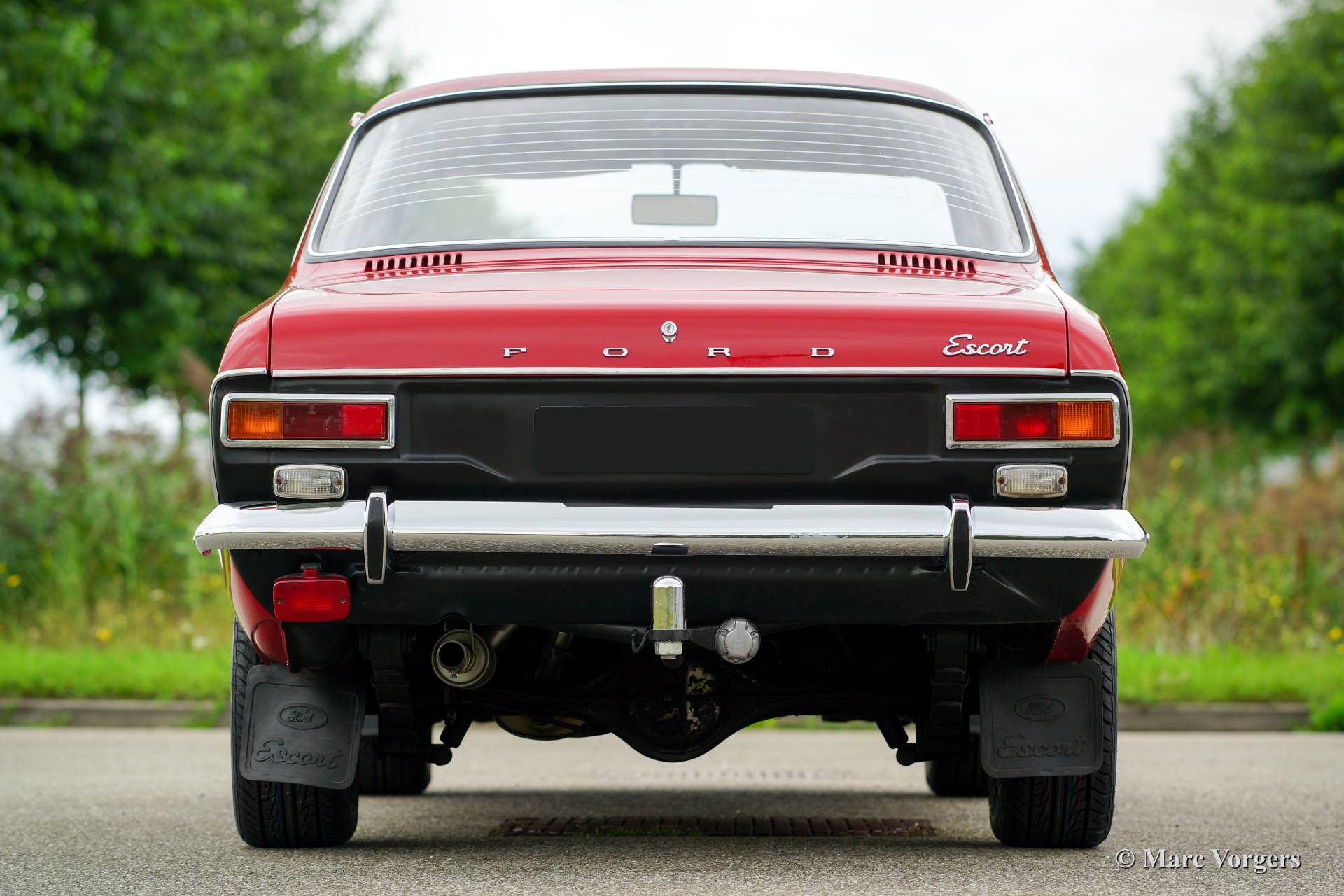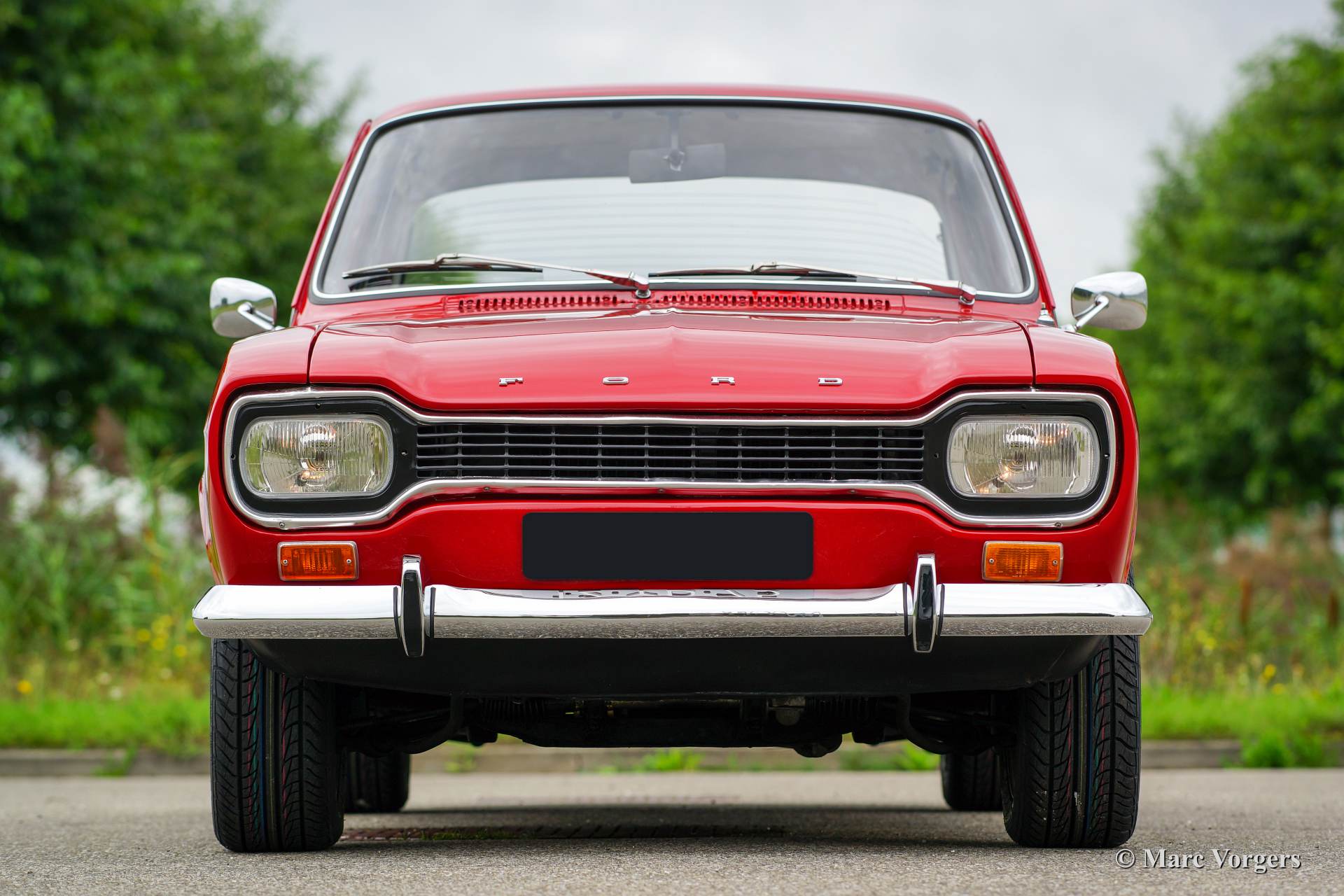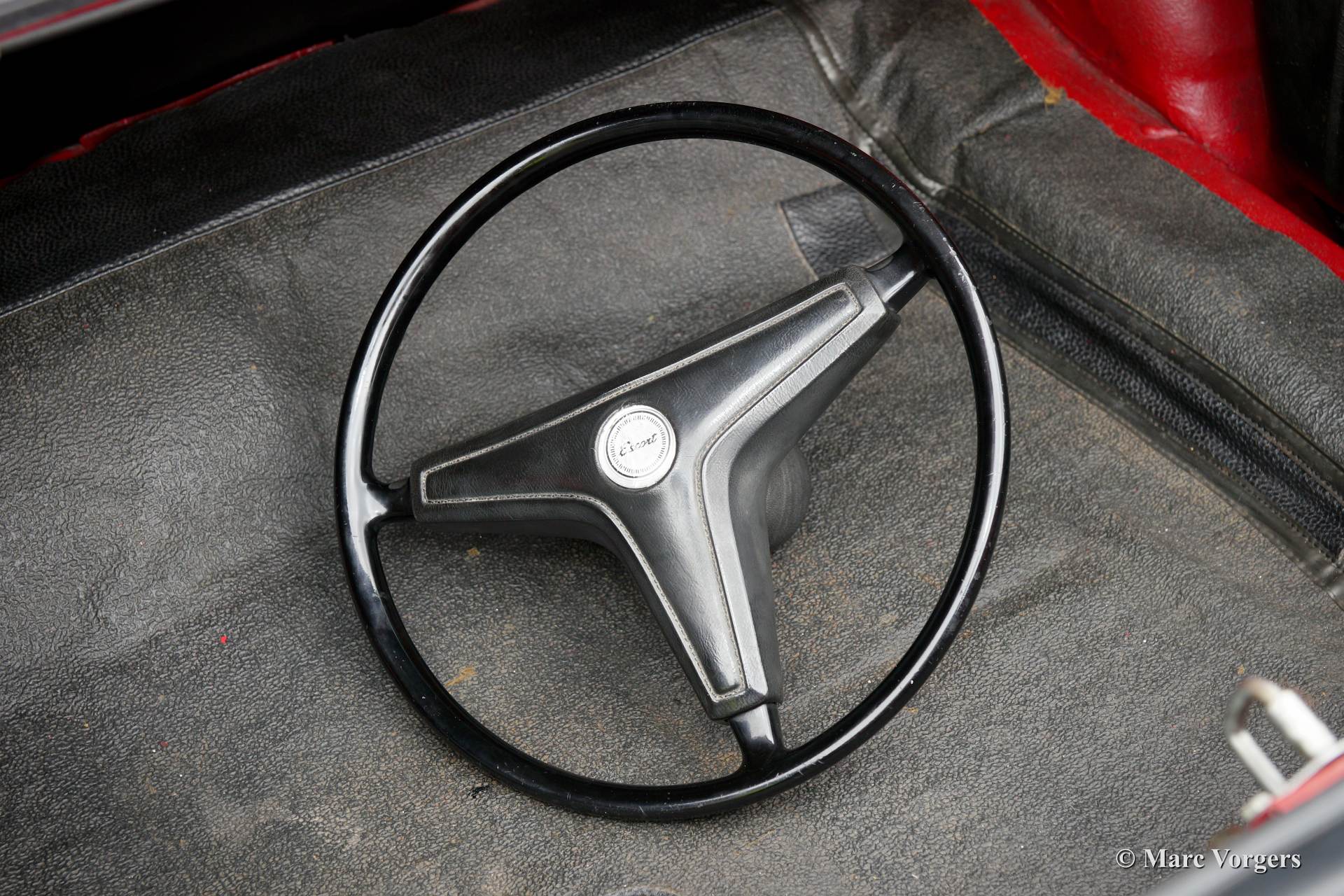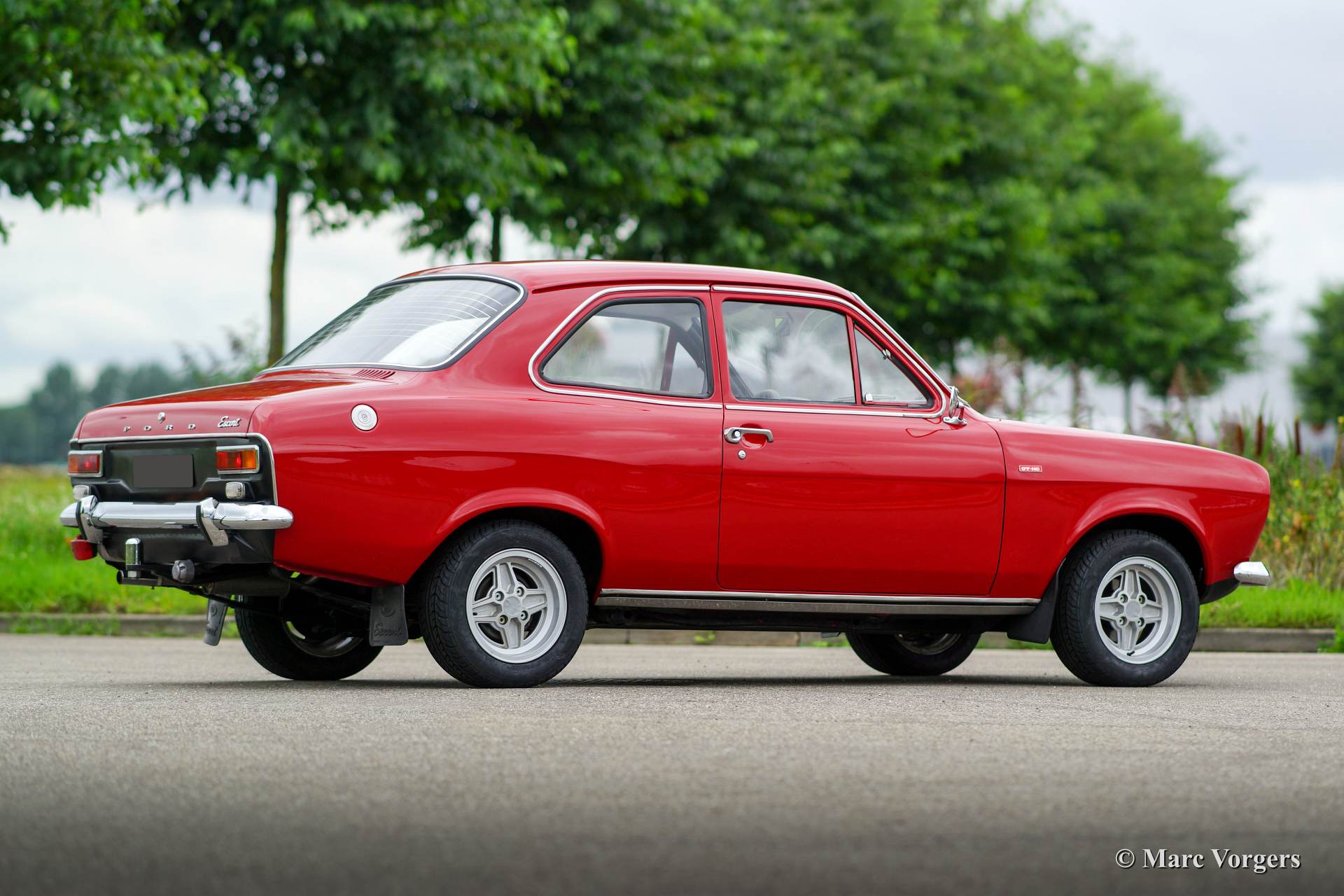 Ford Escort 1300 GT Mk I, year 1973. Colour red with a black leatherette interior and red carpet. This fantastic Ford Escort was extensively restored recently. The car is in excellent condition and the car drives, steers, brakes and handles perfectly. The car looks like new! This Escort GT was sold new in Portugal, very interesting because the beautiful red colour was only available in Portugal! This Escort 1300 GT features the original 75 bhp. HC (high compression) engine. The Escort was available as 2 or 4 door model, this 2-door version certainly looks most sporty! The car features Ford light alloy wheels and a beautiful leather rimmed MotoLita sports steering wheel. The original steering wheel and the original wheels (restored) with hub caps are also present! This is a delightful classic car with simple and robust mechanics. The car is very suitable for historic (touring) rallyes and regularity events.